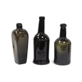 An XVIII Century Sealed Green Glass Wine Bottle, of cylindrical form with long neck, the seal inscribed 'ASGR', 27cm high; Two Other Unsealed Bottles, 23 and 24cm high. (3)