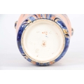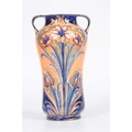 AN EARLY 20th CENTURY TWO HANDLED MOORCROFT MACINTYRE 'ALHAMBRA' VASE having stylised painted and gilt floral decoration, makers mark to base 23cm high