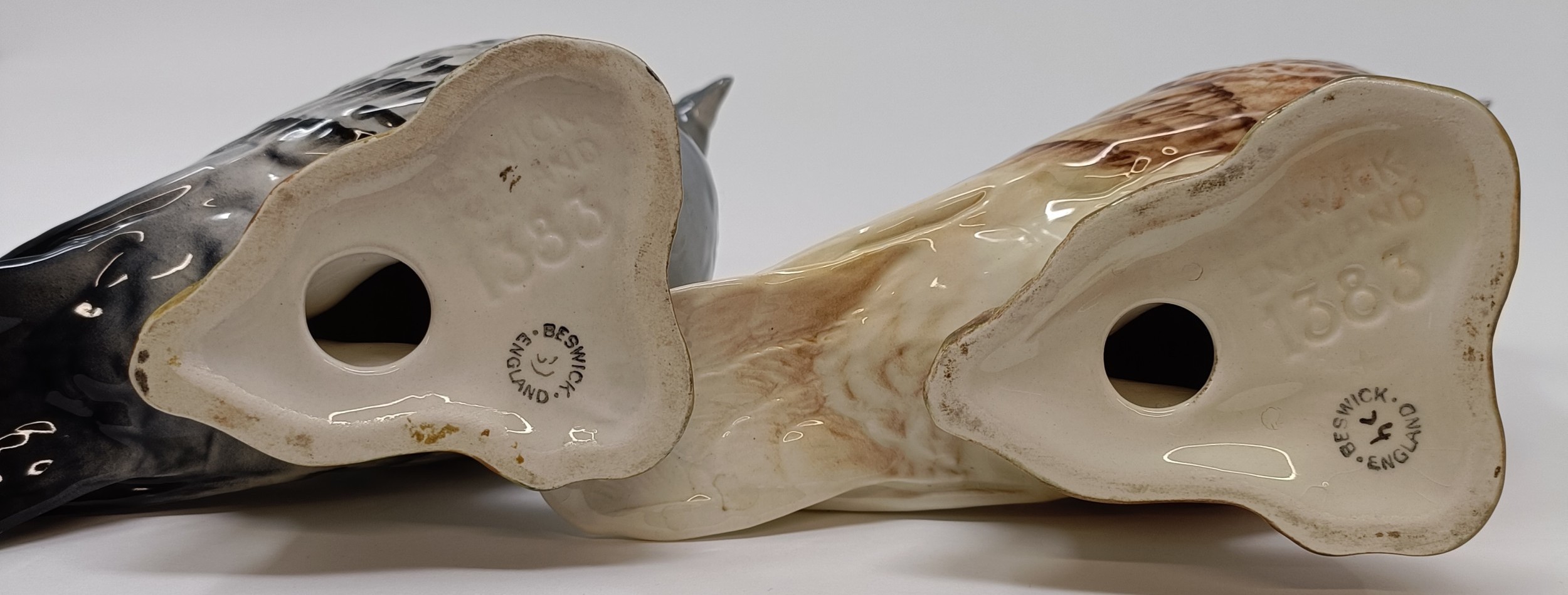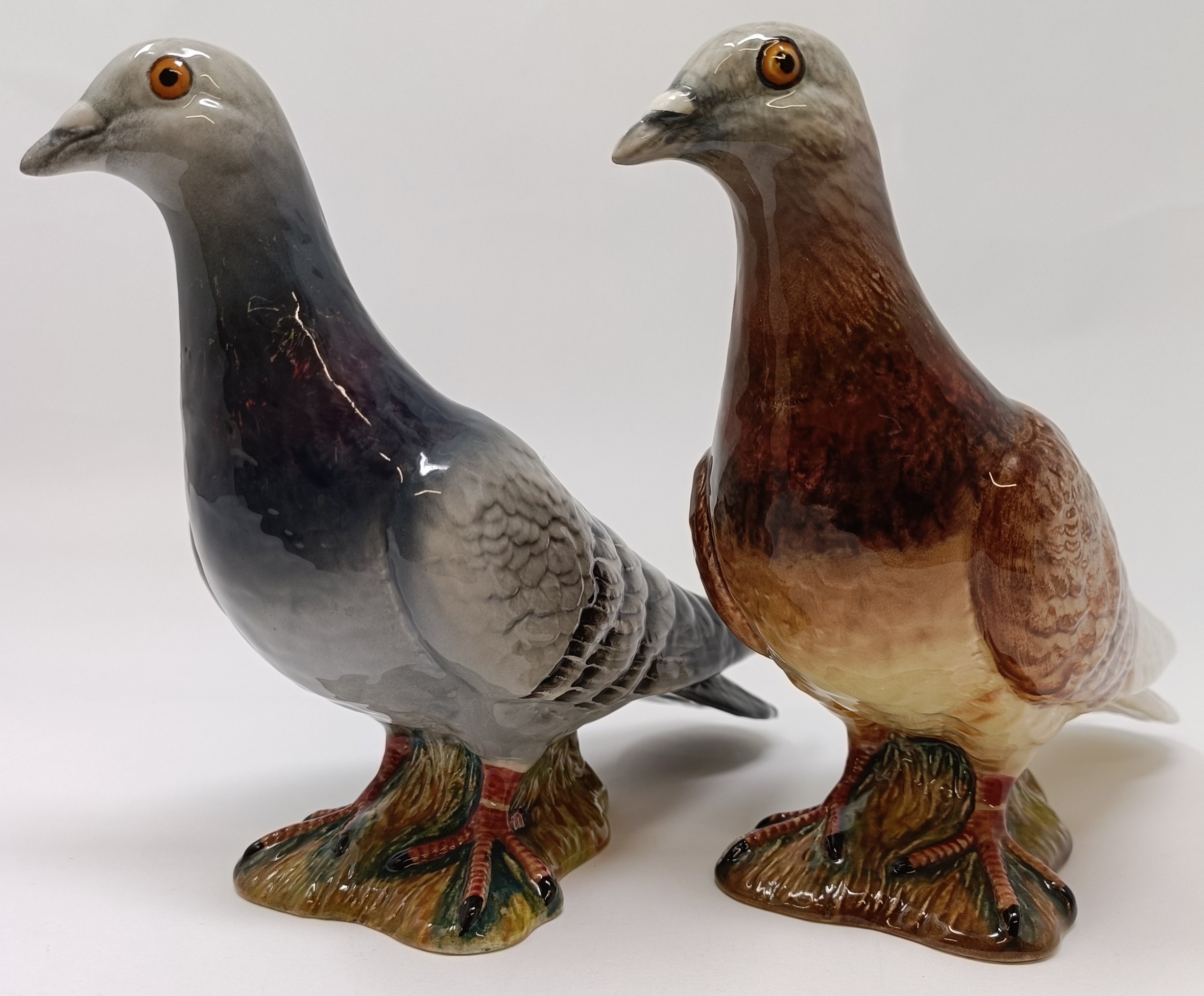 A Beswick Pigeon, 1st version, red, 1383, and another, blue, both gloss (2)