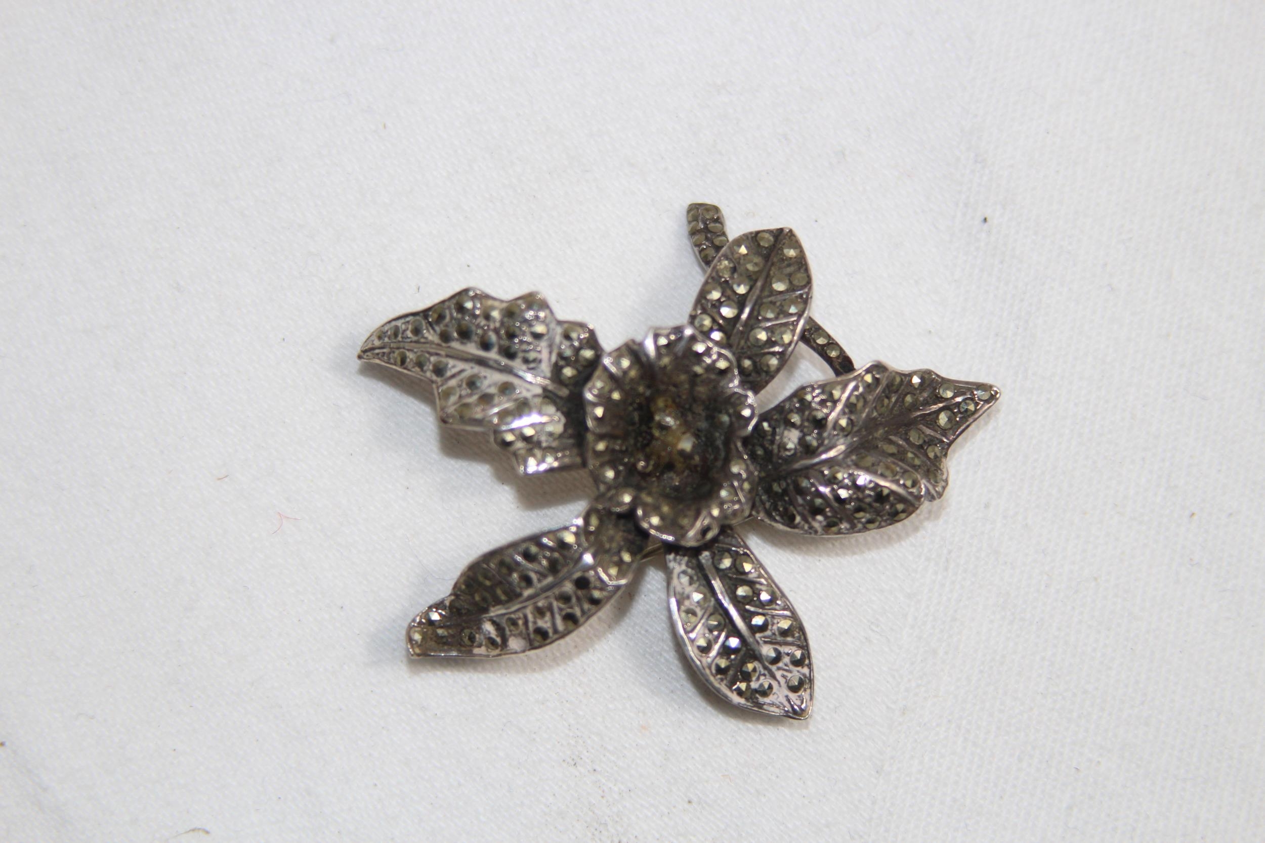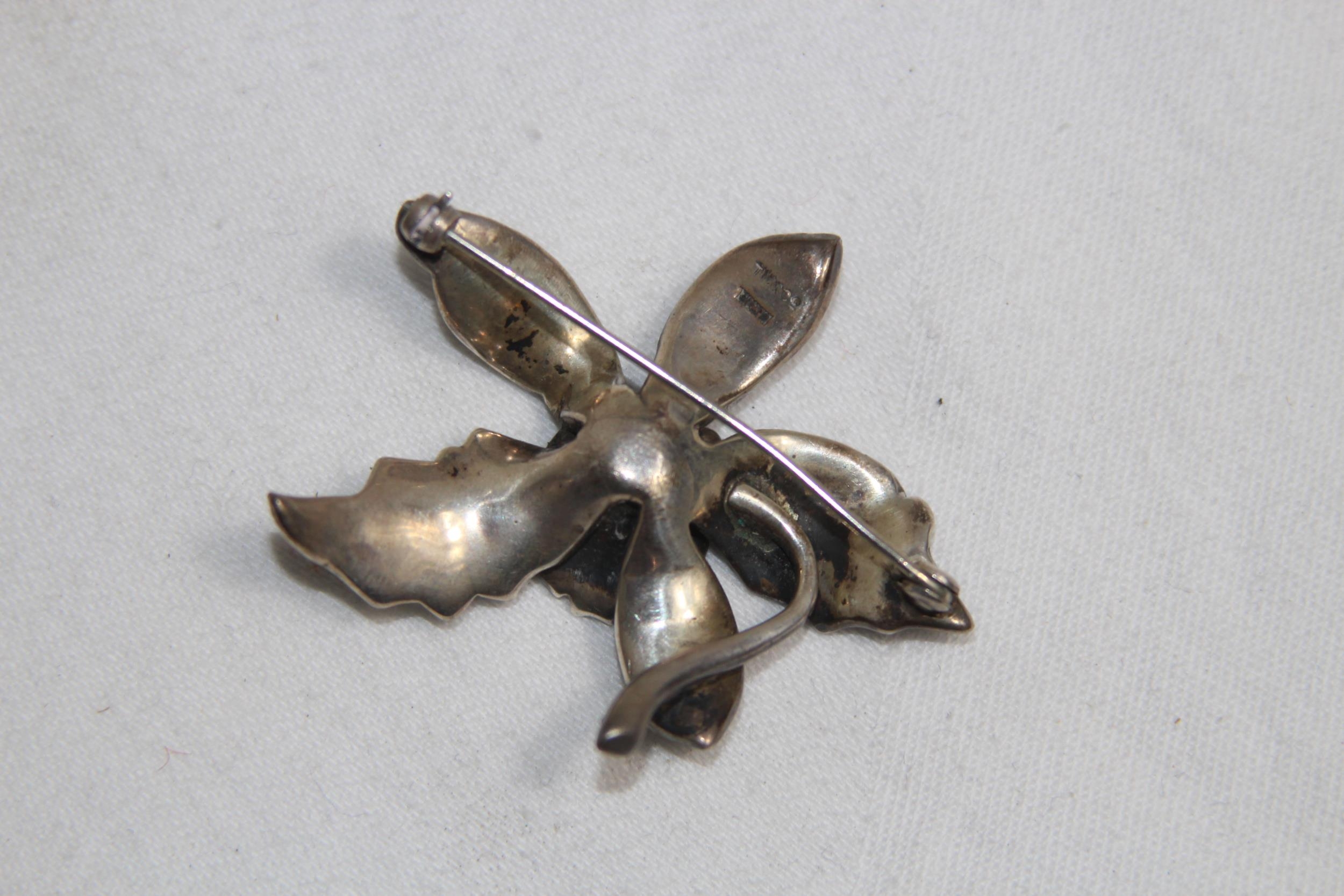 STERLING SILVER FLOWER BROOCH, 20.48 GRAMS