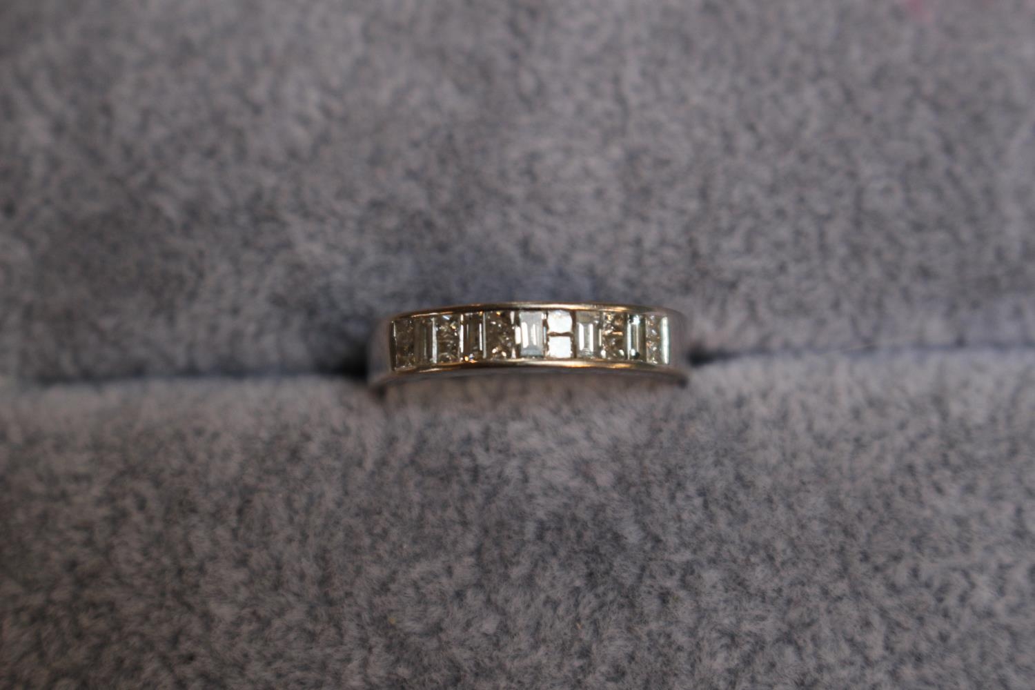 Ladies 18ct White Gold Baguette and Square Cut Diamond Set ring. 4g total weight