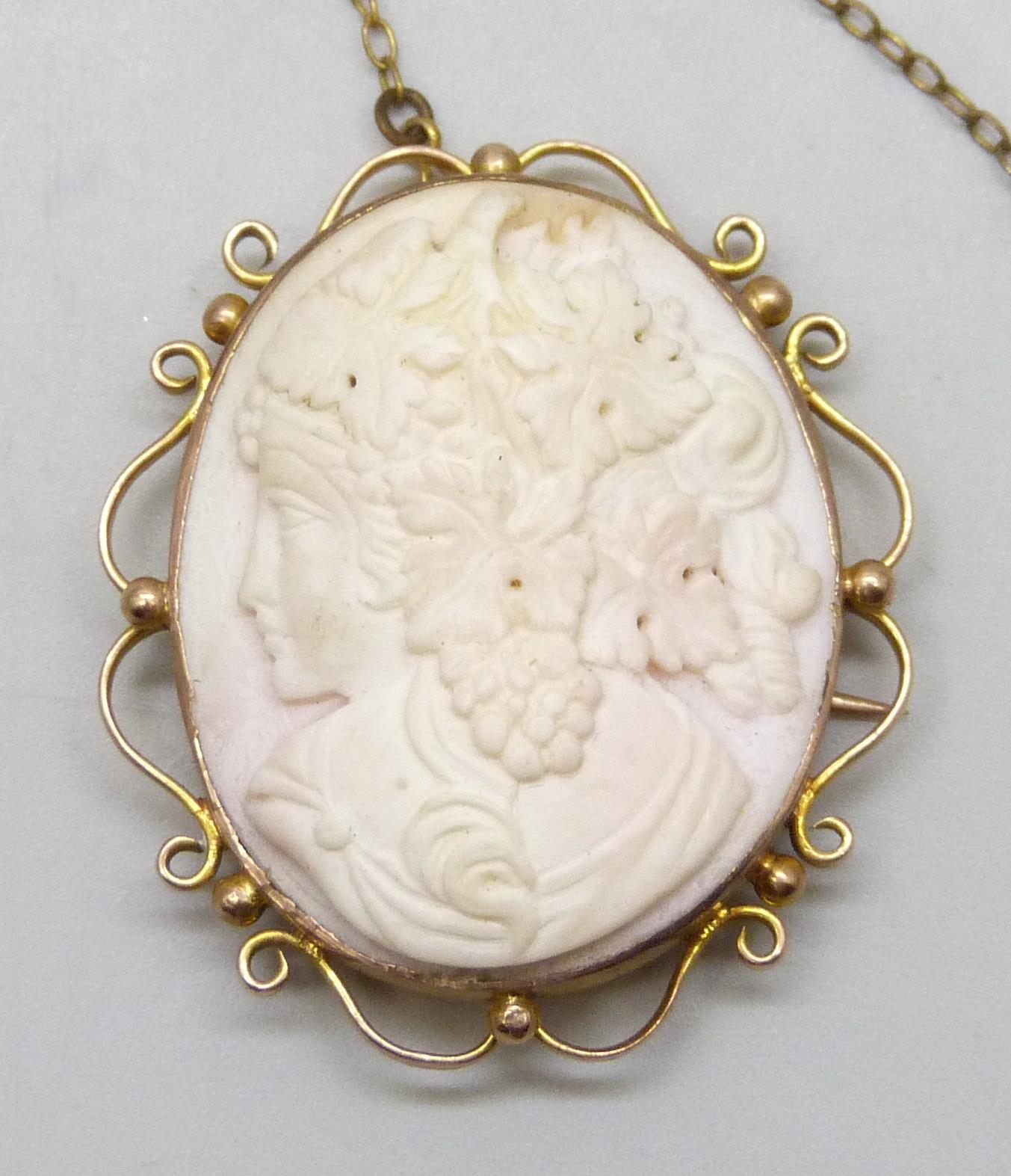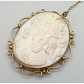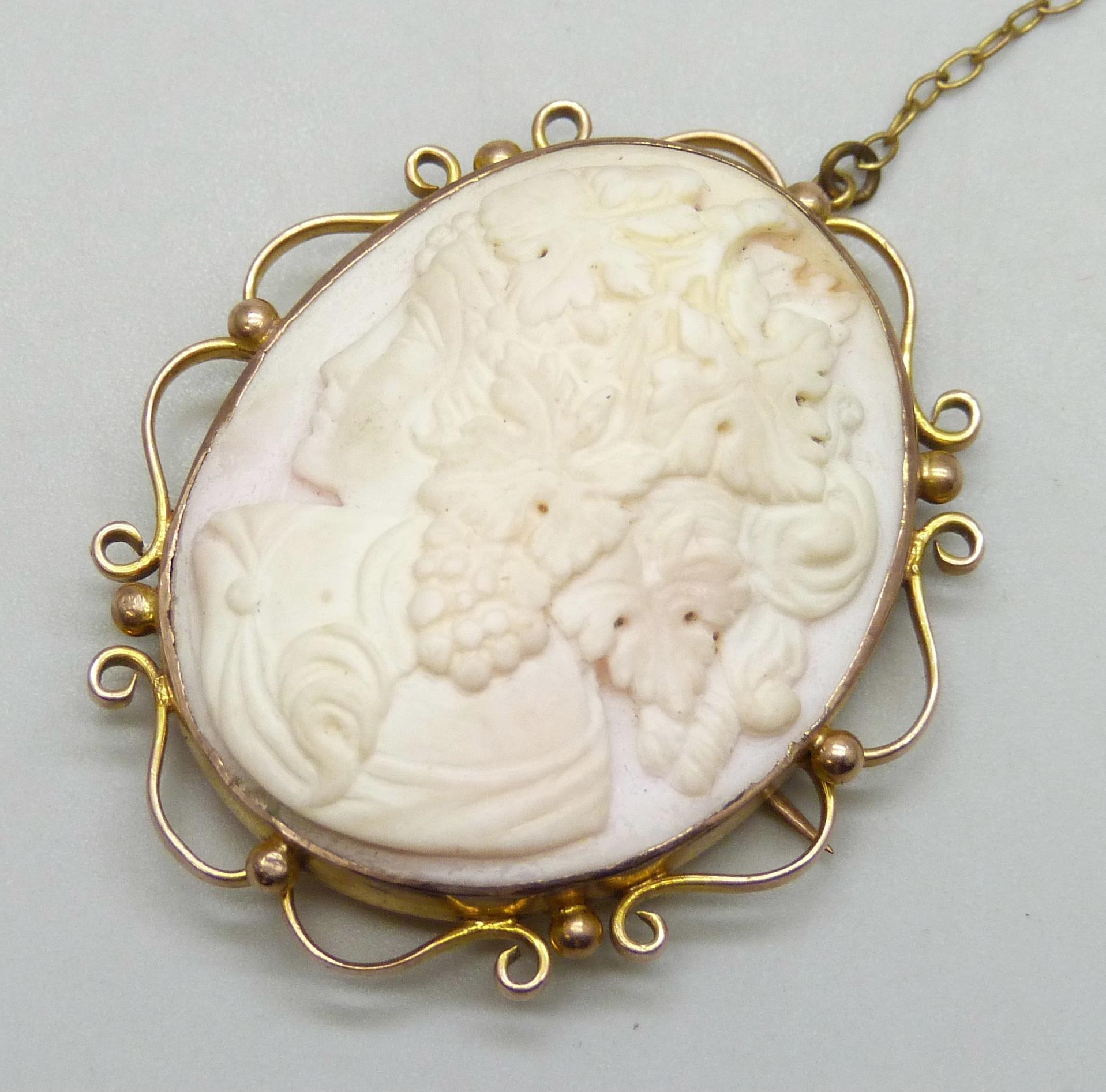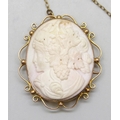 A 9ct gold framed Angel Skin cameo, clasp a/f, 13.3g, 3.9cm