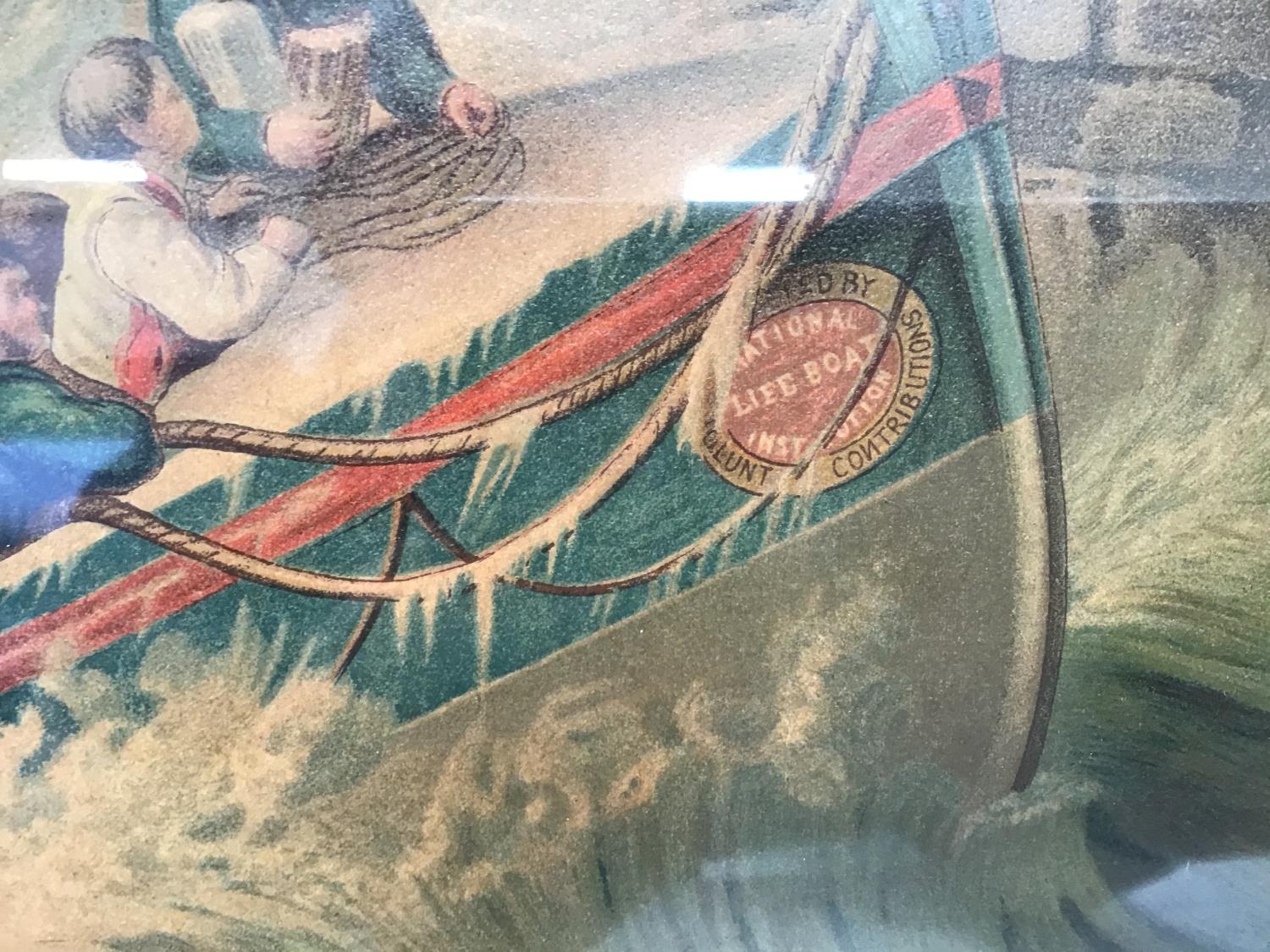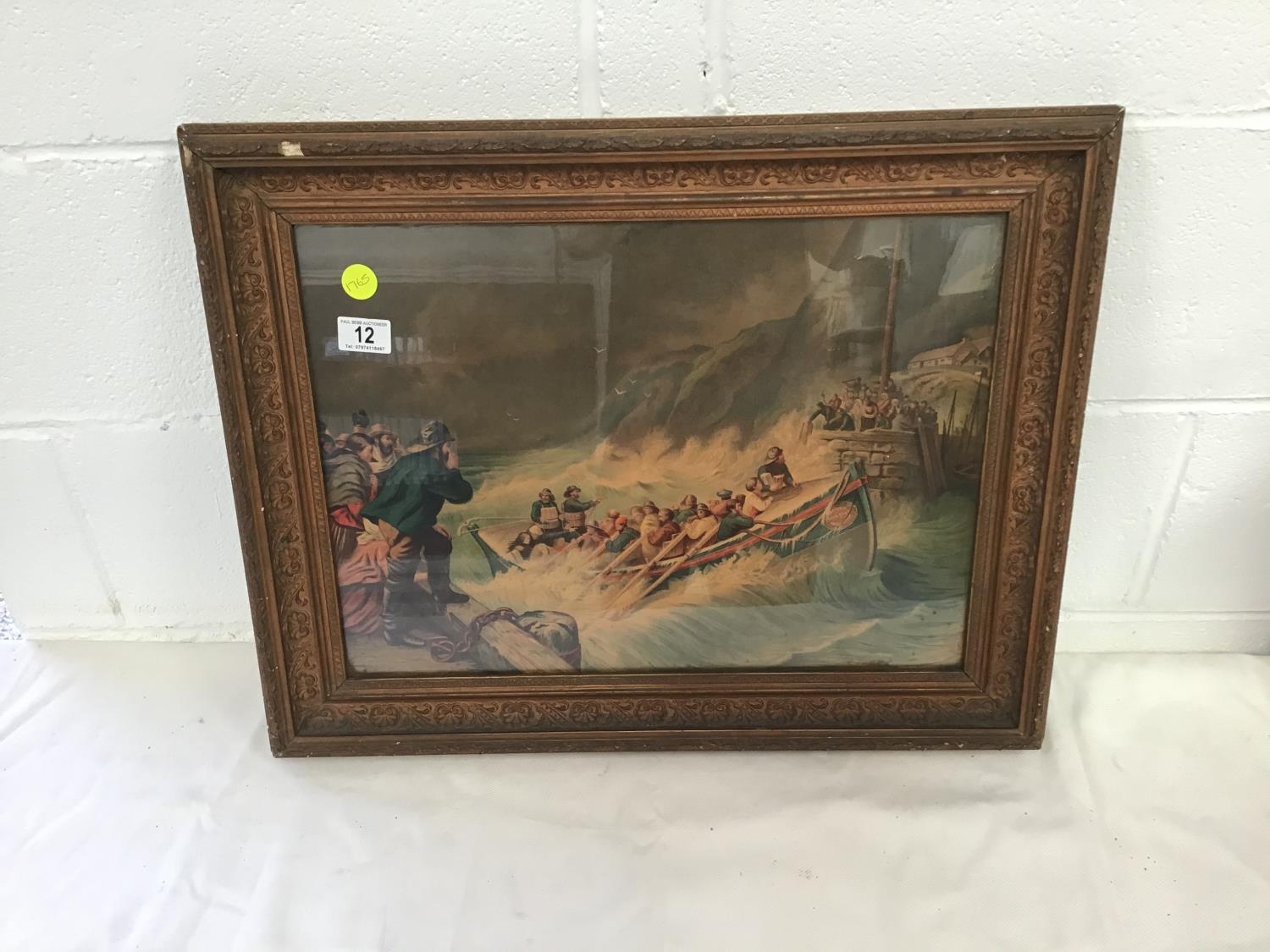 VICTORIAN GILT FRAMED PRINT - LIFEBOAT AT SEA - 25" X 20"