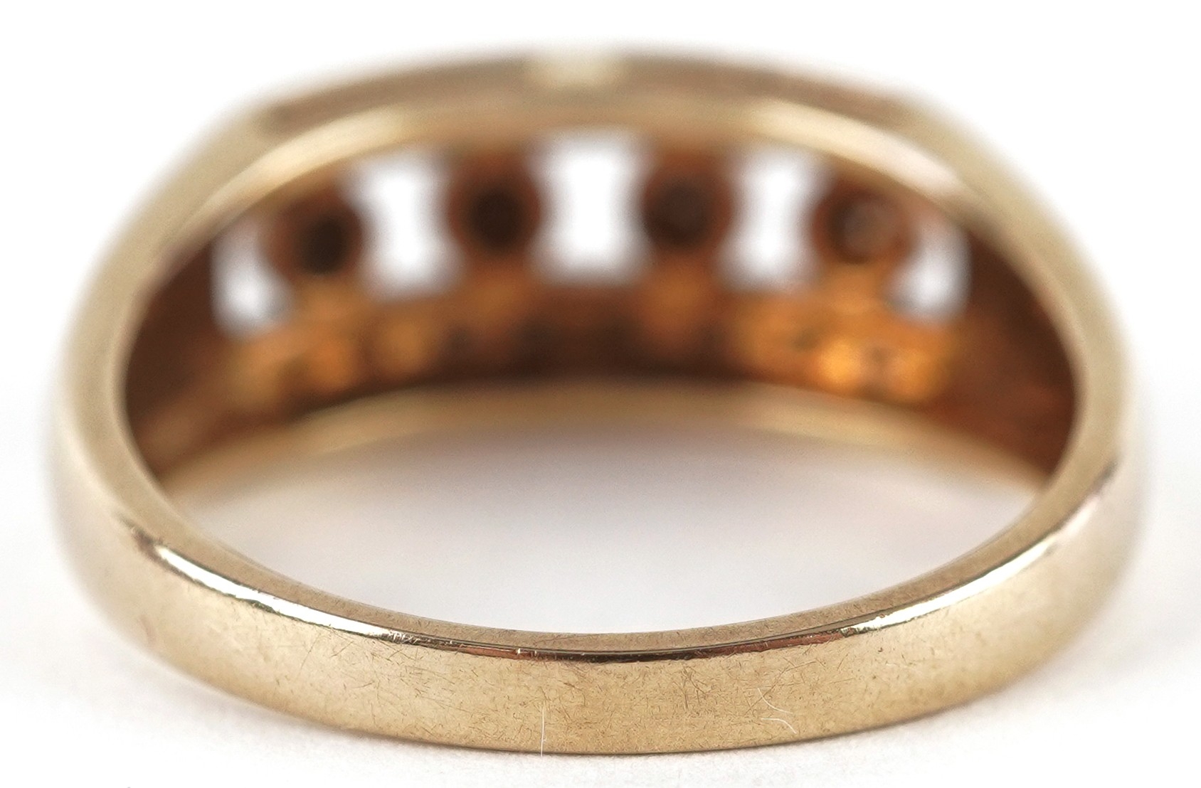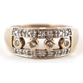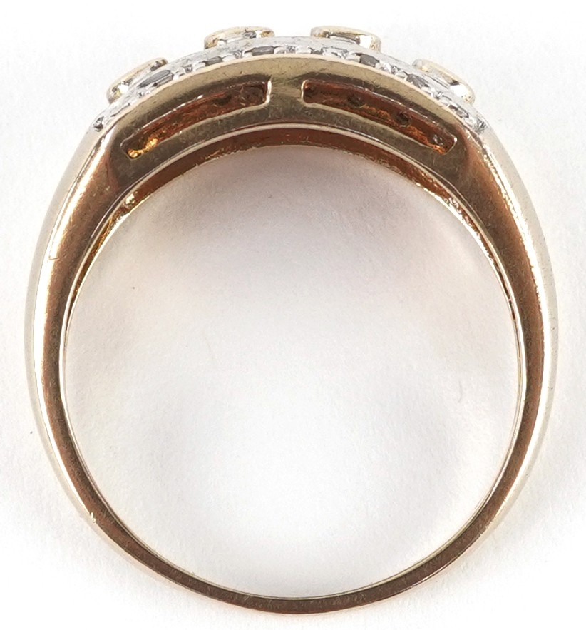 A 9ct gold diamond three row ring, size Q, 3.9g.