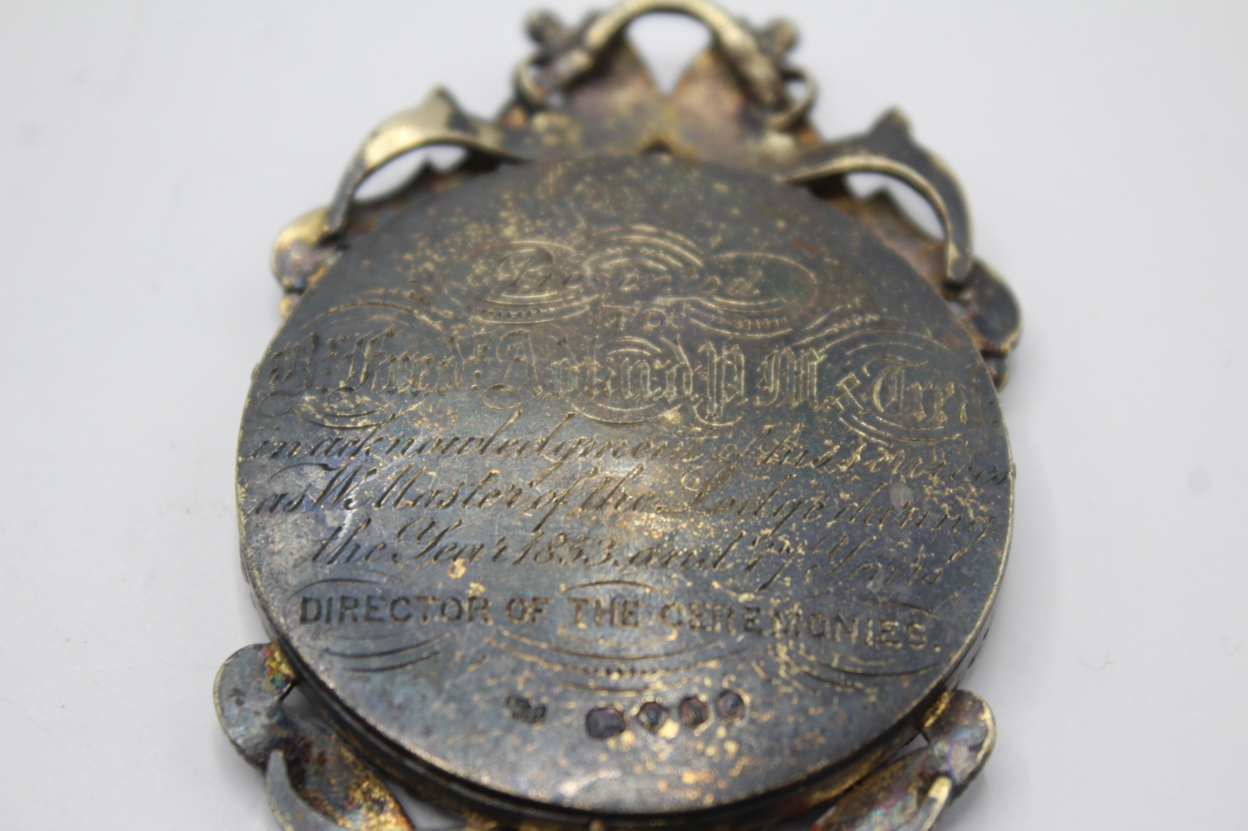 Antique Sterling Silver Masonic Past Master Jewel Awarded 1853