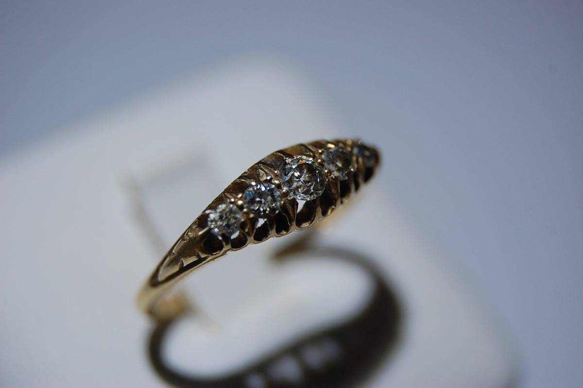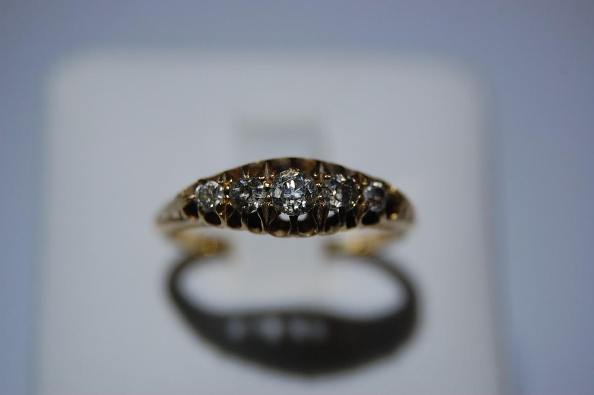 18ct. gold five stone diamond ring - size N