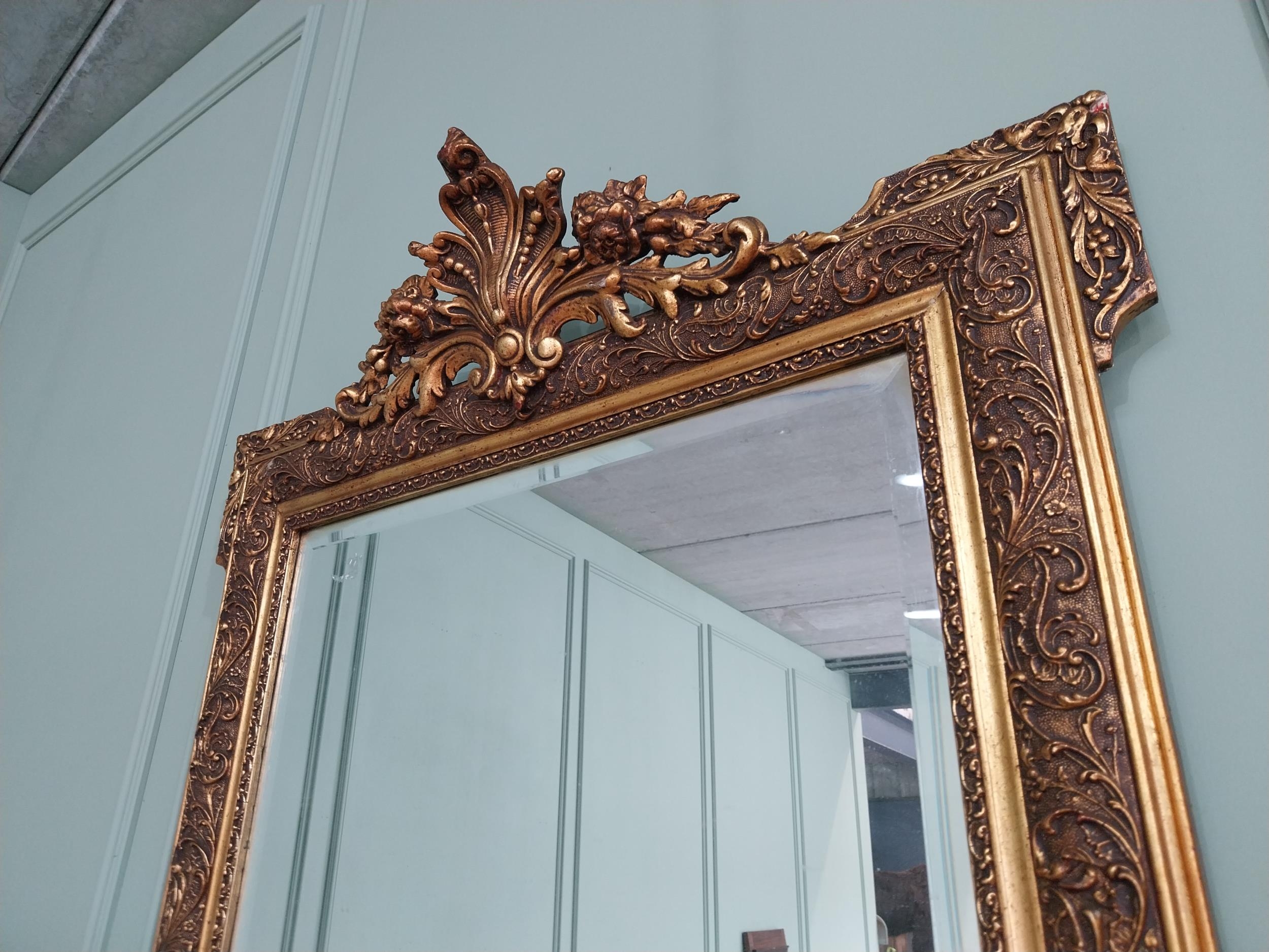 Edwardian French giltwood wall mirror {133 cm H x 85 cm W}.