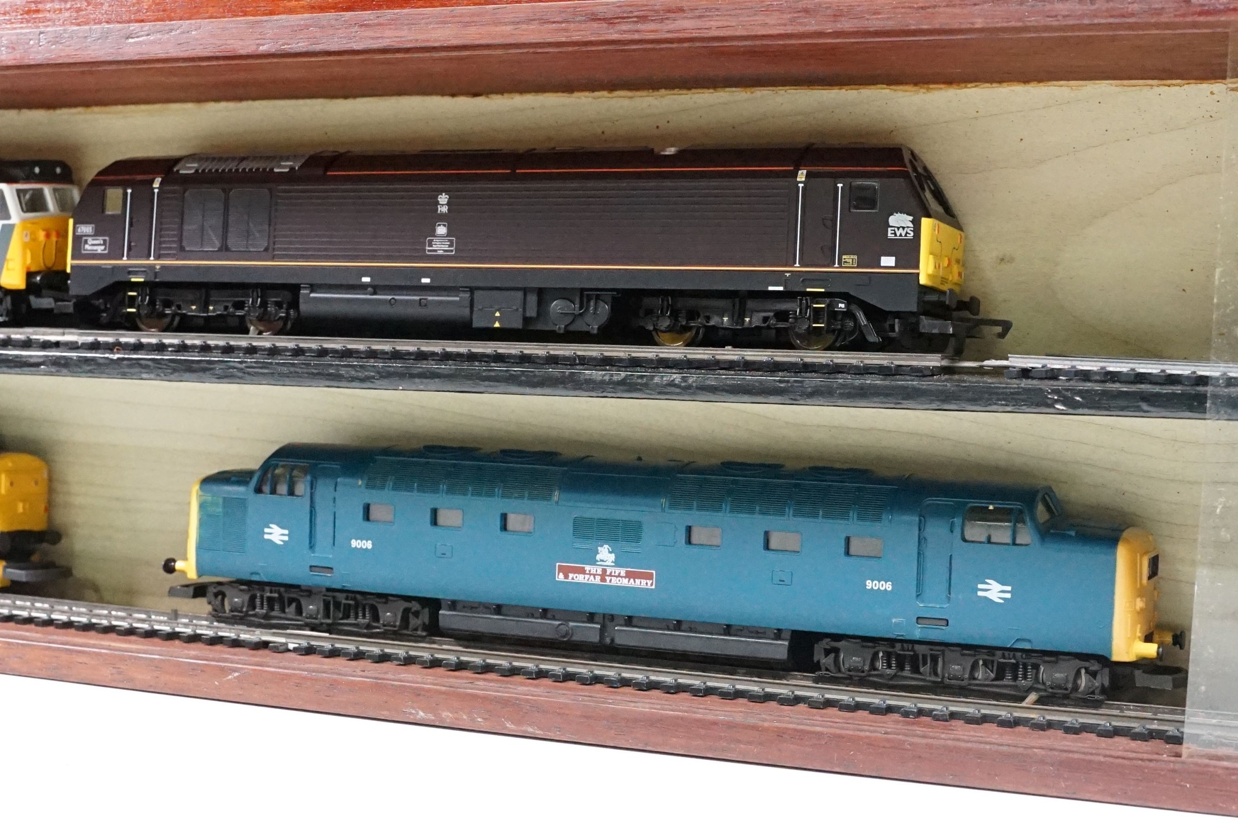 Six OO gauge locomotives to include Lima Prince Harry, Lima Exeter, Hornby Queen's Messenger, Lima Driver John Elliot, Lima Earl Mountbatton of Burma and Lima The Fife * Forfar Yeomanry, contained within 2 x display boxes