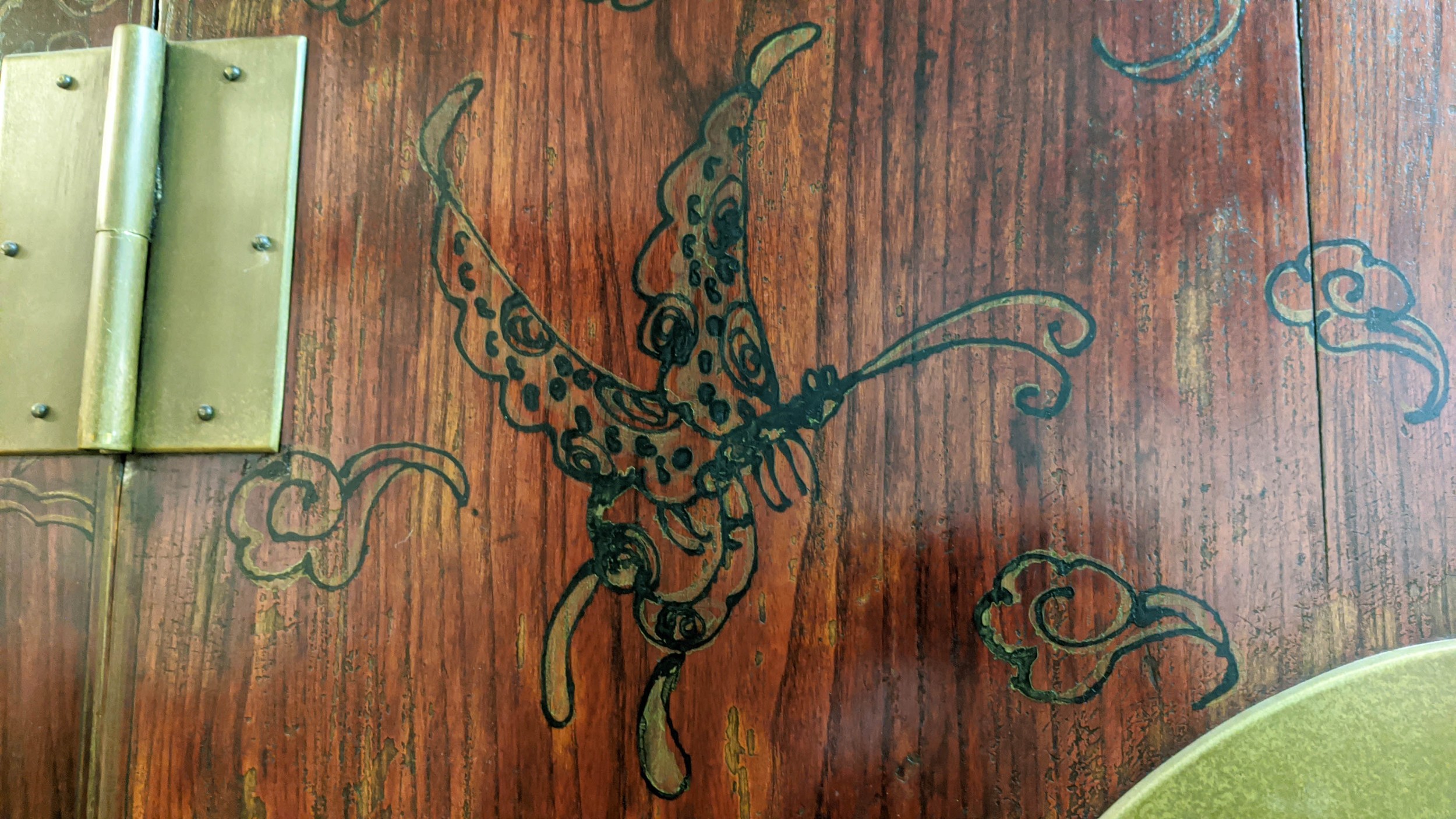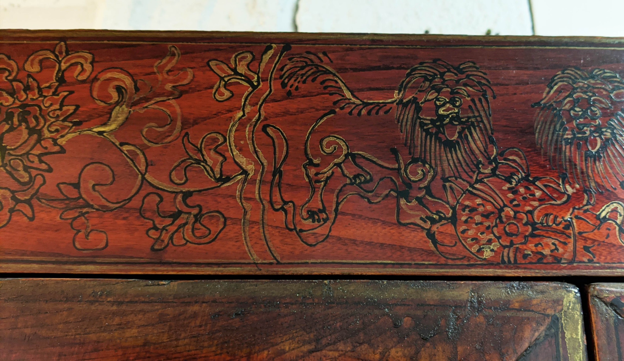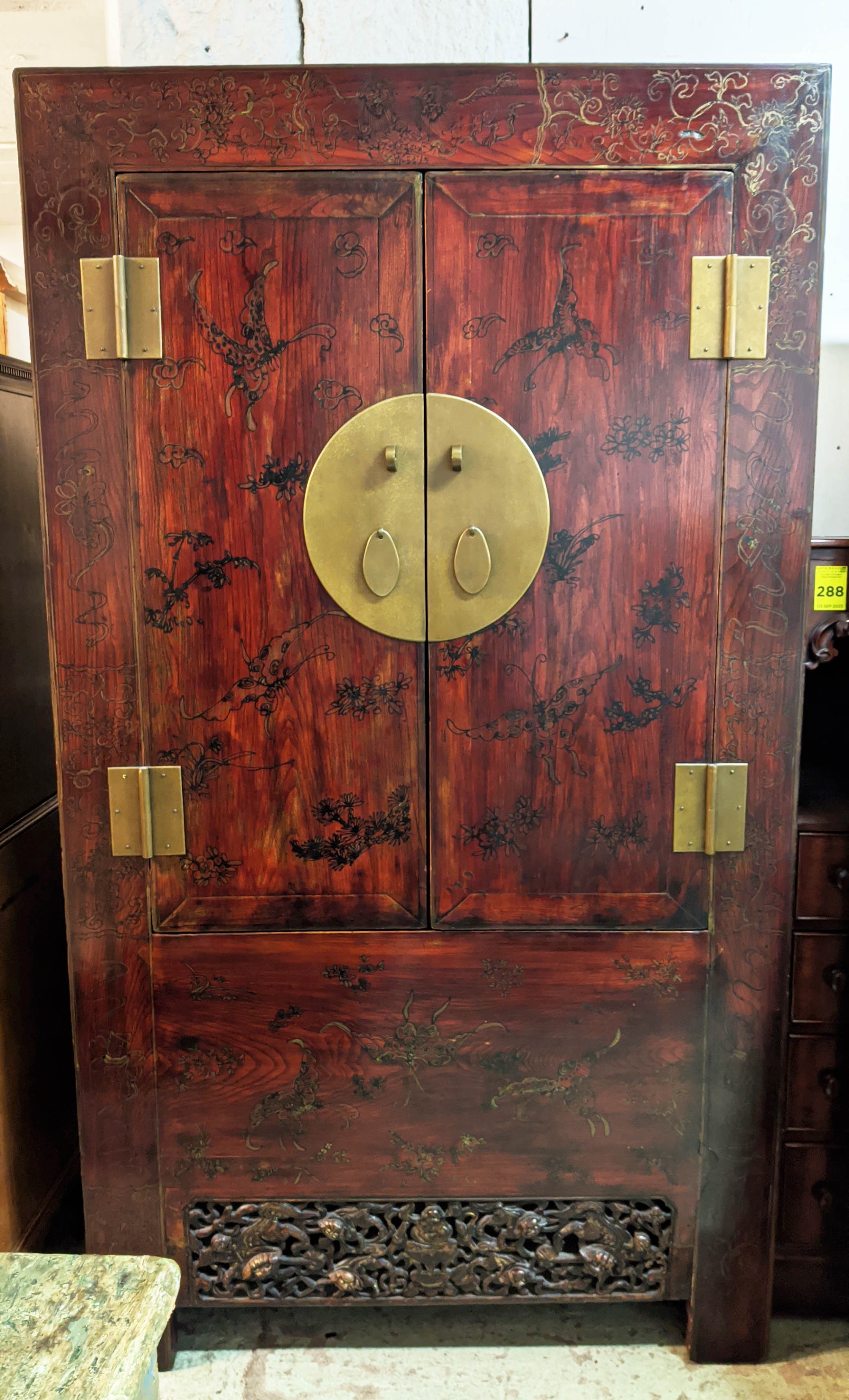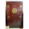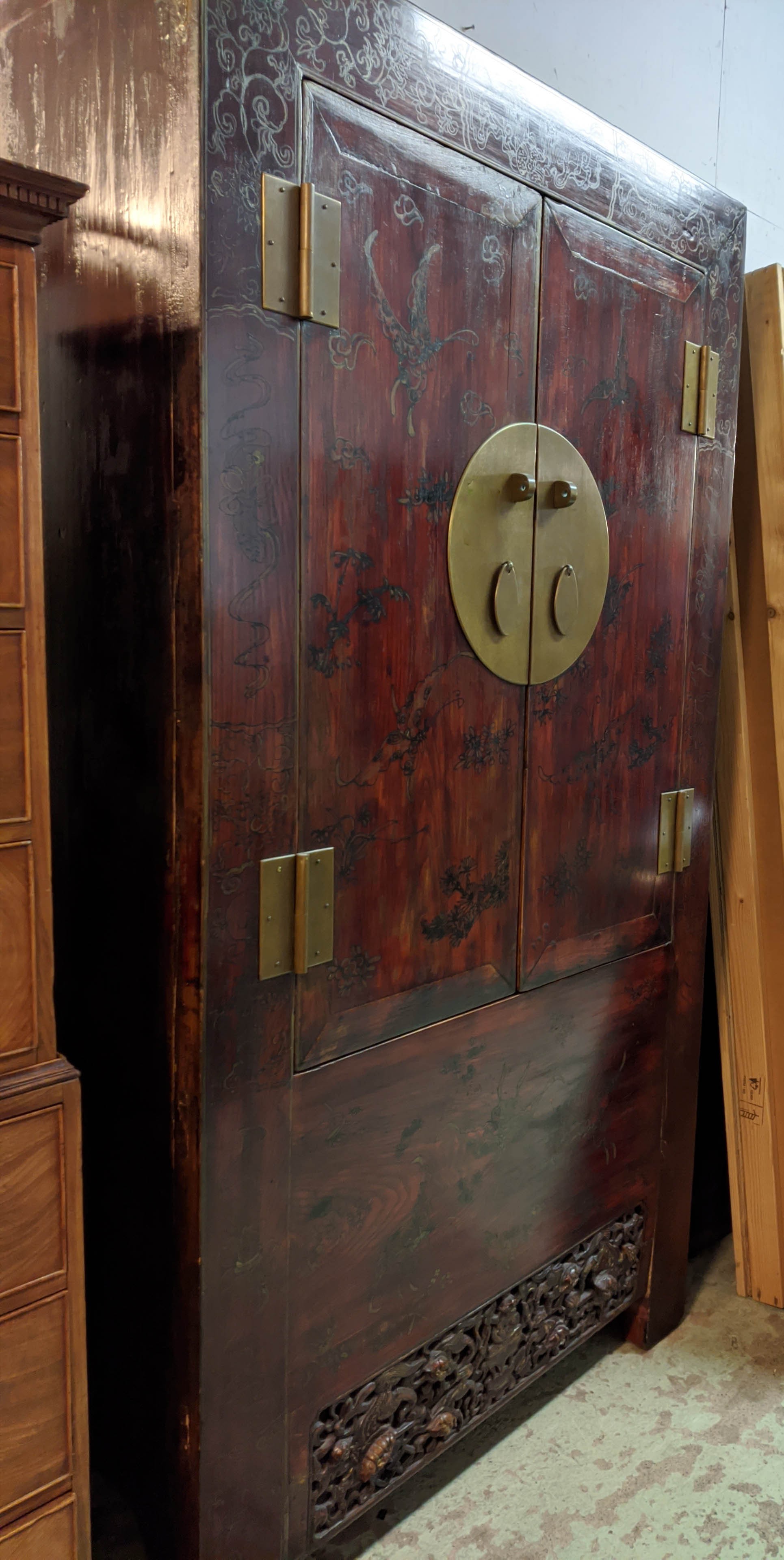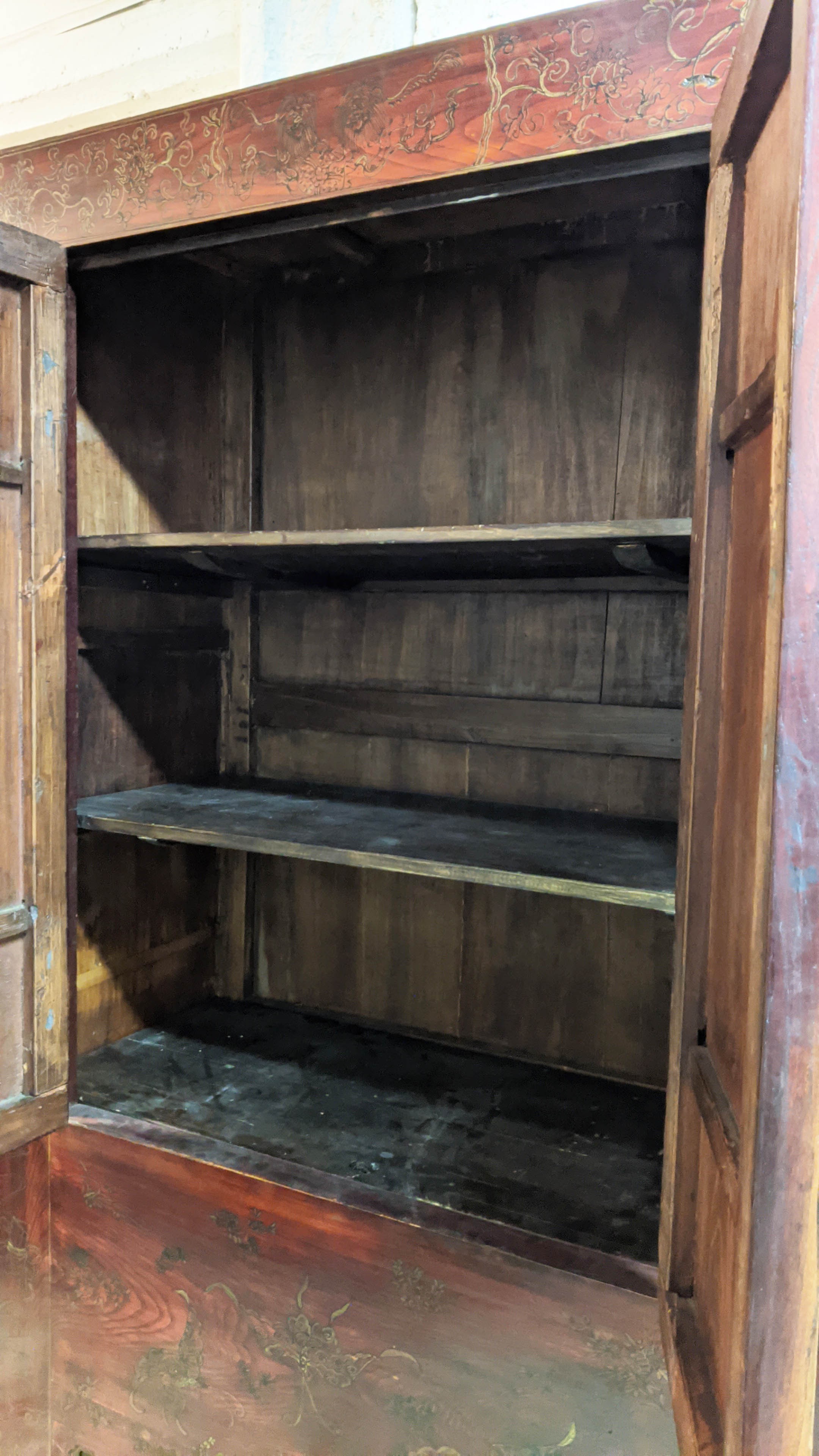 CABINET, Chinese Shanxi style, two doors, enclosing three shelves with bottom concealing hidden storage, 114cm x 56cm x 205cm.