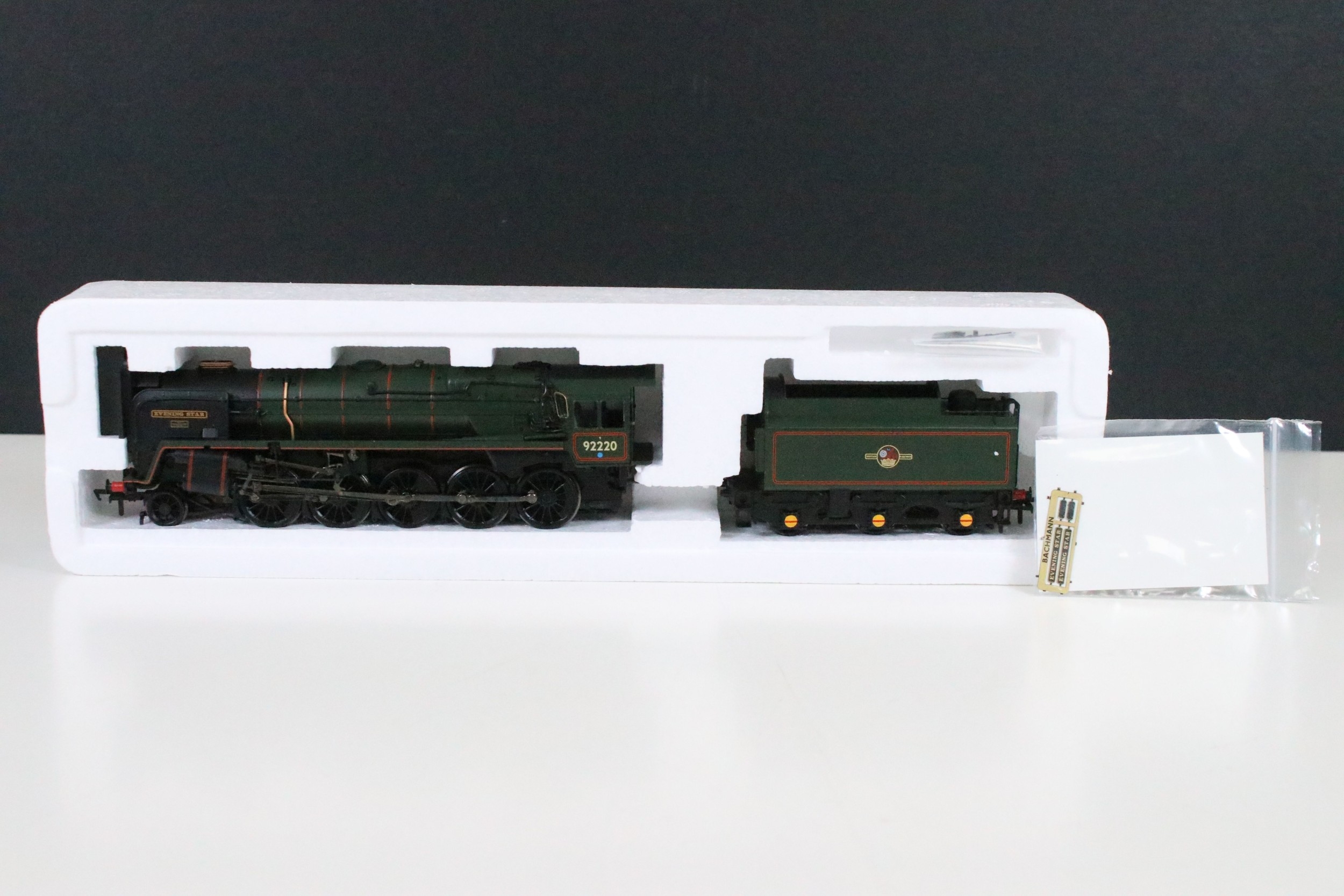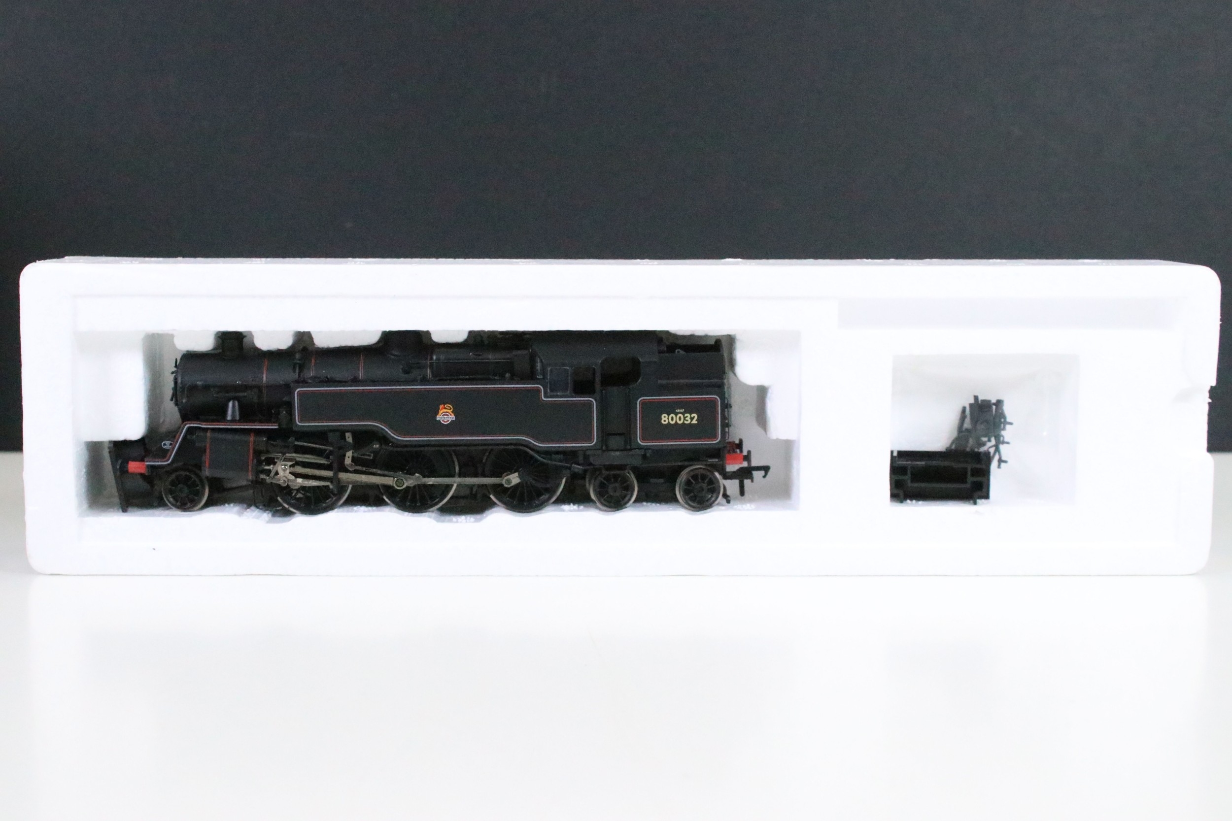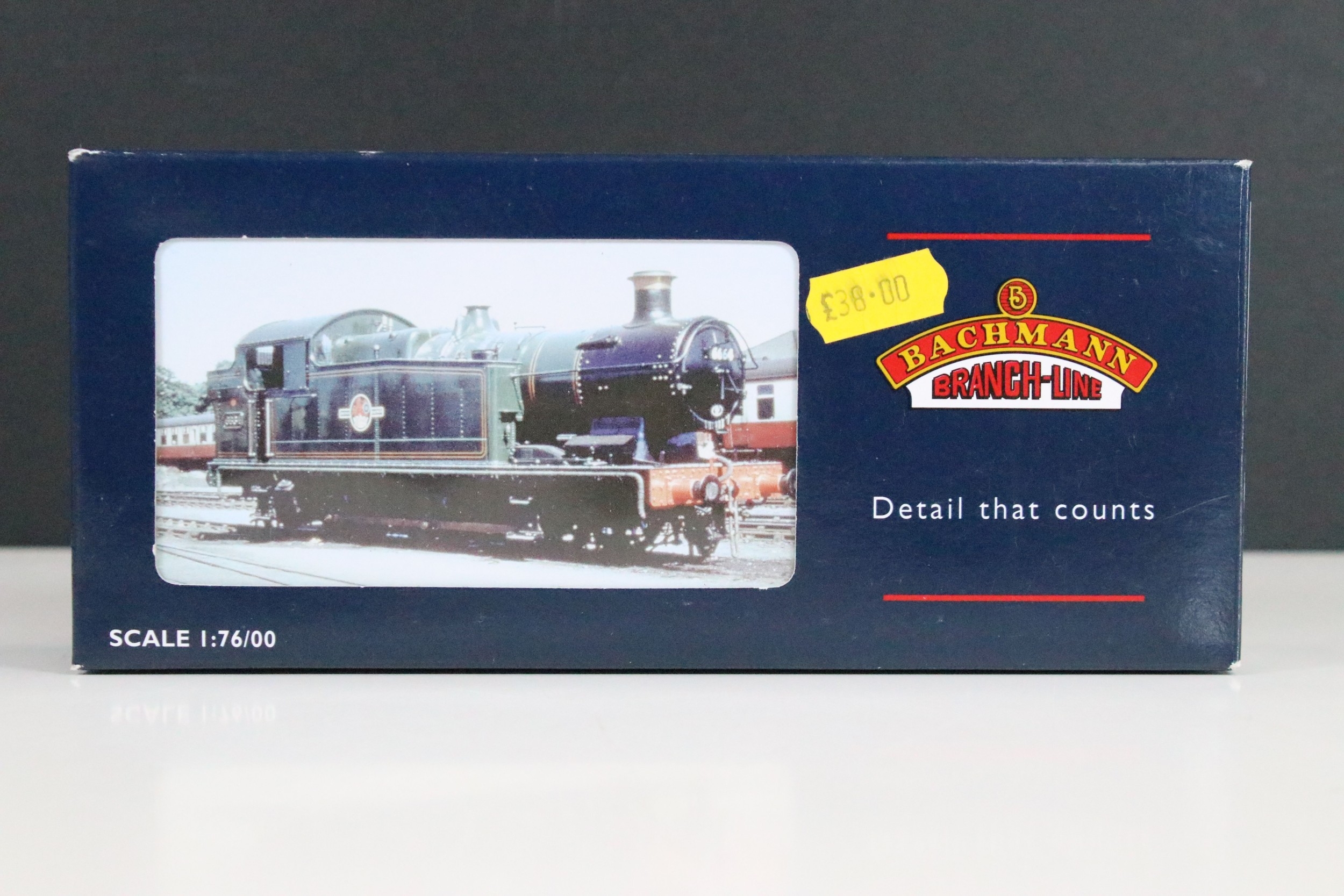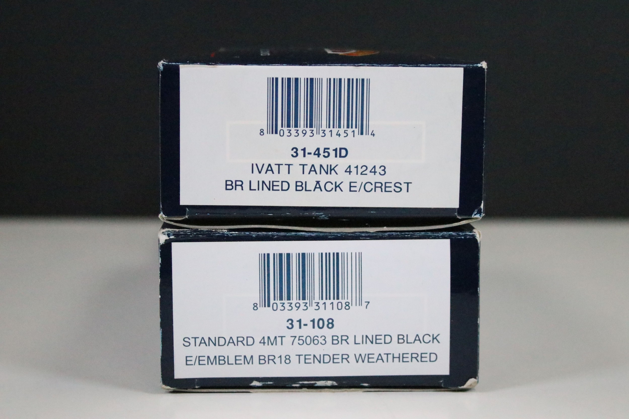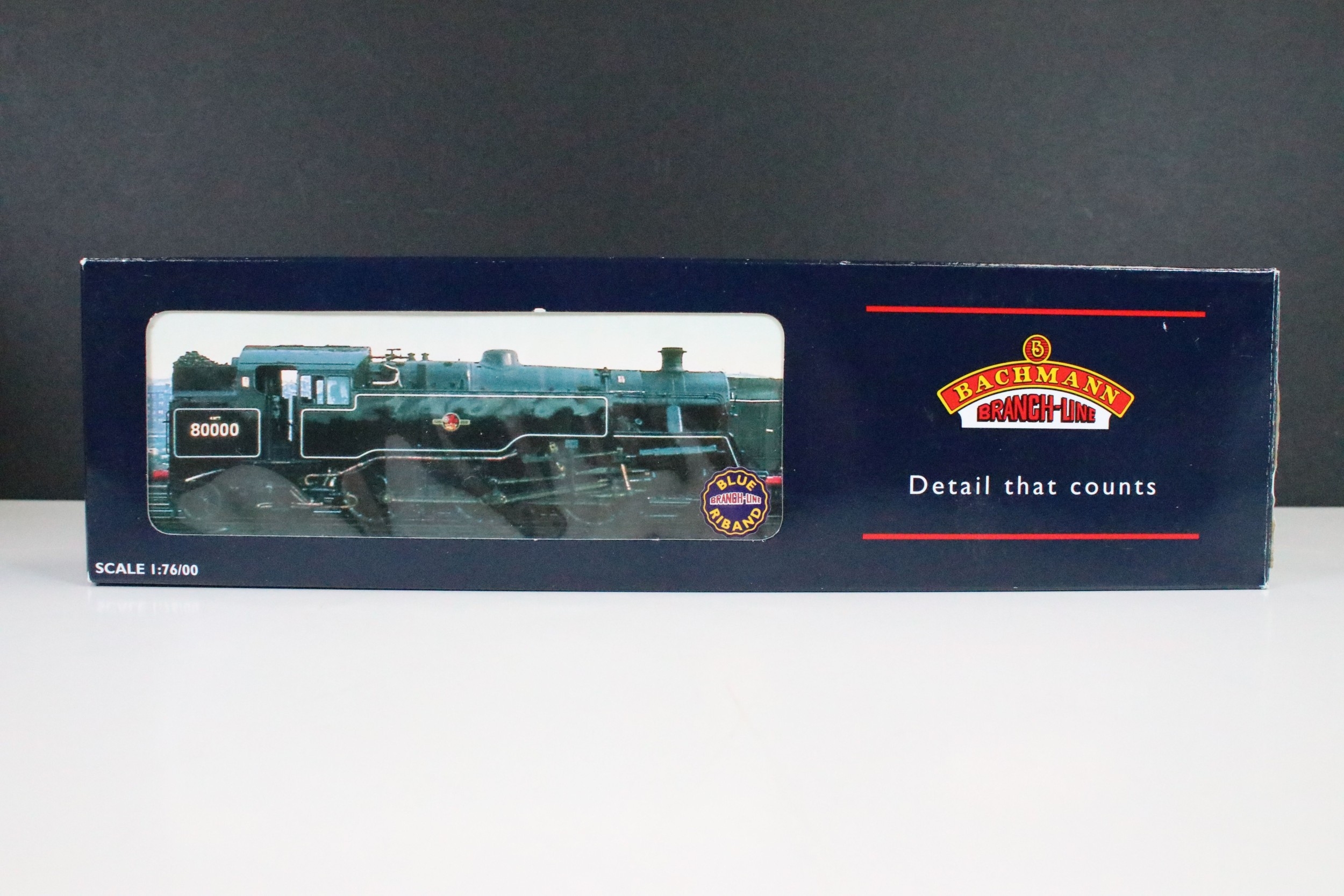 Six boxed Bachmann OO gauge locomotives to include 31-451D Ivatt Tank 41243 BR lined black e/crest, 32-352 Standard Class 4MT Tank 80032 BR lined black emblem, 32-850 9F 2-10-0 Standard 92220 Evening Star BR green l/crest BR1G Tender, 32-079 Class 56XX Tank 6624 BR black, 31-108 Standard 4MT 75063 BR lined black e/emblem BR18 tender weathered and 32-575 Ivatt Class 4 3001 LMS black double chimney