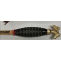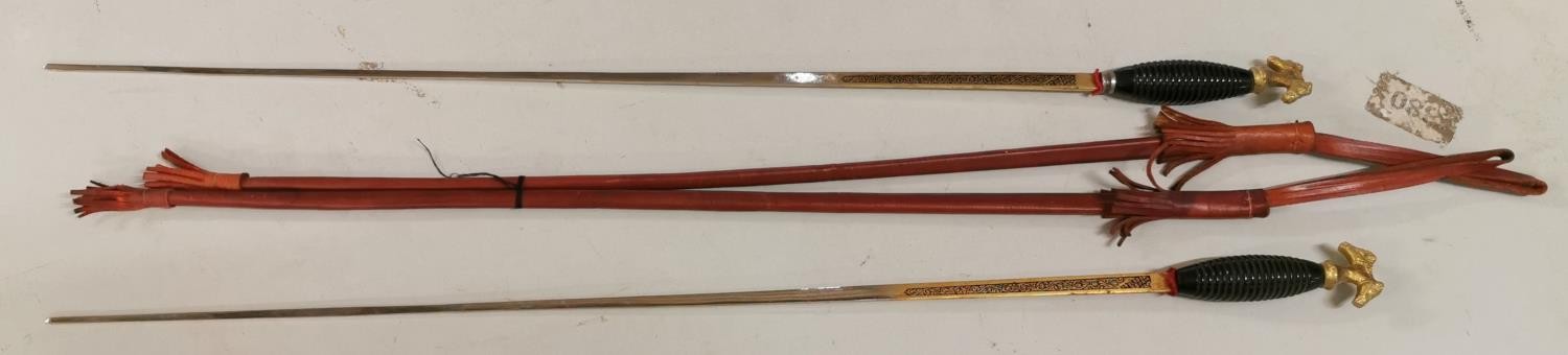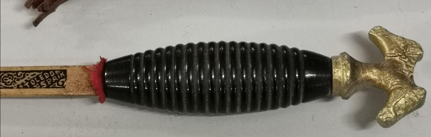Pair of Spanish bullfighting swords in sheaths with horses head tops