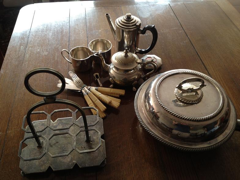 Collection Of Silver Plated Items To Include A Heavy Handled Entree Dish, Coffee Pot With Matching Milk And Sugar, A Victorian Cruet Stand And Others