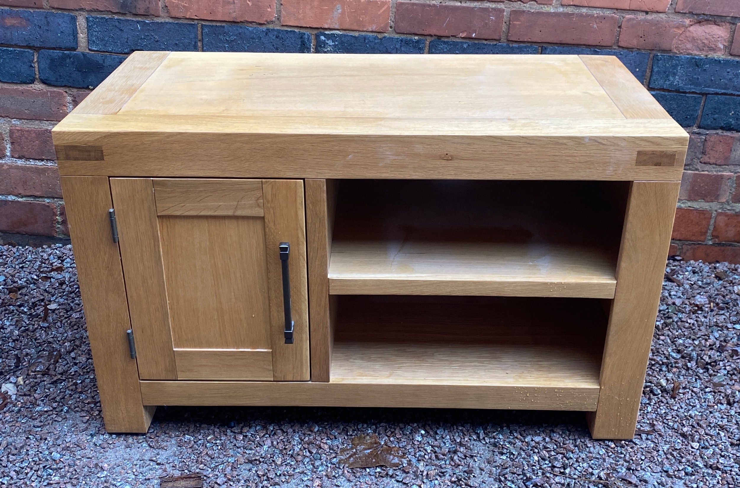 OAK MEDIA UNIT WITH CUPBOARD AND SHELF