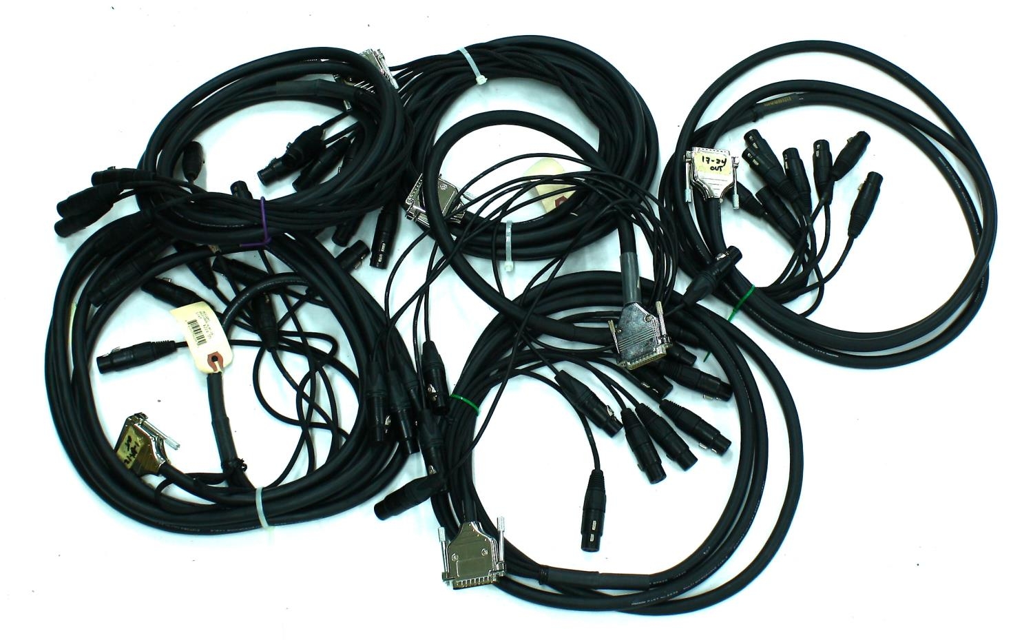 Five Mogami gold DB25 to XLRF multi-core cables; together with an Apogee cable