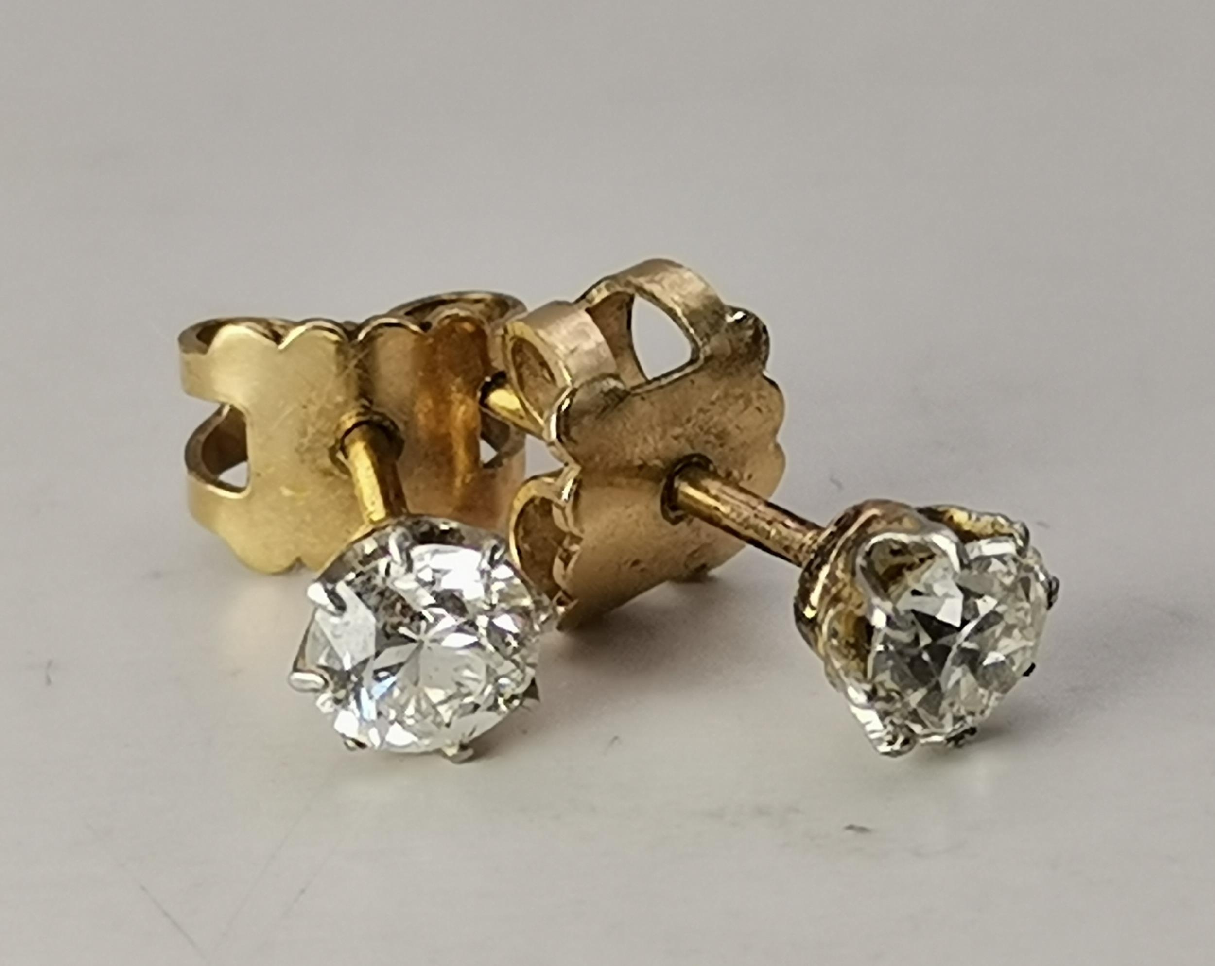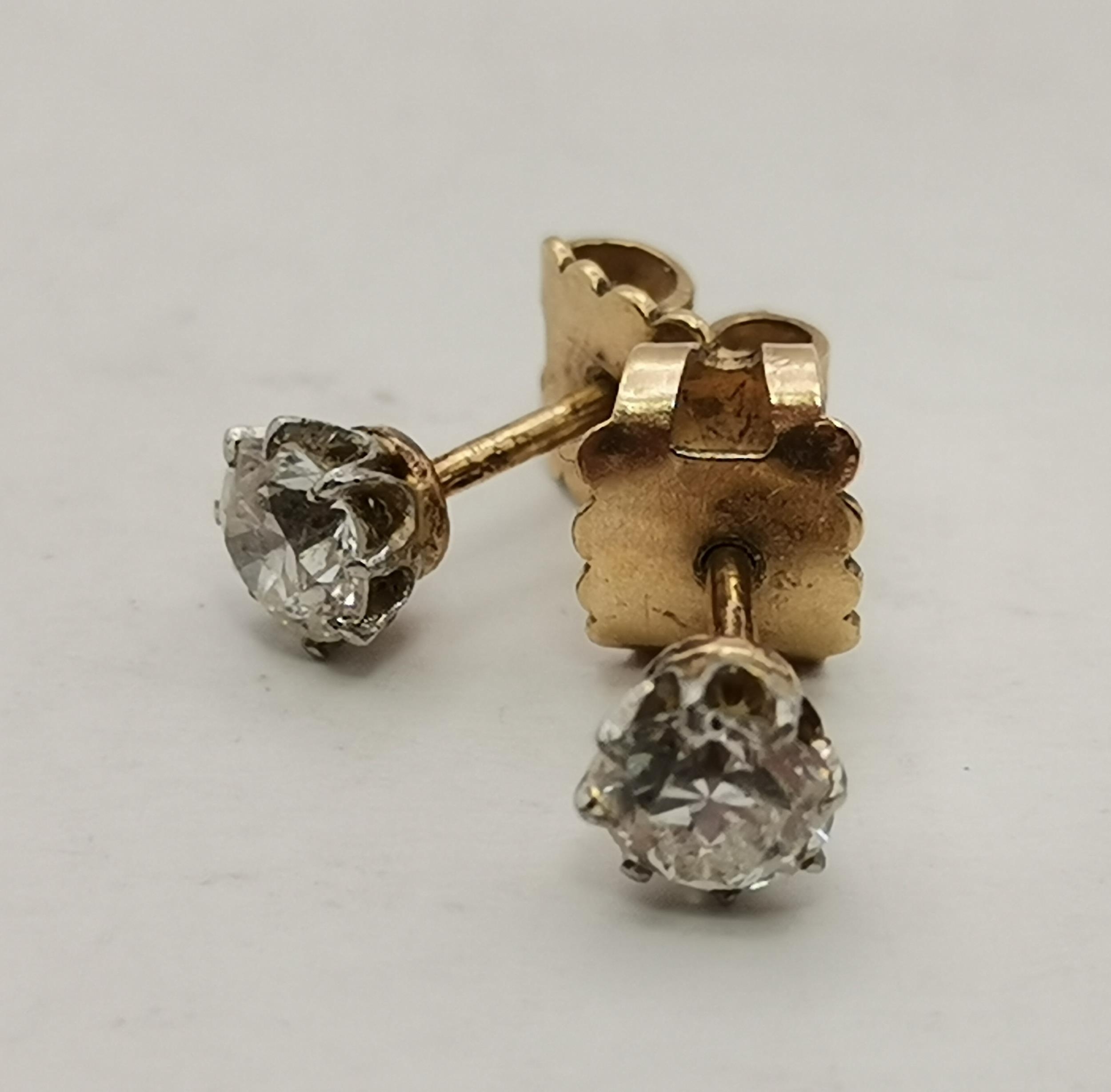 A pair of mounted round brilliant-cut diamond stud earrings, unmarked. 4mm diameter, 1.1g gross