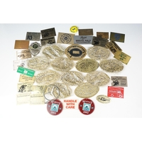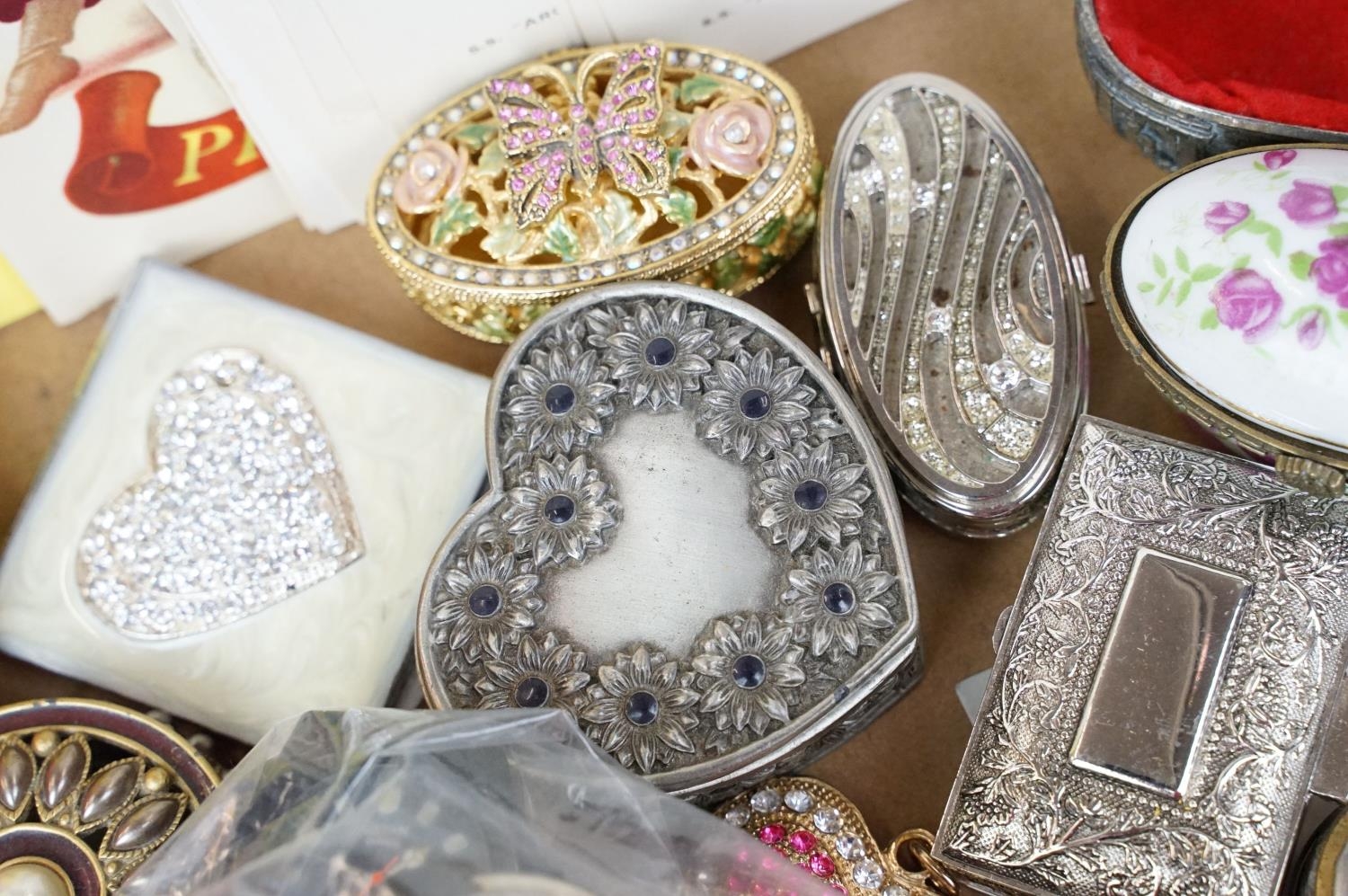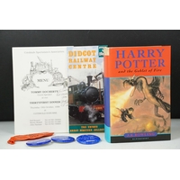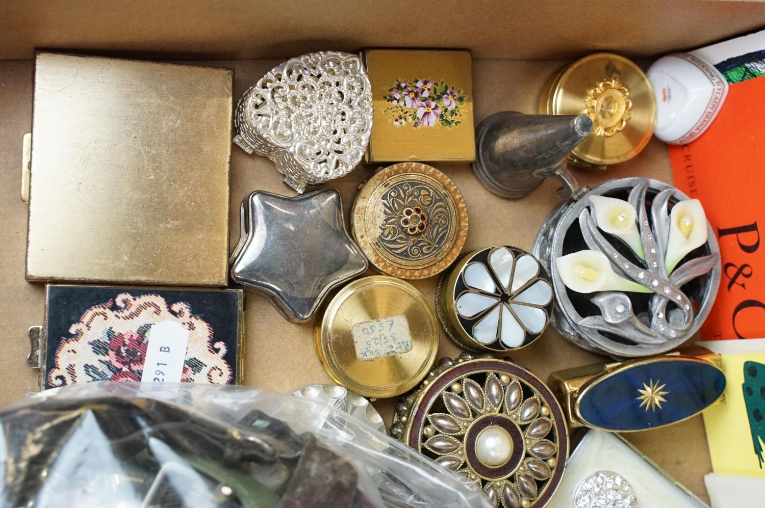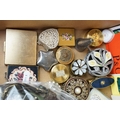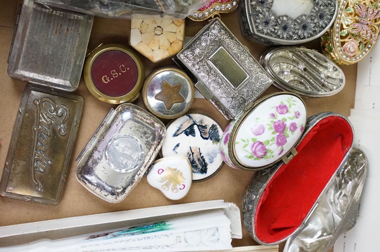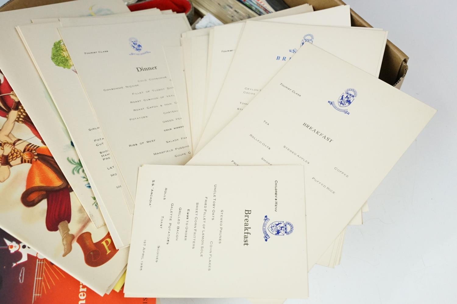 A group of mixed collectables to include pill boxes, watches, fans and a selection of ships menus.