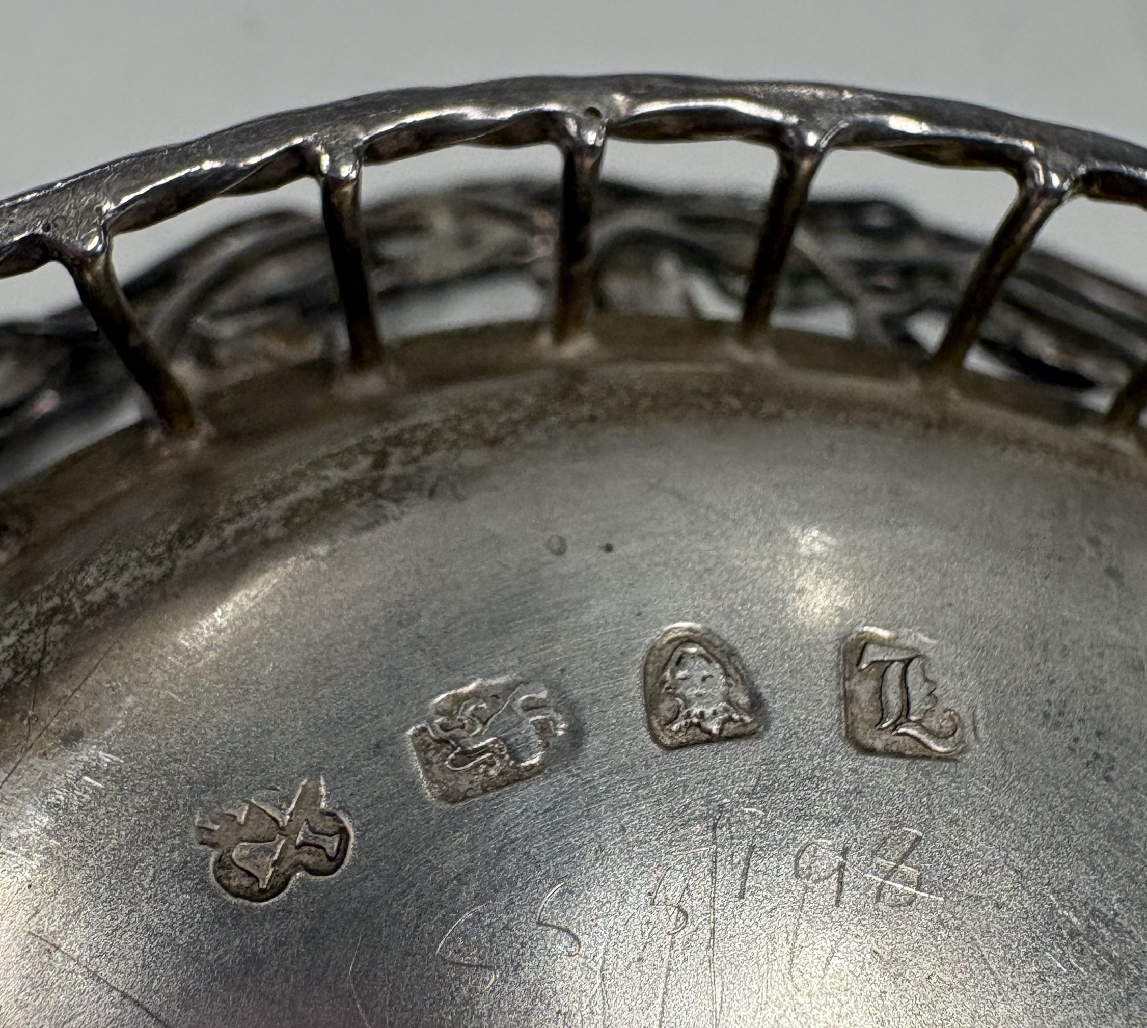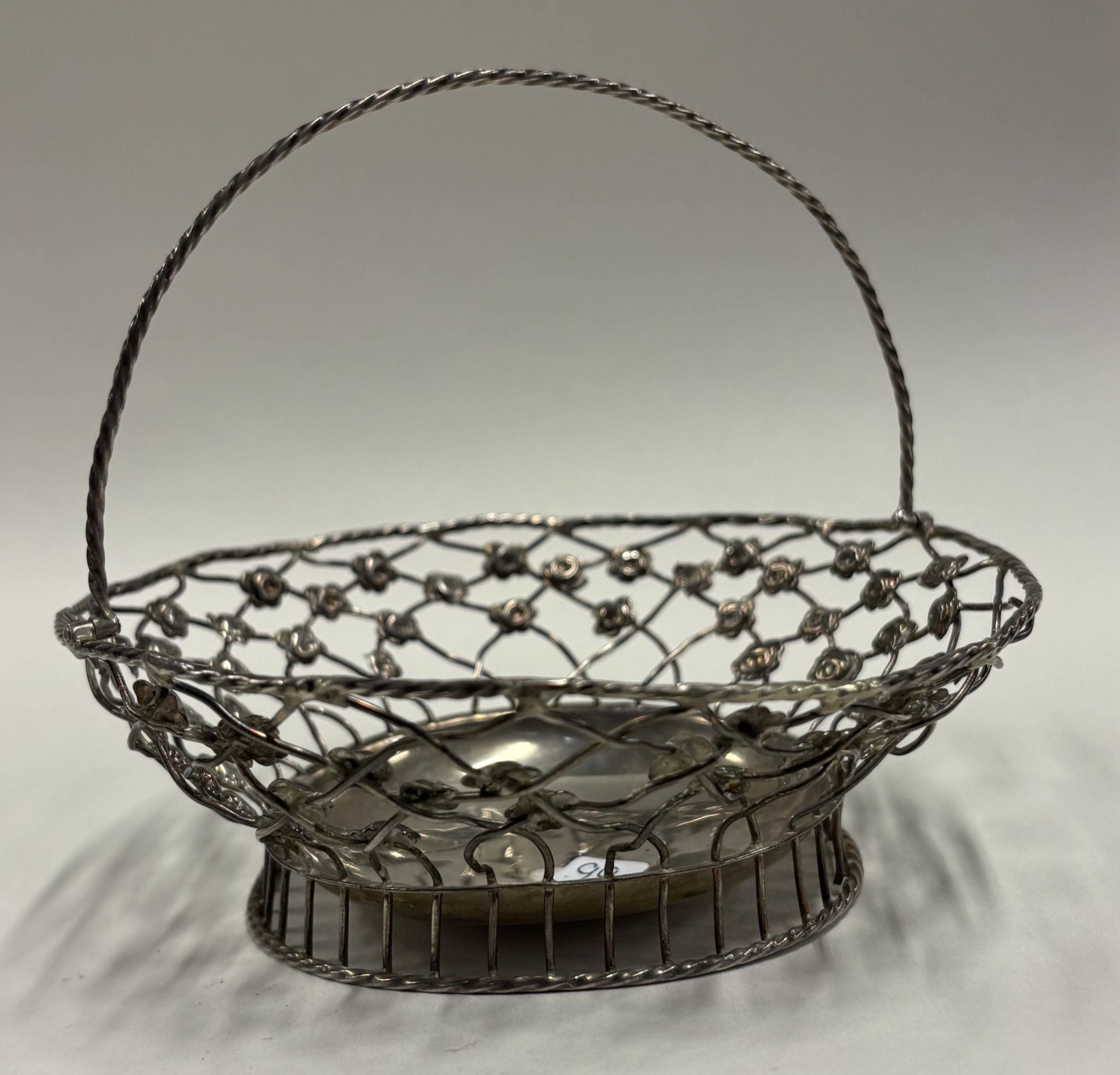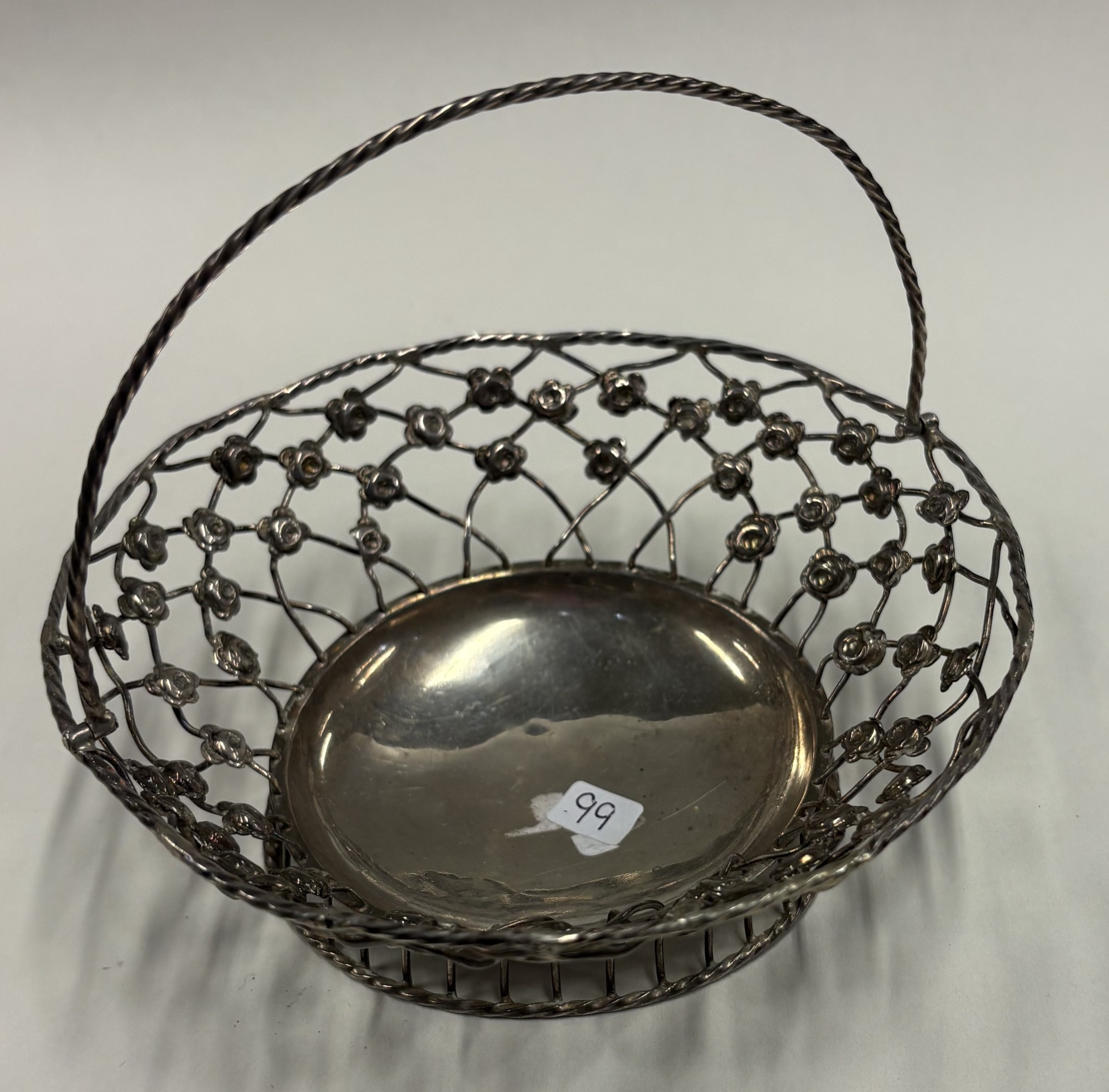 An 18th Century Georgian silver swing-handled basket with pierced decoration. London 1766. Approx. 88 grams. Est. £200 - £300.