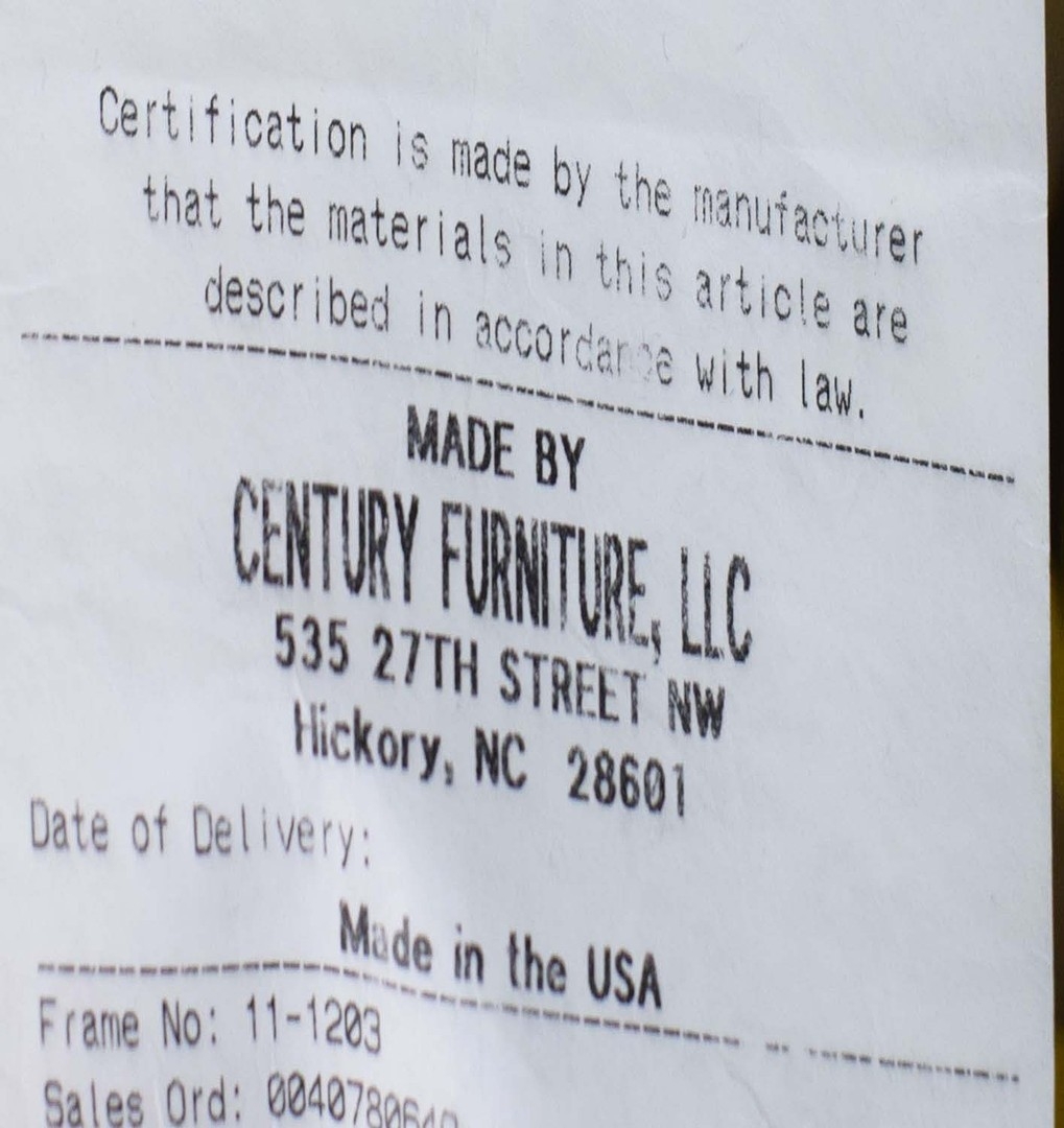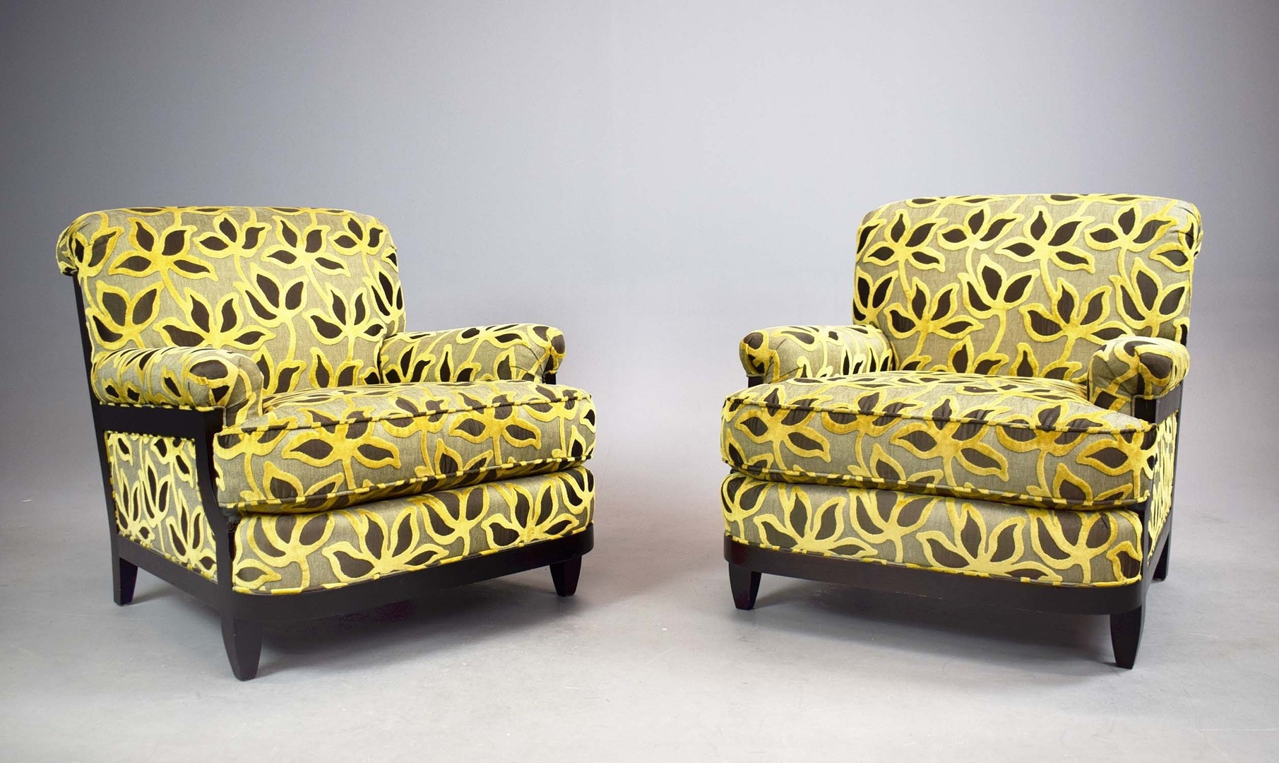 CENTURY FURNITURE ARMCHAIRS, A PAIR. foliate patterned upholstery, 90cm W approx. (2).