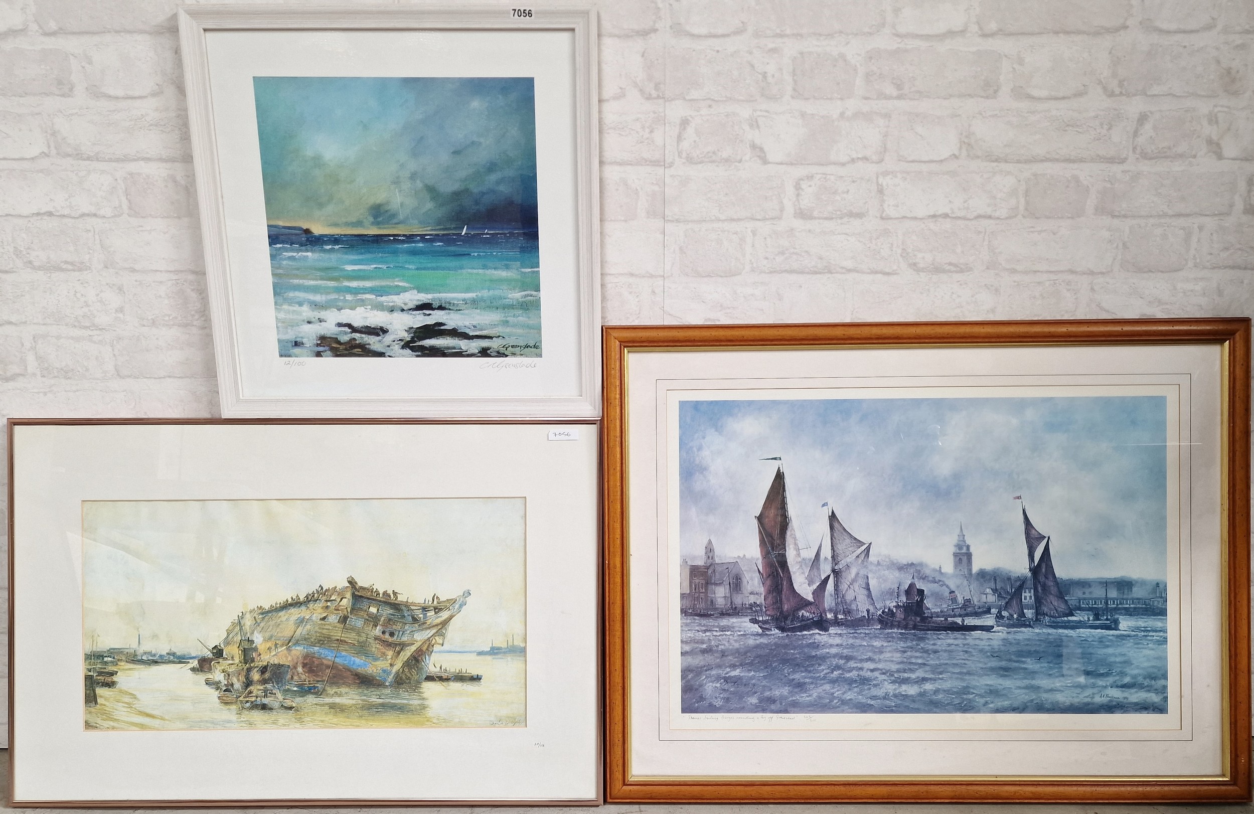 Three ltd edition prints inc Charles W Wyllie, Blackman and Greenslade. Largest 74cm x 56cmPostage Band E
