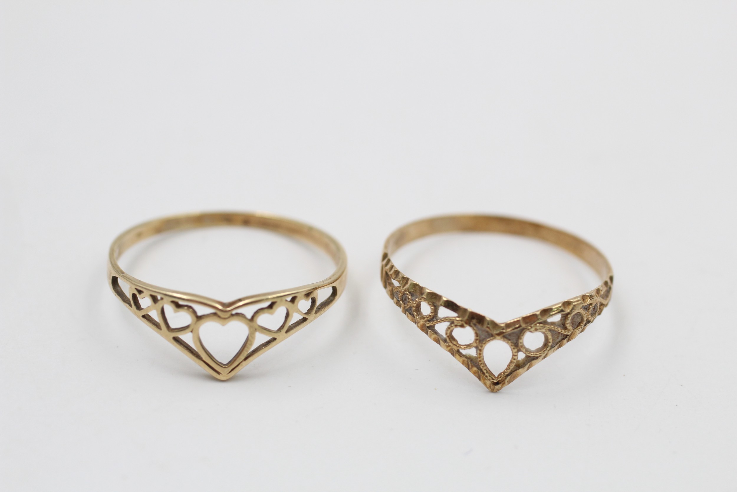 2 x 9ct gold openwork design rings (1.4g)