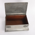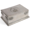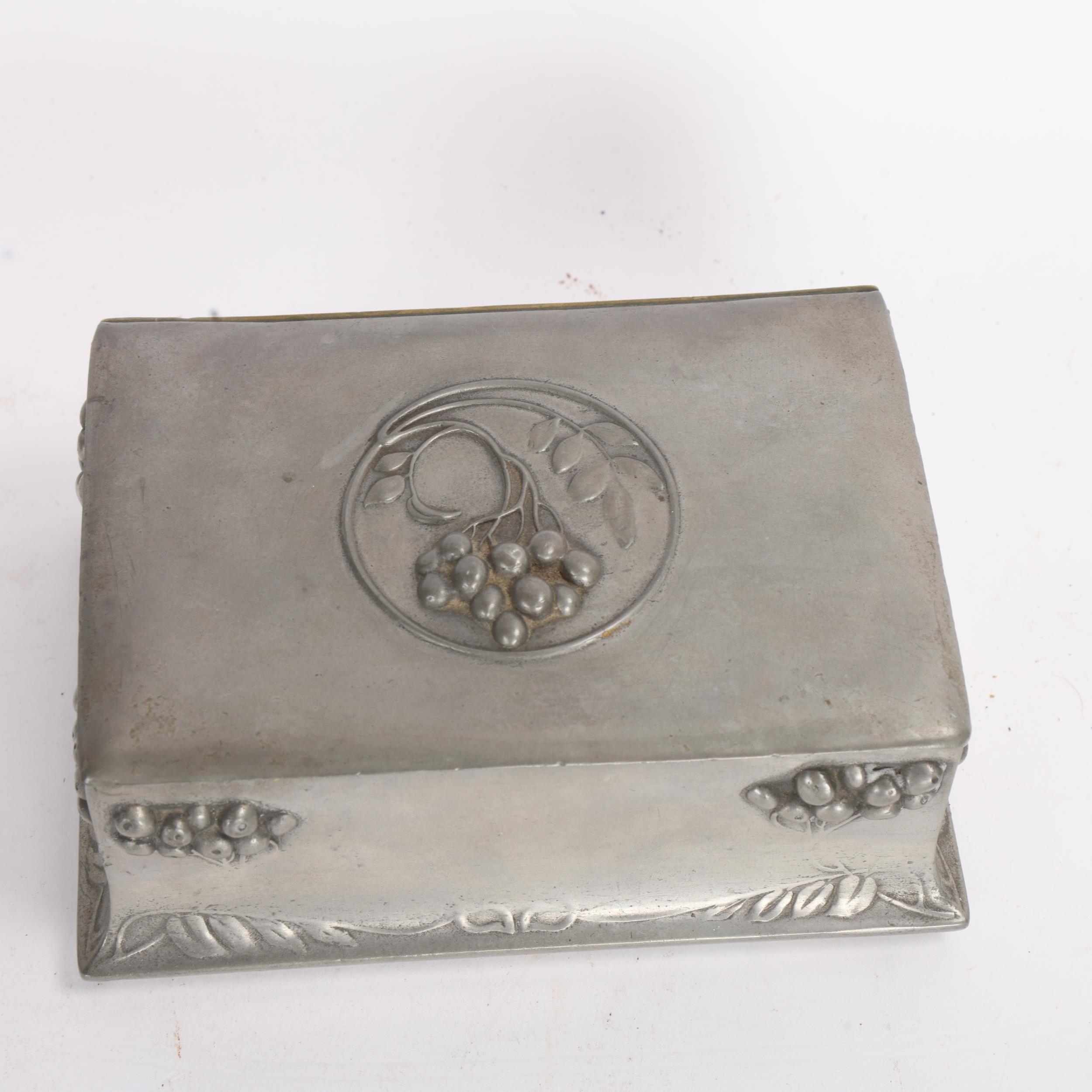 An Art Nouveau pewter cigarette box, with relief fruit decoration, width 15cm