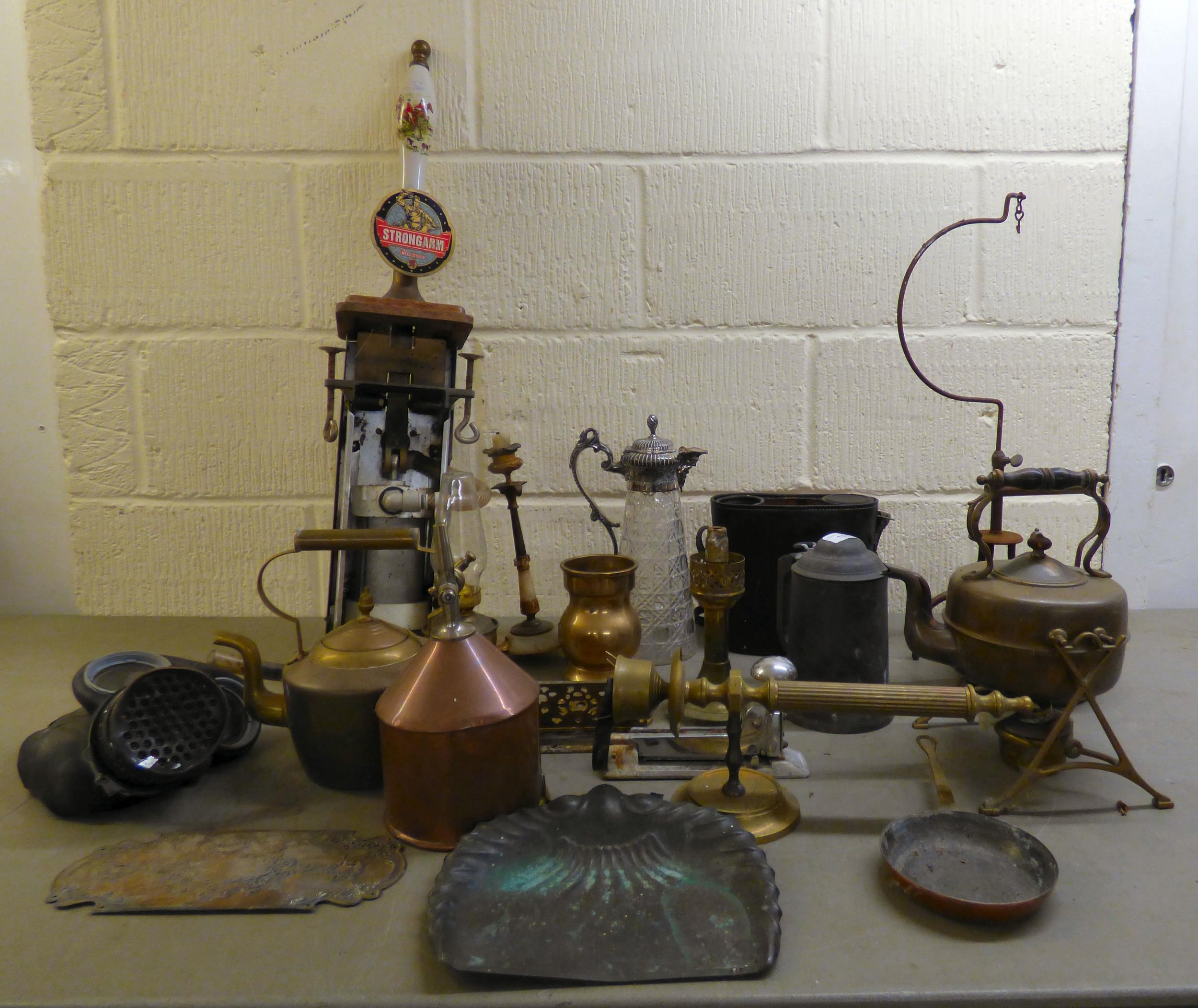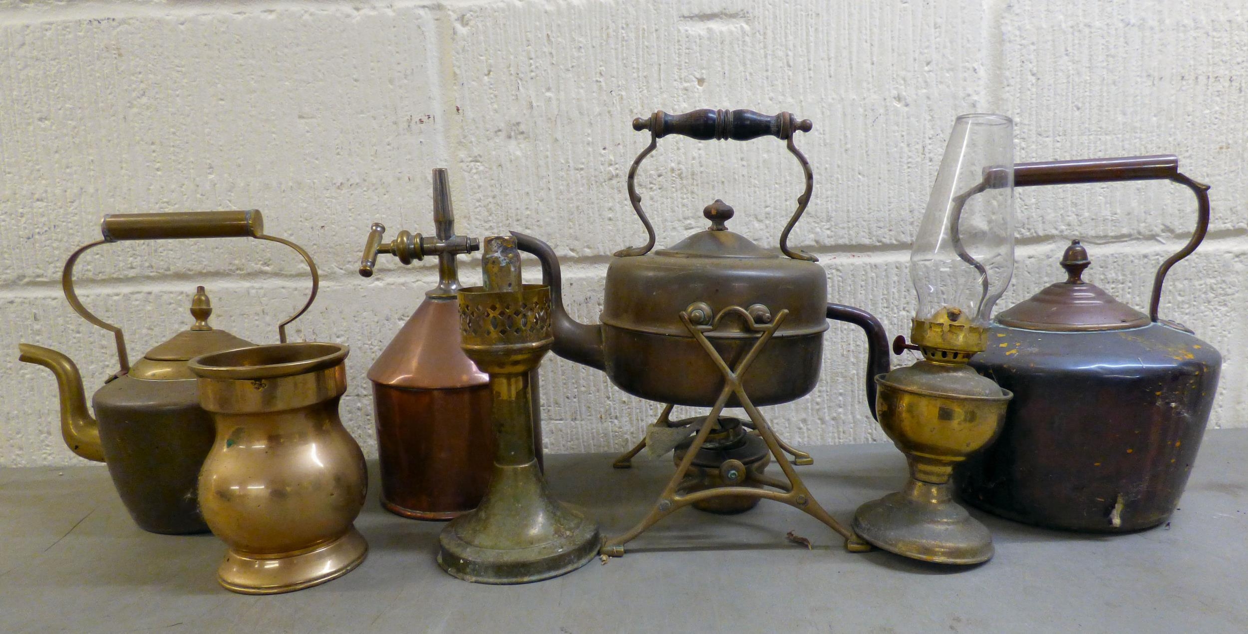 Decorative and functional, mainly 20thC metalware: to include a selection of brass kettles