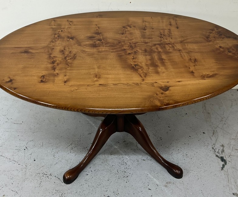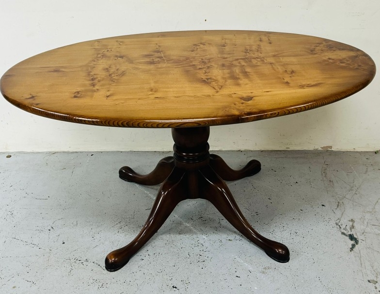 A Stewart Linford oval dining table on a pedestal base H72cm W153cm D104cm