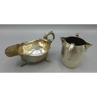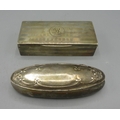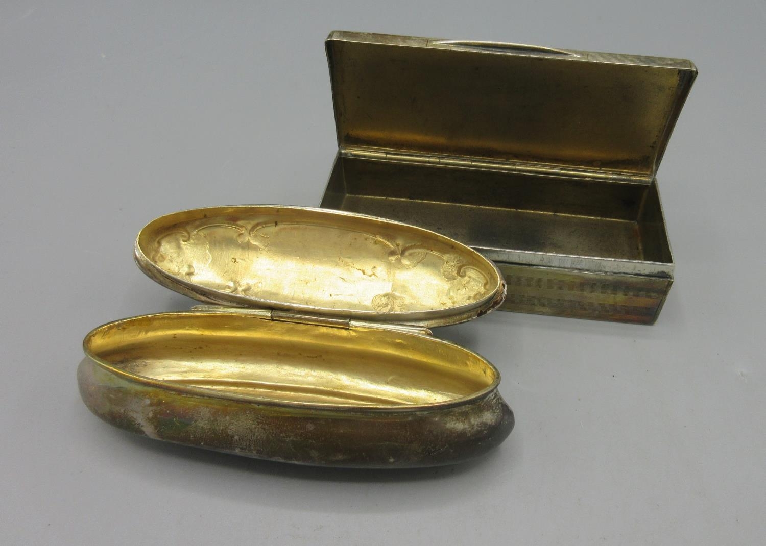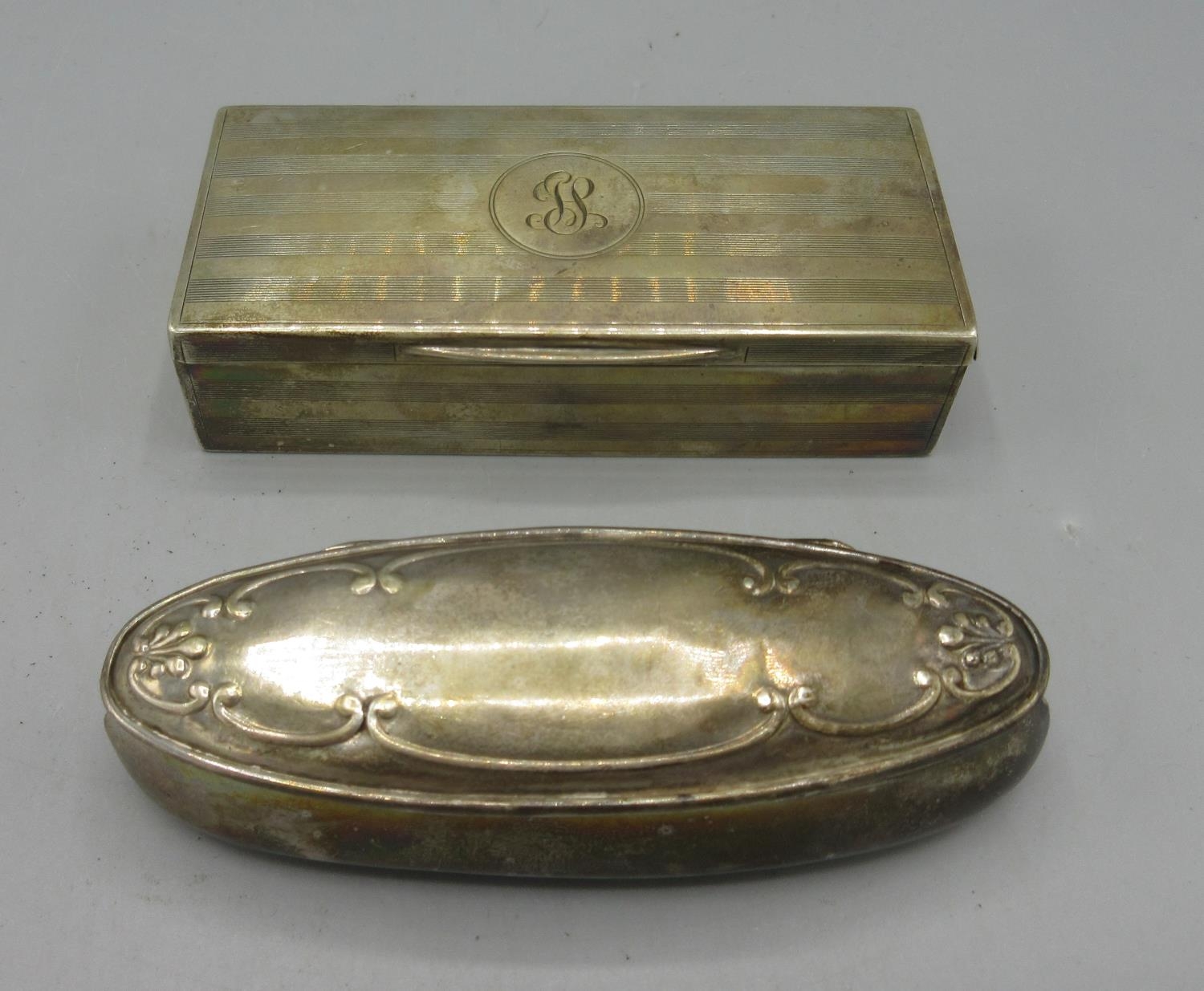 George V silver monogrammed cigarette box, with stripes of engine turned pattern by Goldsmiths & Silversmiths Co Ltd, London 1919, W10.5cm and an Edwardian silver oval trinket box, with serpentine repousse border by Henry Matthews, Birmingham, 1901, W11cm, 5.51ozt