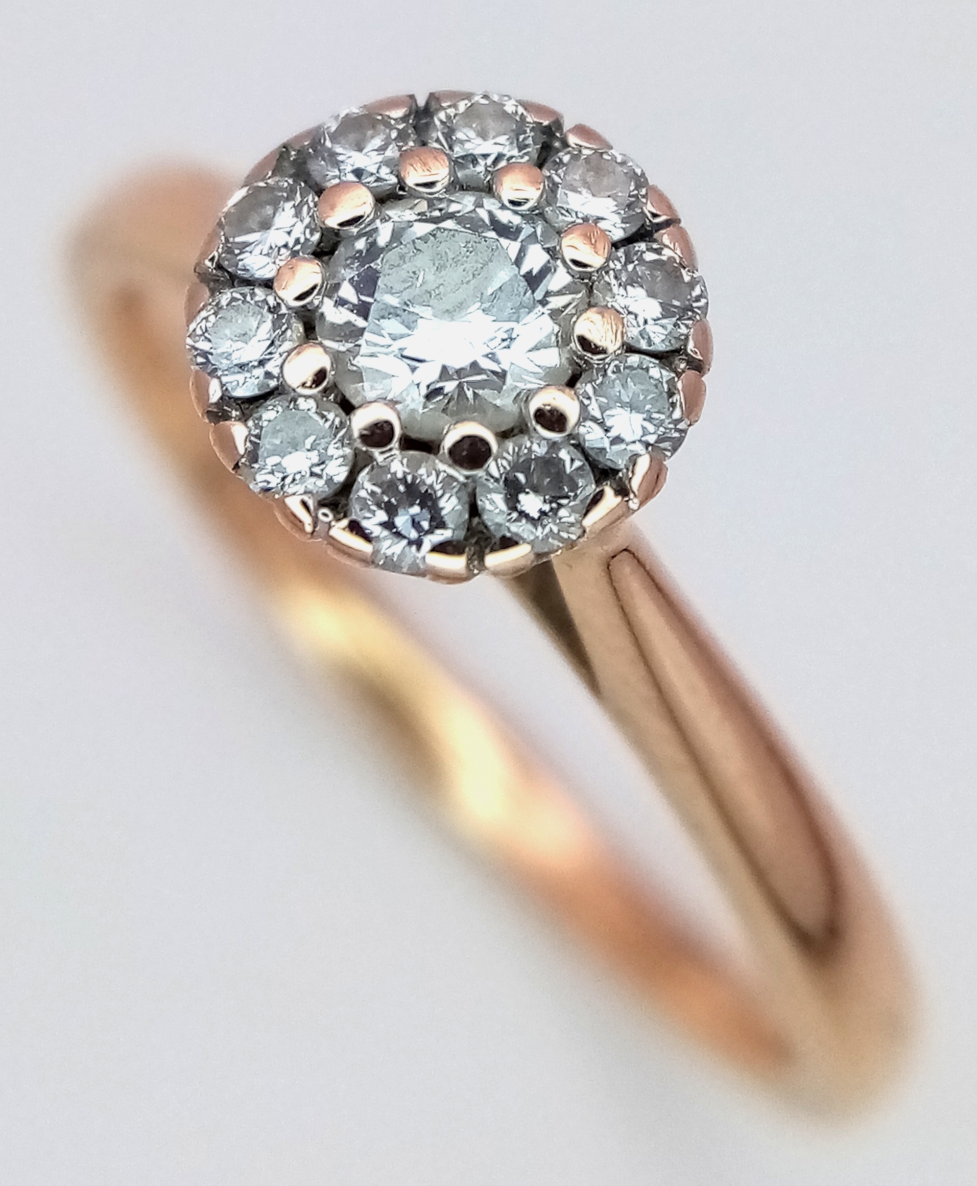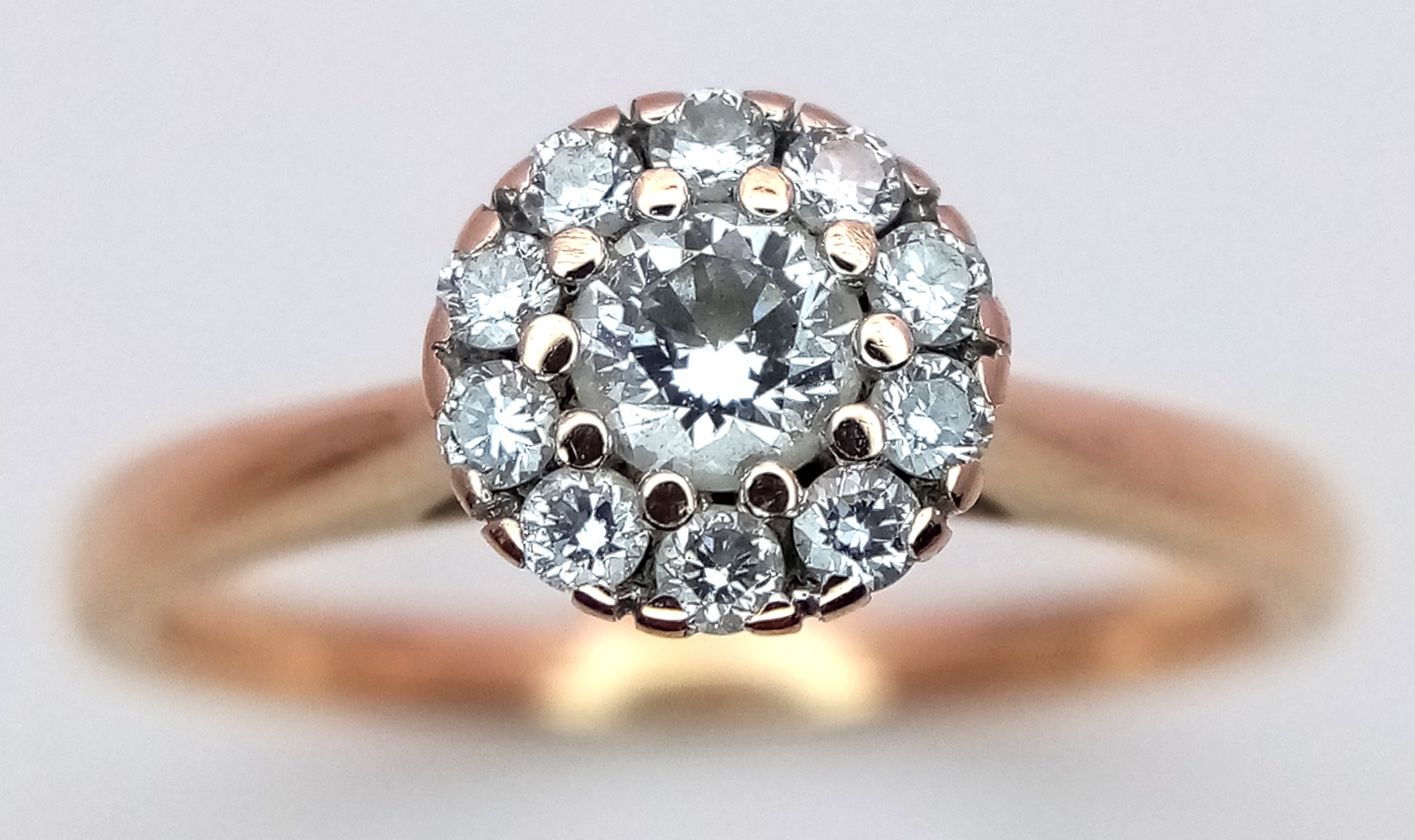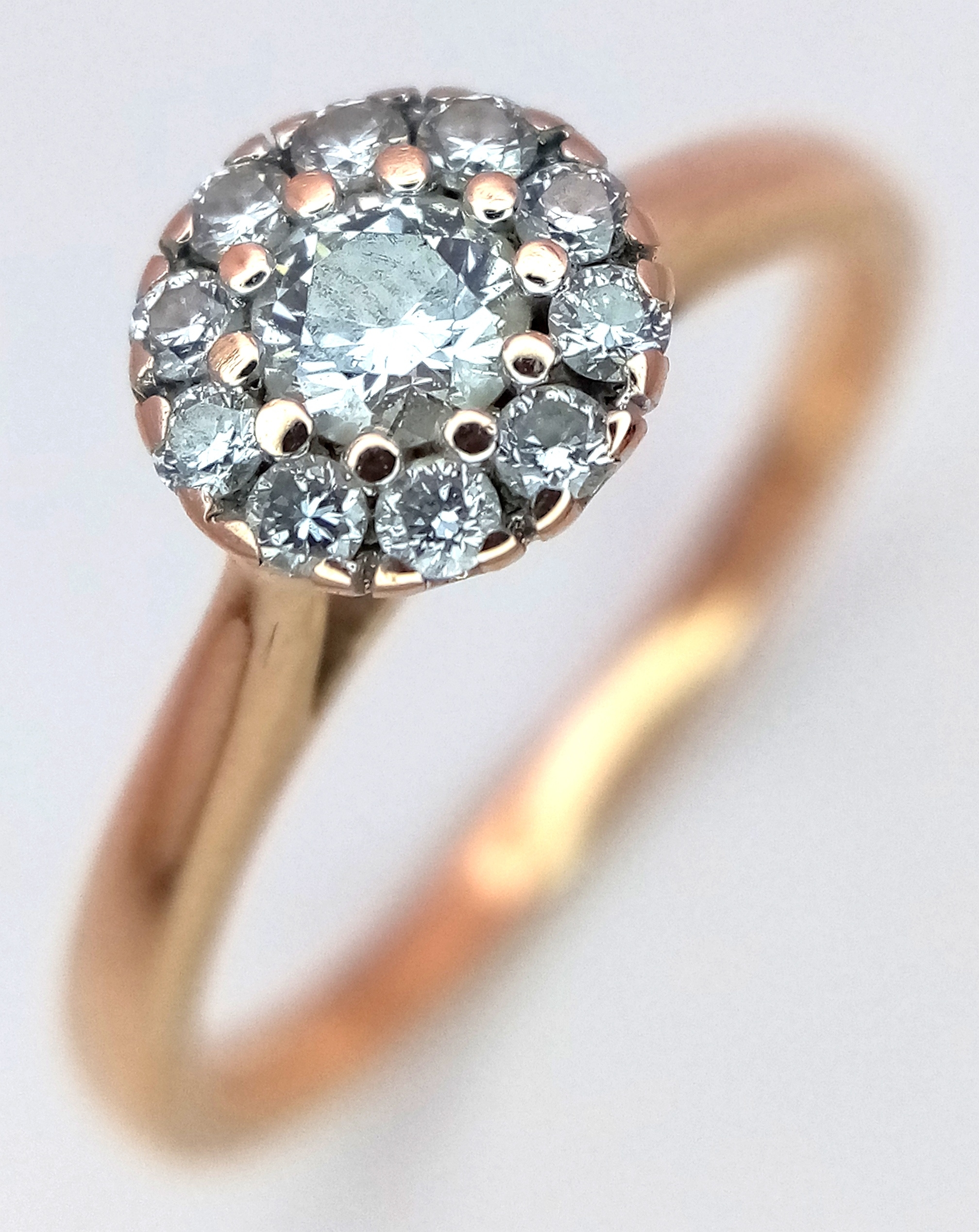 AN 18K ROSE GOLD DIAMOND HALO RING 0.26CT 2.7G SIZE K. REF: SC 9088