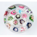 CLICHY SPACED MILLEFIORI GLASS PAPERWEIGHT ON A WHITE LATTIC...