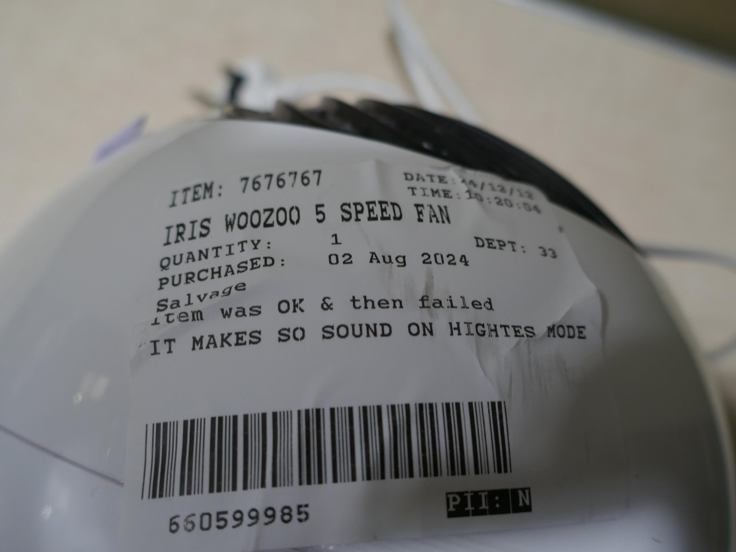 Iris woozoo 5 speed fan (354-58) *This lot is subject to V...