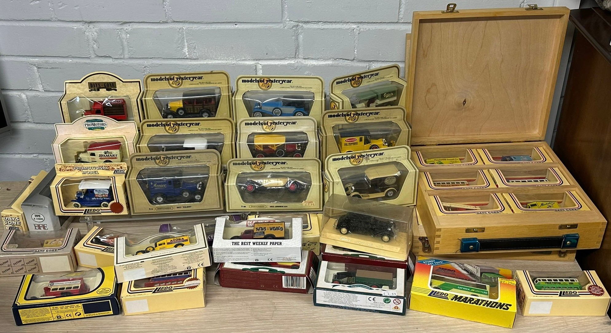 Quantity of Lledo Days gone diecast vehicles boxed together with some in two wooden display boxes including EFE etc