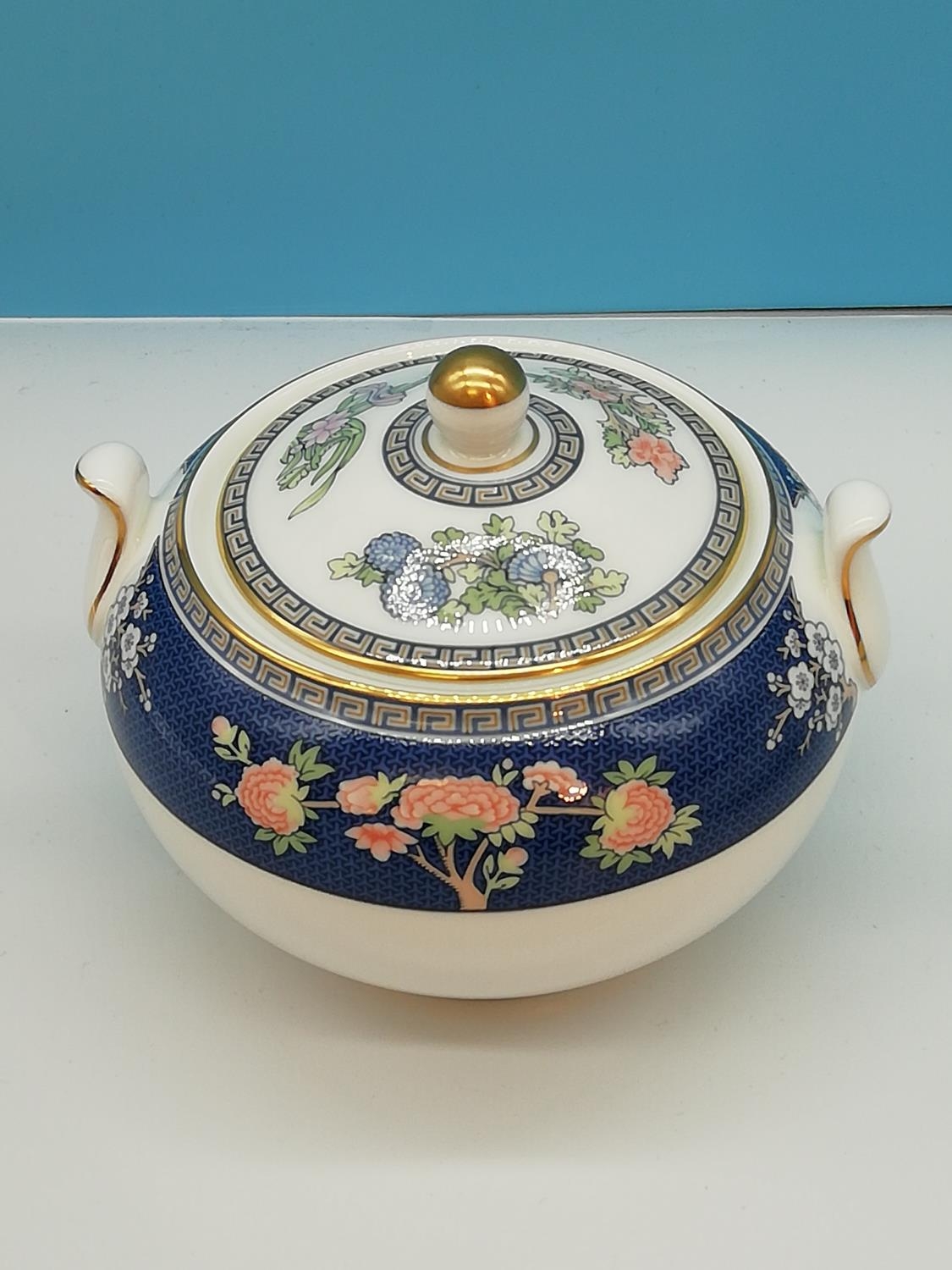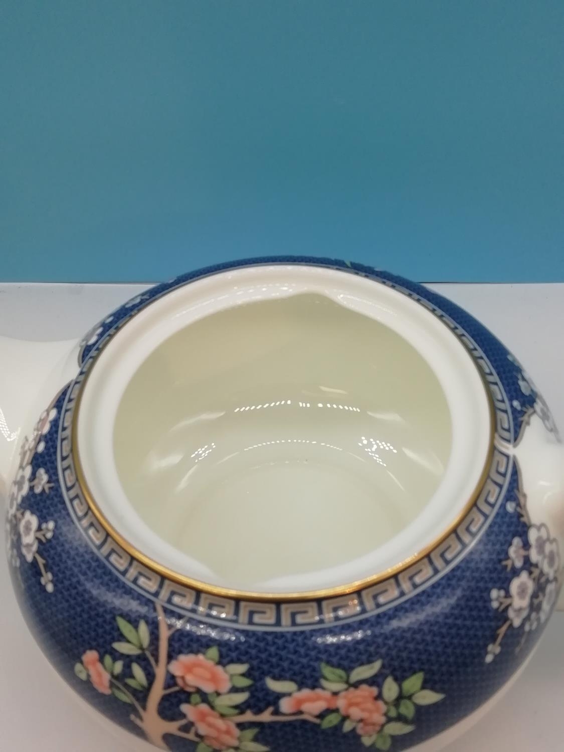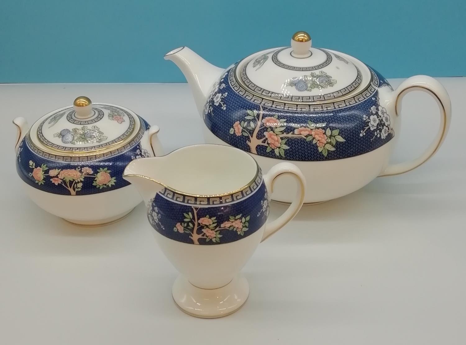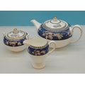 Wedgwood Teapot, Sugar and Cream in the 'Blue Siam' Pattern.