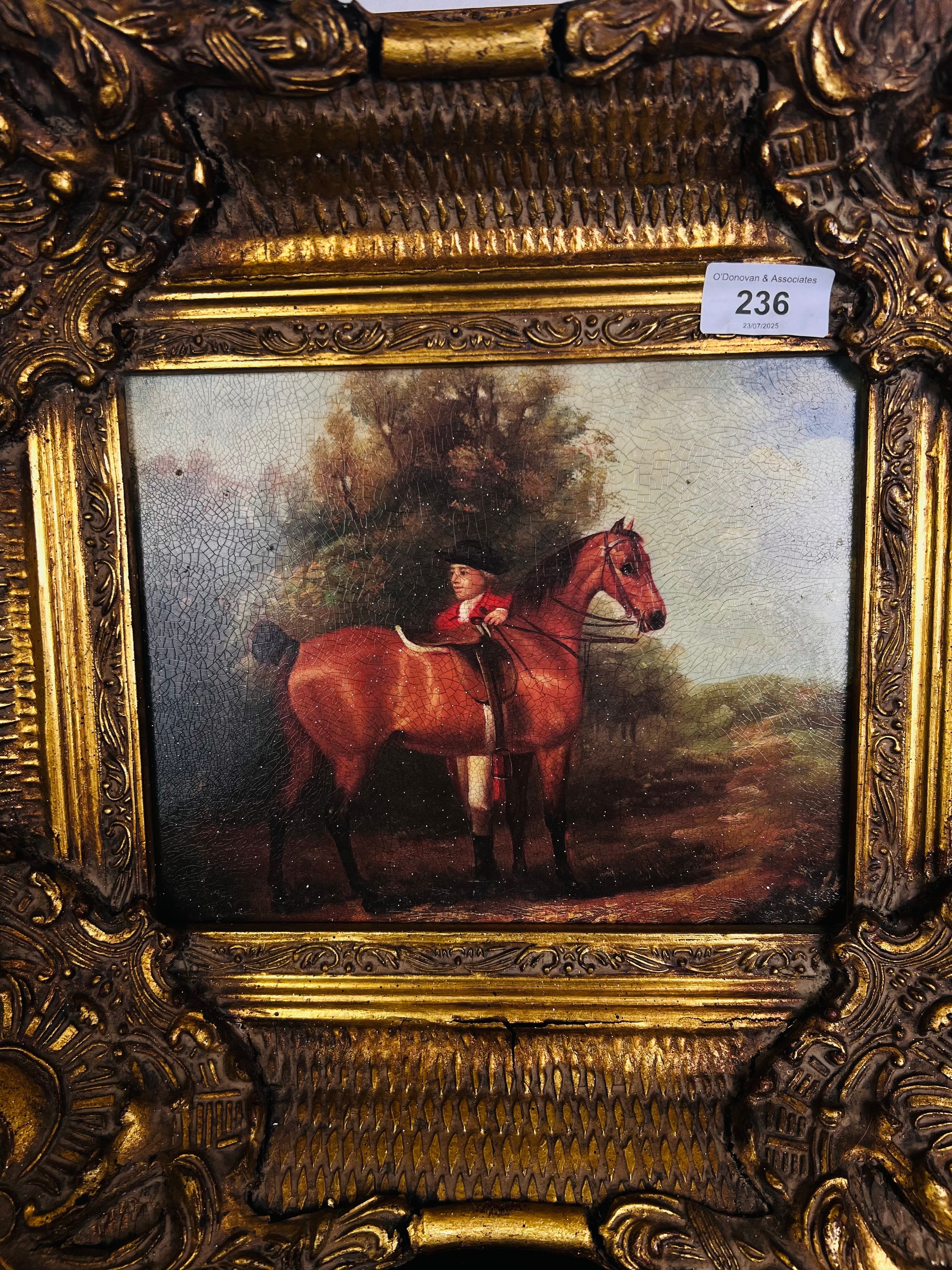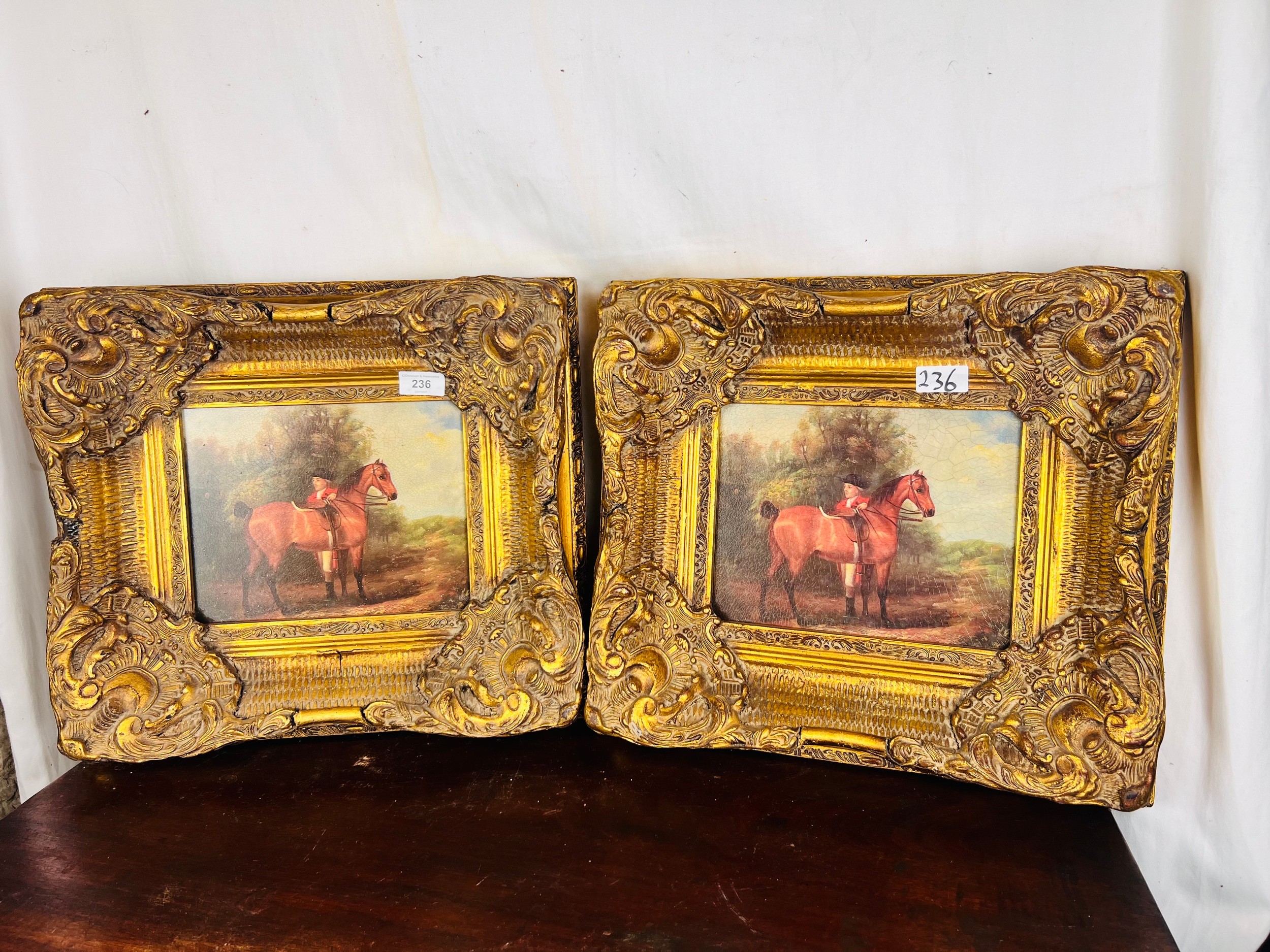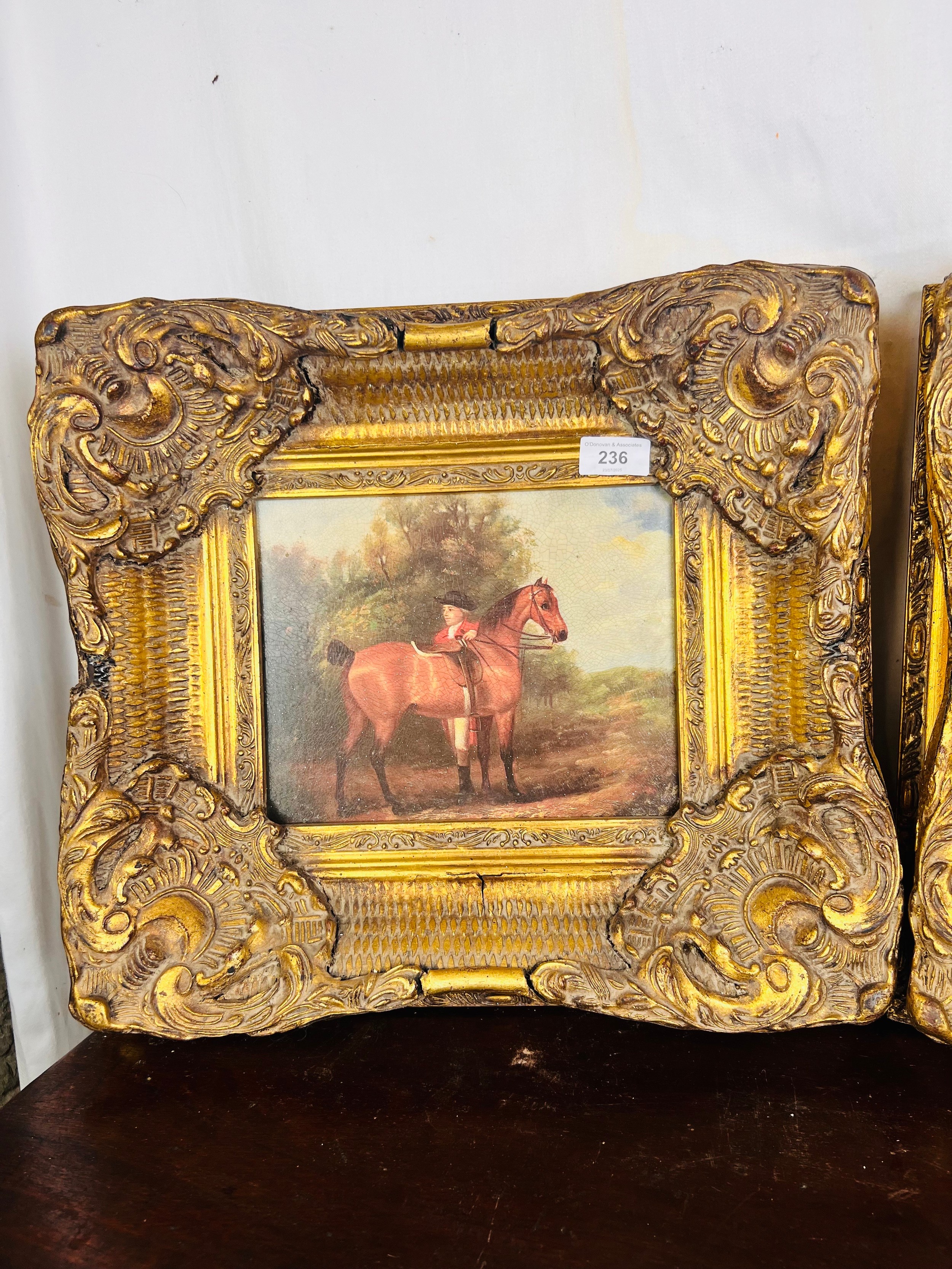 2 prints of an equestrian scene in a gilt frame 18'' x16''