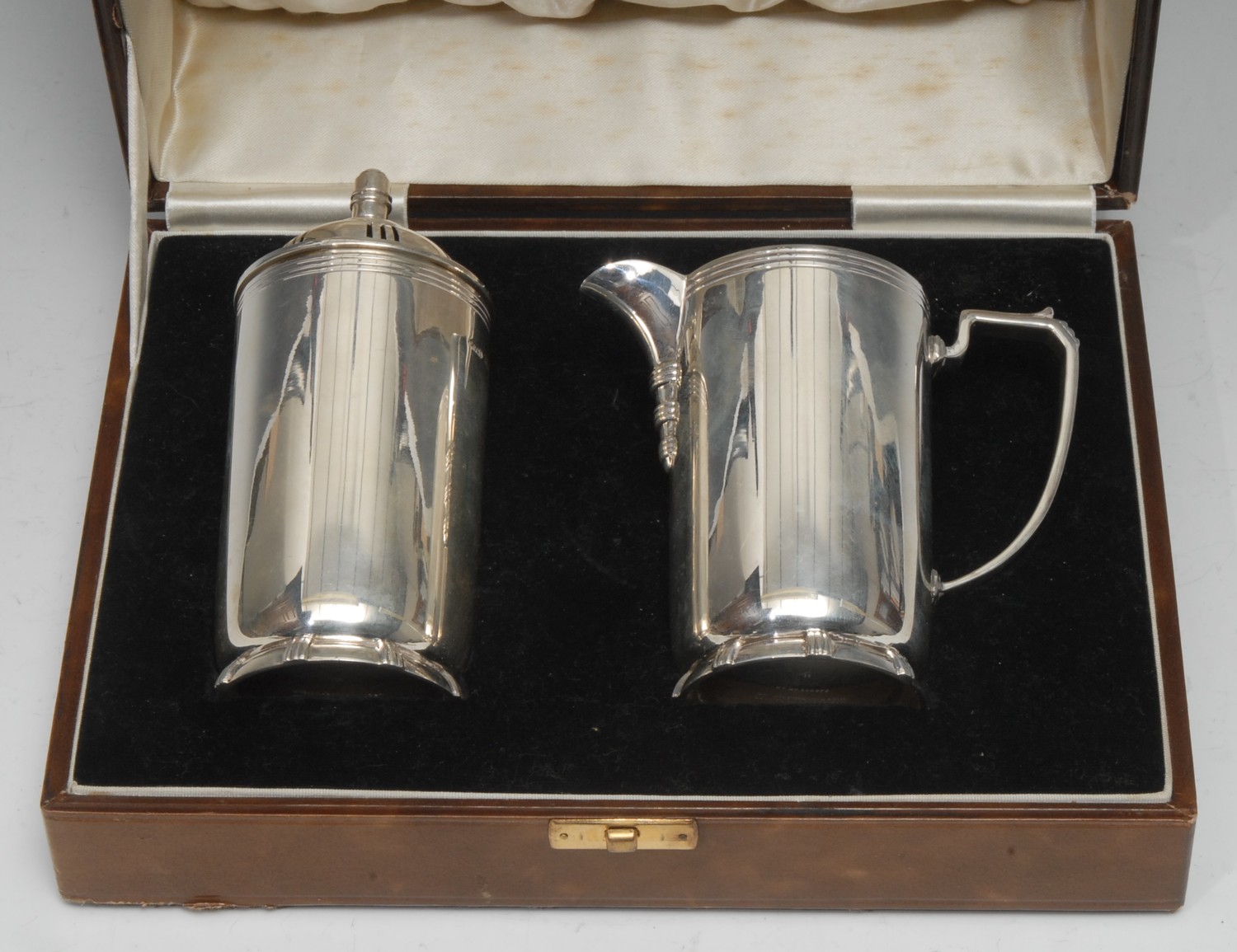 An Art Deco sugar and cream service, comprising a cylindrica...