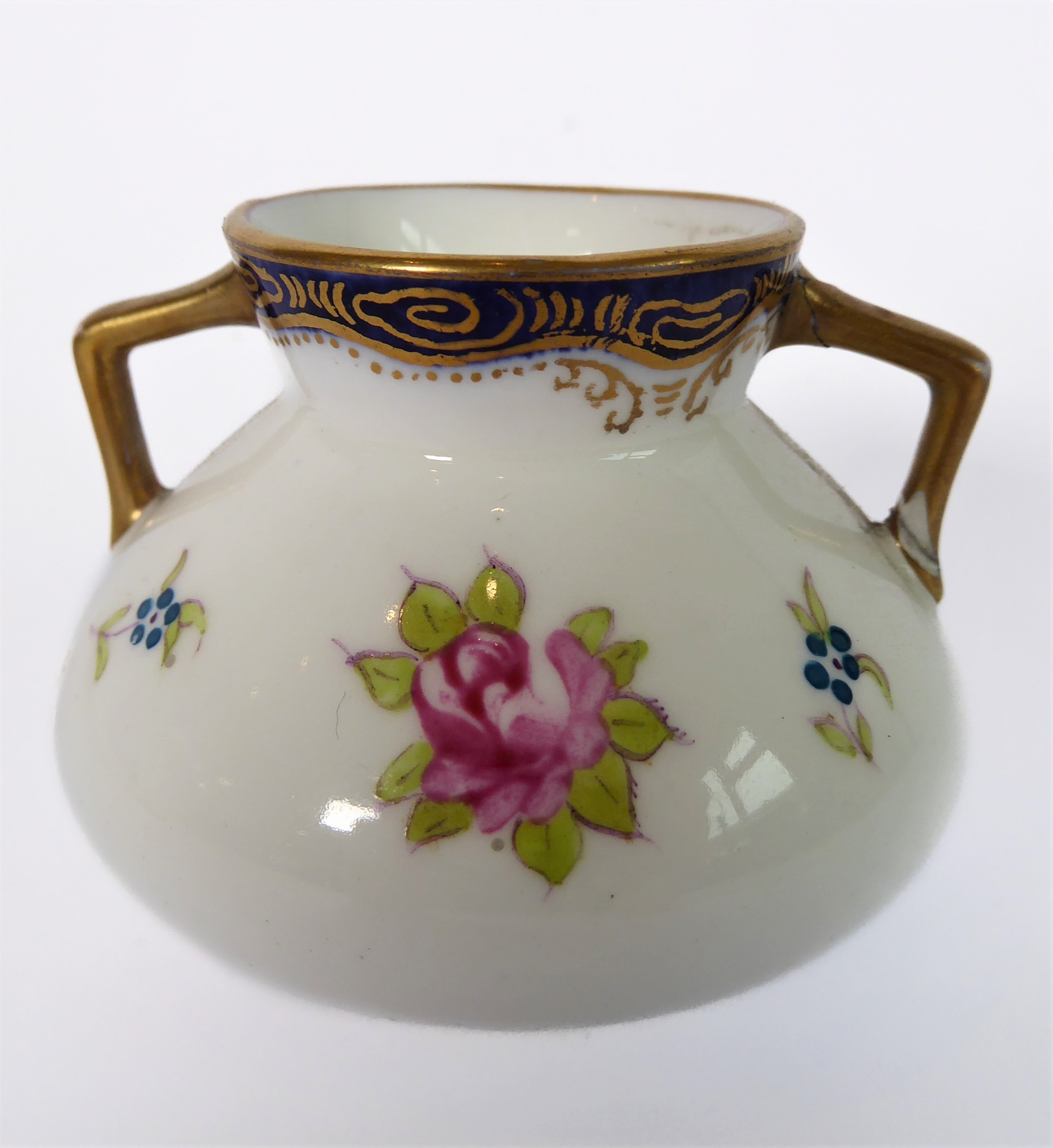 2. a small early 20th century two-handled Wedgwood porcelain vase (damage to one handle) decorated with floral springs of roses.
