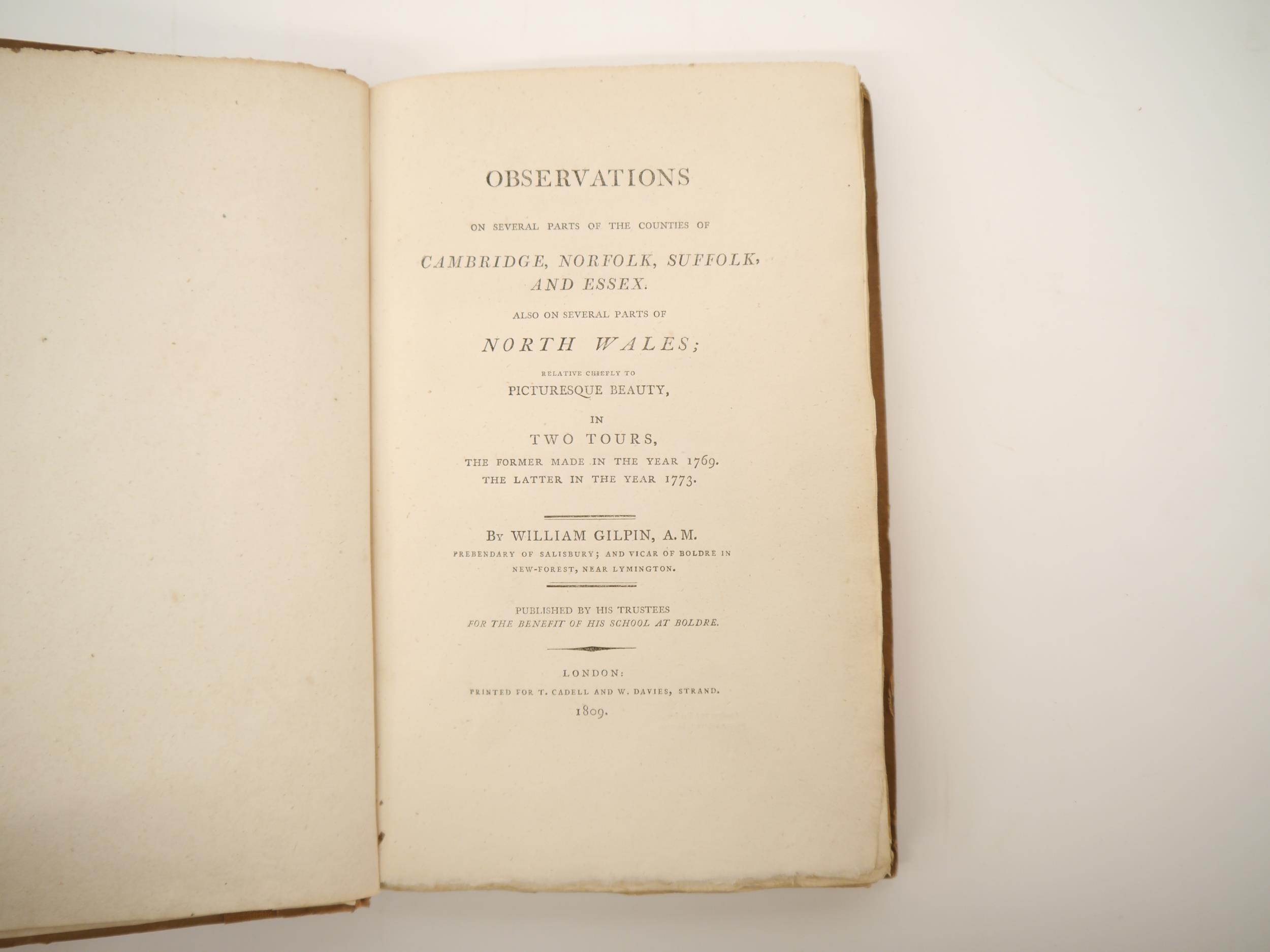 William Gilpin: 'Observations on Several Parts of the Counties of Cambridge, Norfolk, Suffolk, and Essex. Also on Several Parts of North Wales; Relative Chiefly to Picturesque Beauty, in Two Tours, the Former Made in the Year 1769. The latter in the Year 1773', London, Cadell & Davies, 1809, 20 aquatint plates as called for, contemporary boards, rebacked cloth retaining original backstrip, printed paper label to spine