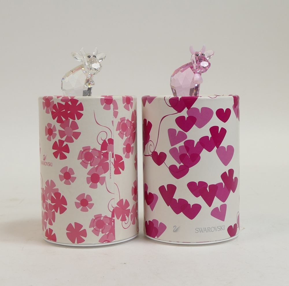 Swarovski Crystal The Lovlot Pioneers Collection to include:- Pinky Mo (888950) only available 2007 presented in rose/pink crystal together with Missy Mo (832180) retired 2011 both designed by Edith Mair presented in clear crystal with metallic eyes. H:-5cm. boxed with certificates of authenticity (2)