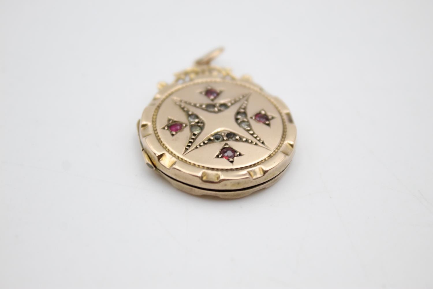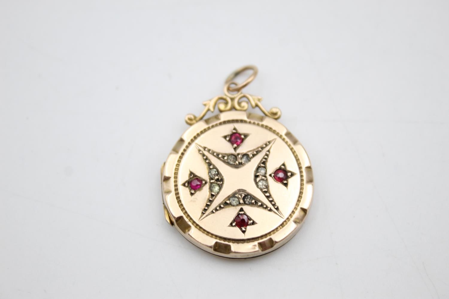 9ct gold back & front antique locket with paste detail (4.9g)