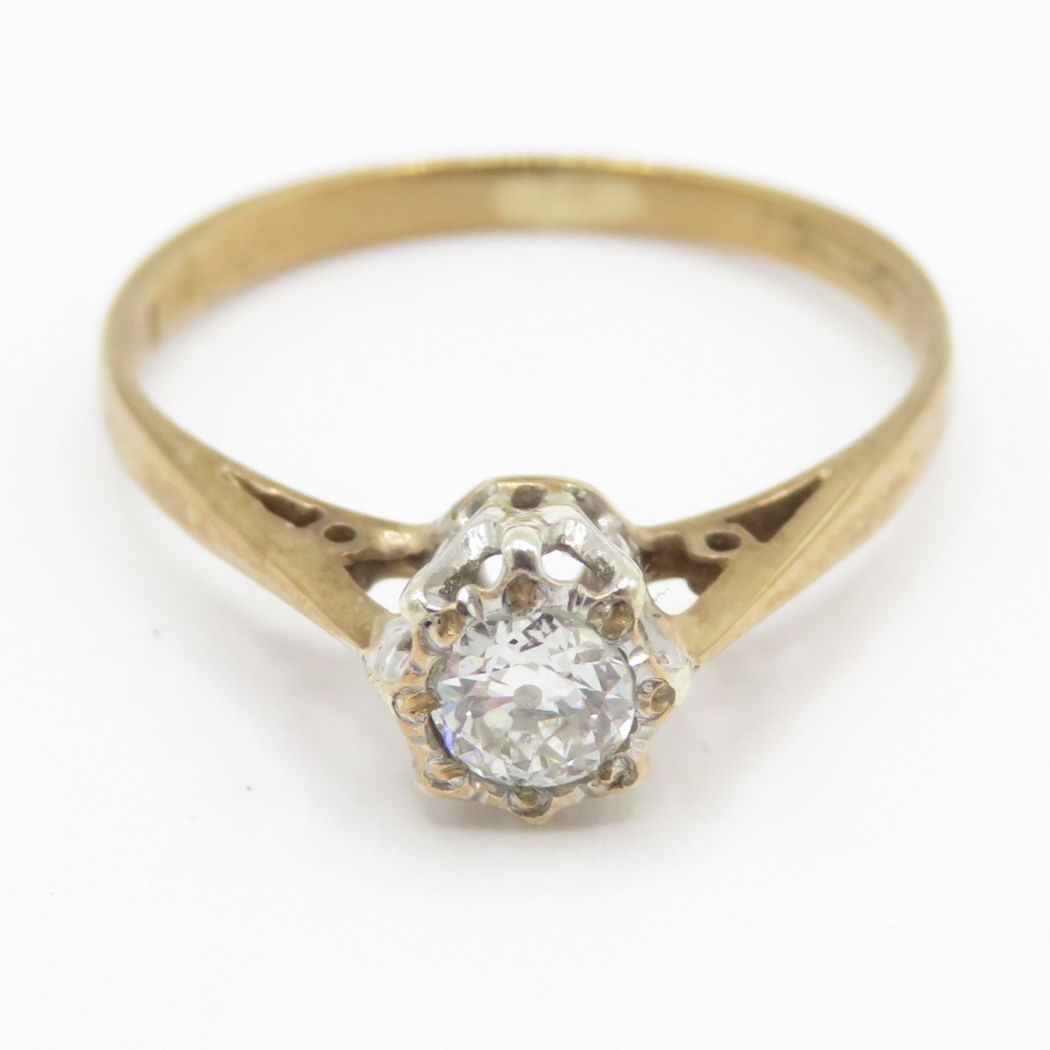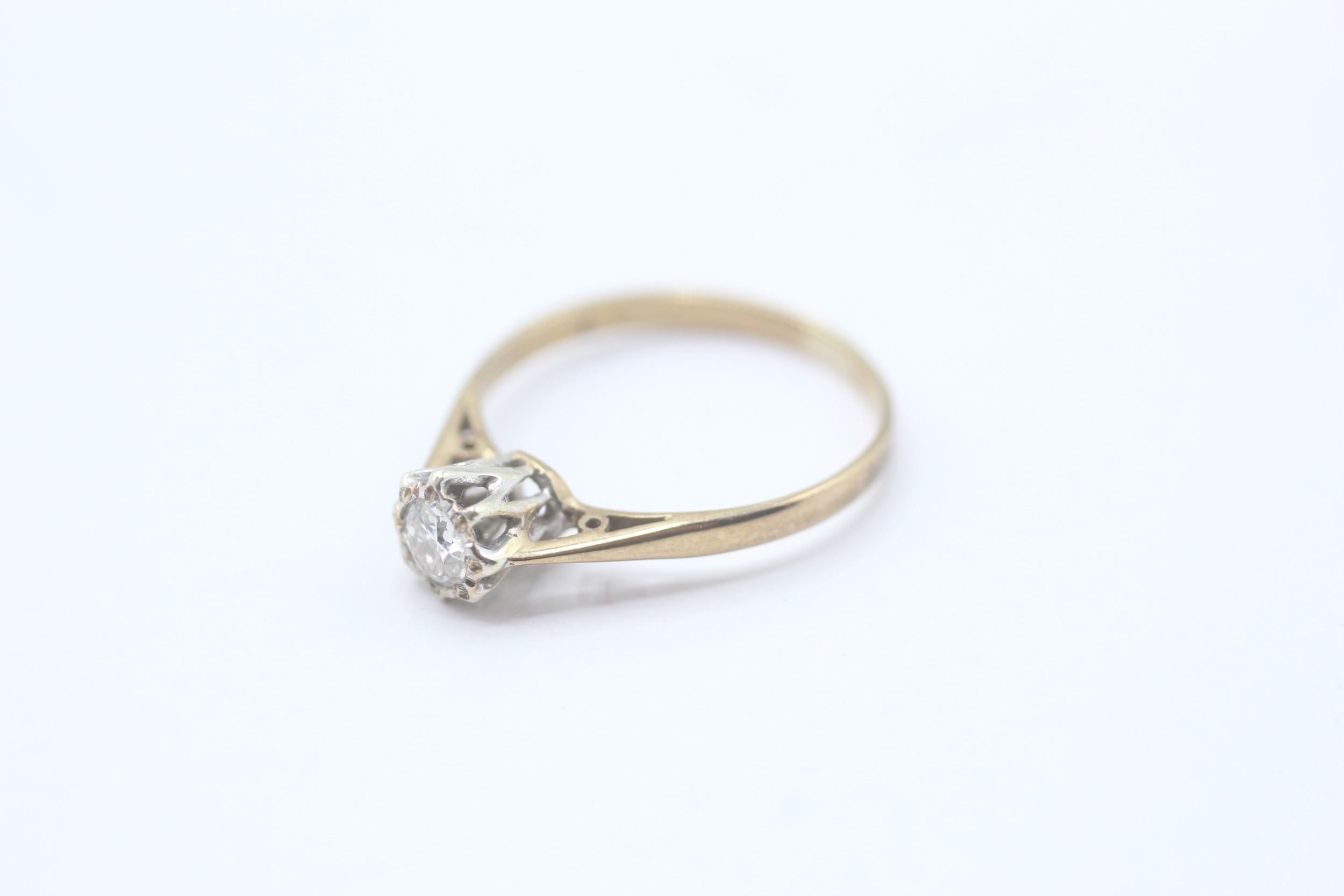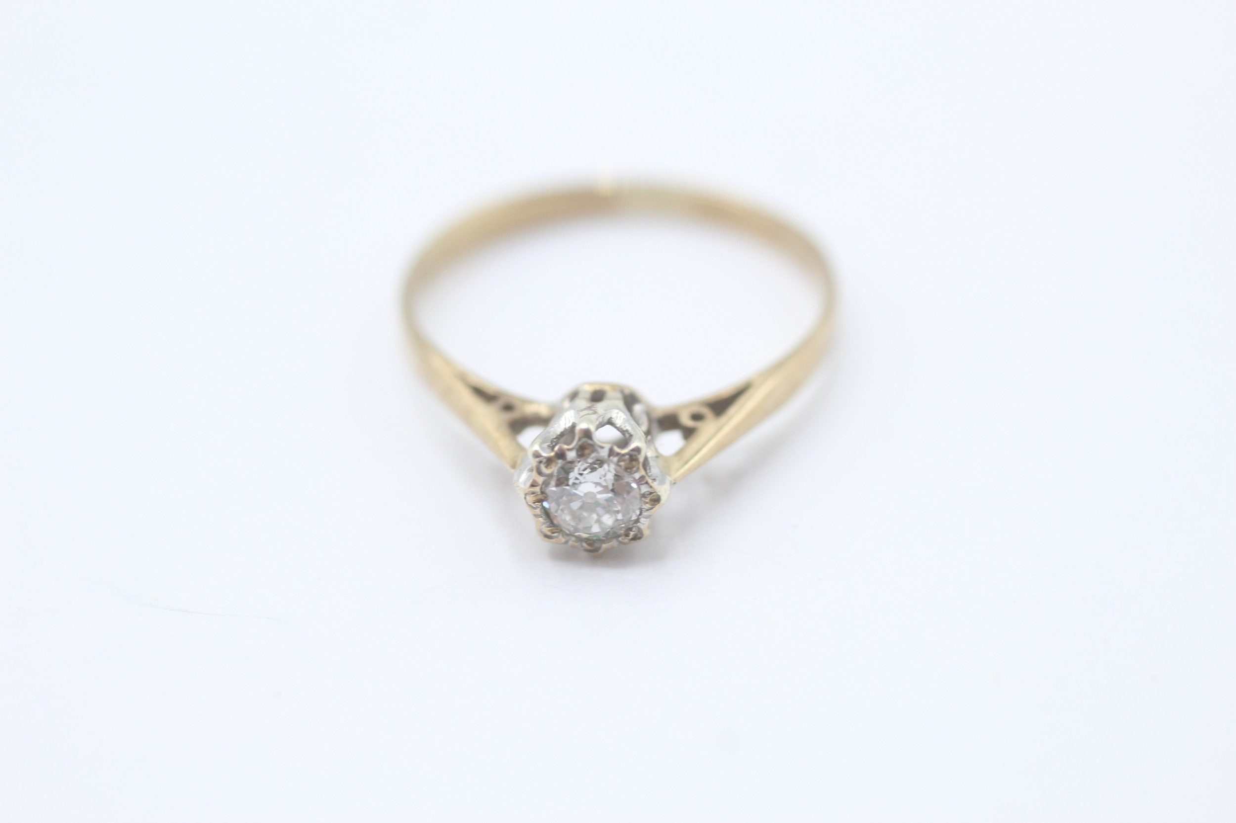 9ct gold diamond solitaire ring (1.1g) Size J 1/2