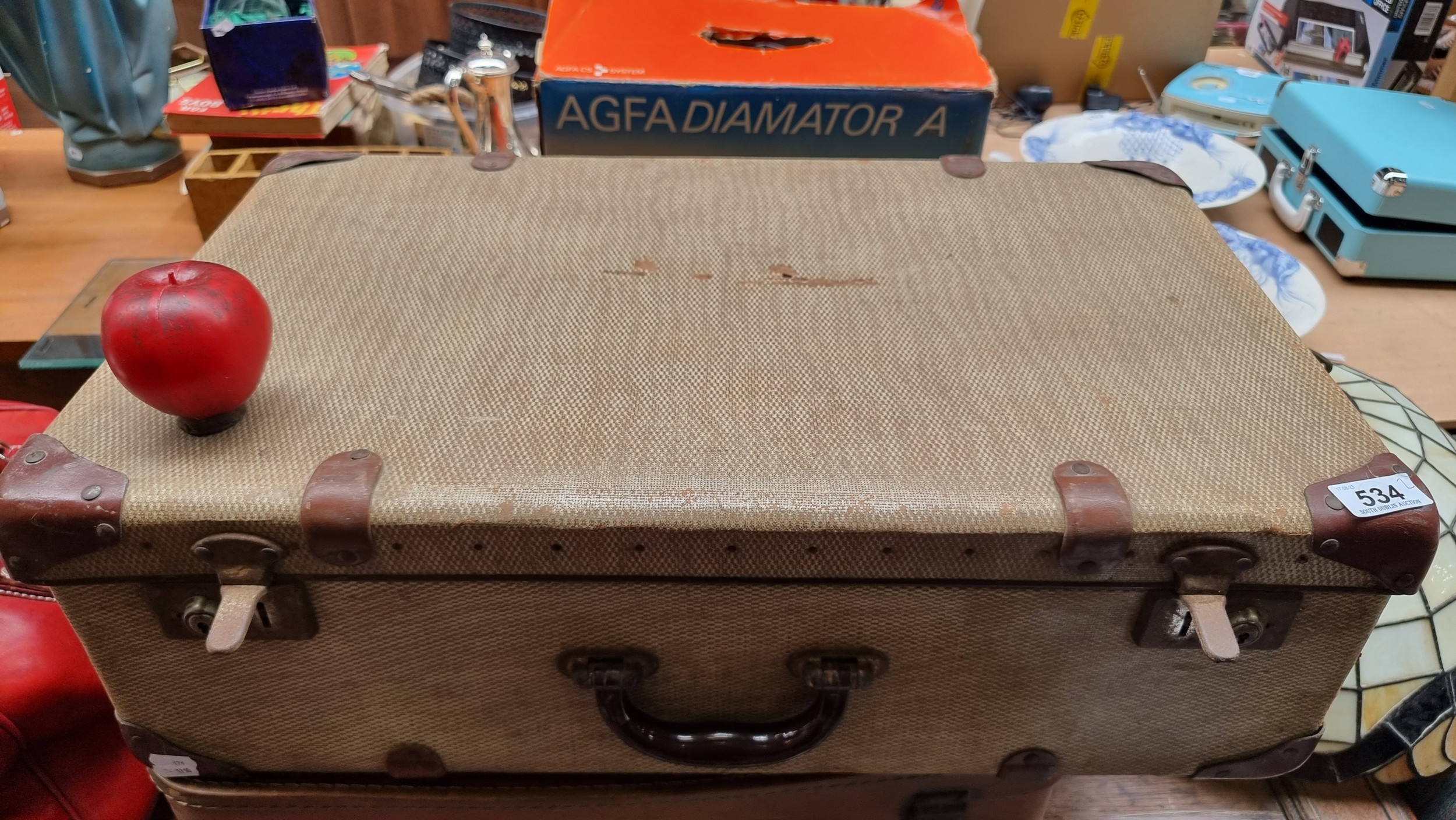 A Travel Goods Ltd, Portarlington vintage suitcase. With Cheney locking mechanism and genuine leather detailing.