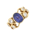 Overall fair condition Moderate general wear and surface scratches to band, a section of heavy scratches to back of band Initials engraved to inner band Tanzanite measures approximately 8.3 by 6 by 5.3mm Tanzanite is a medium purply/blue hue, fairly well saturated, with good clarity, in a poor condition, with heavy abrasion Clients are advised to view and inspect items before bidding and they must satisfy themselves as to the condition of every lot For enquiries about this lot please contact David Pregun at david@kinghamsauctioneers.com