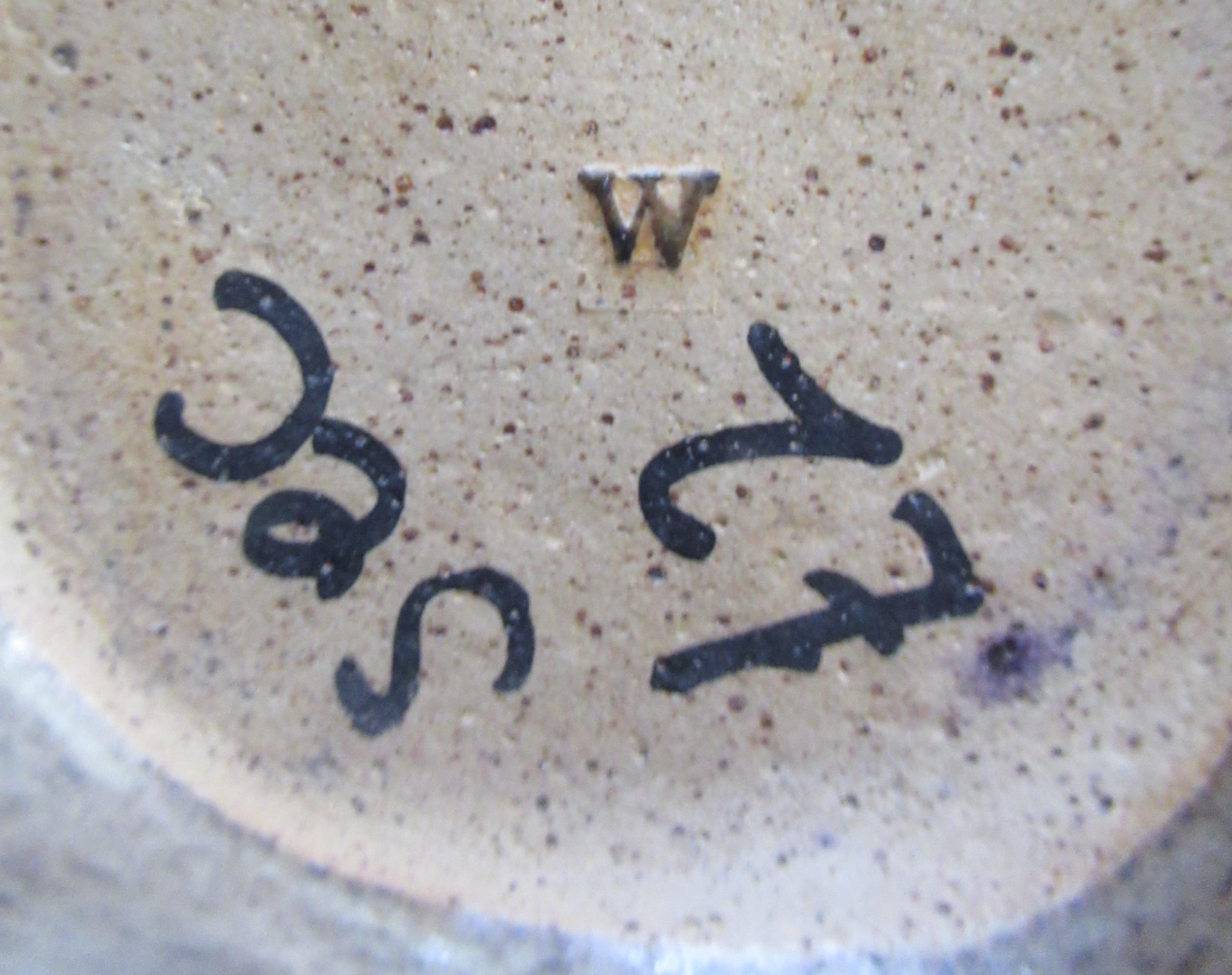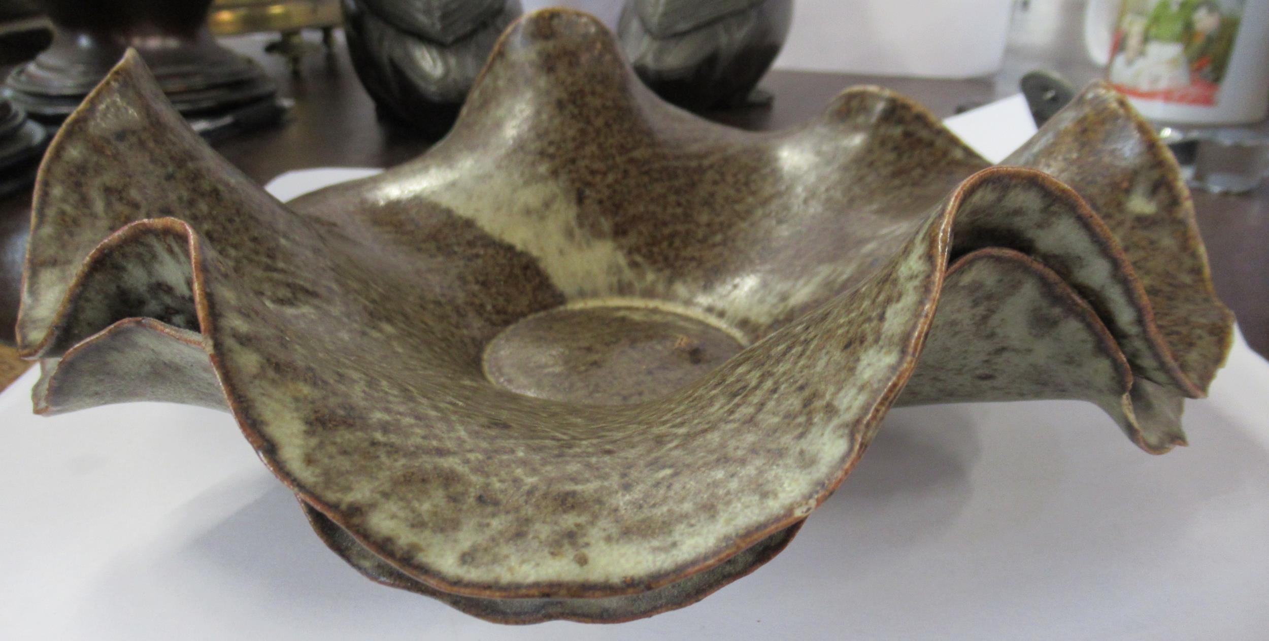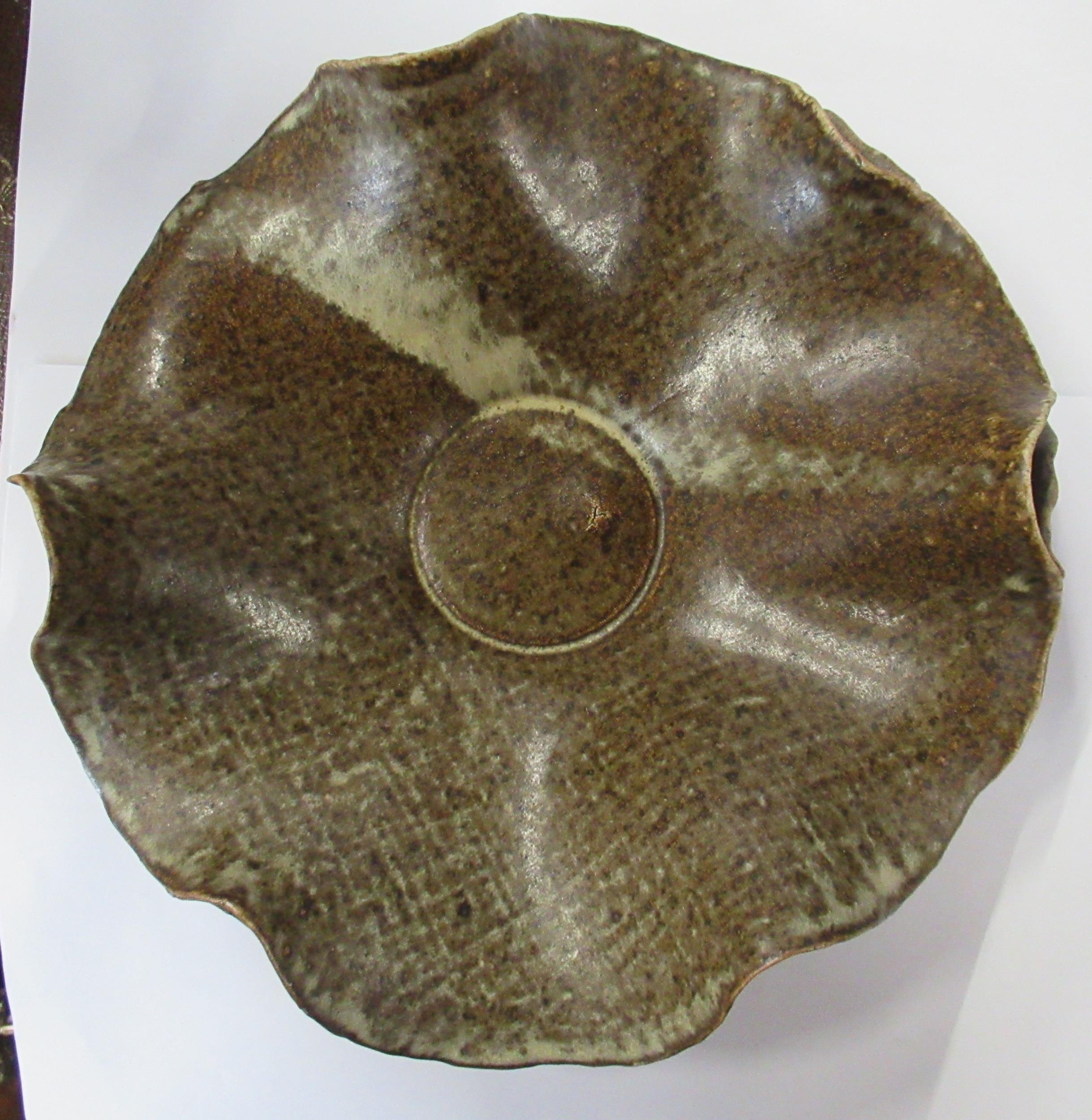 A Studio pottery dish, with frilled edge, impressed W to base, diameter 9.25ins