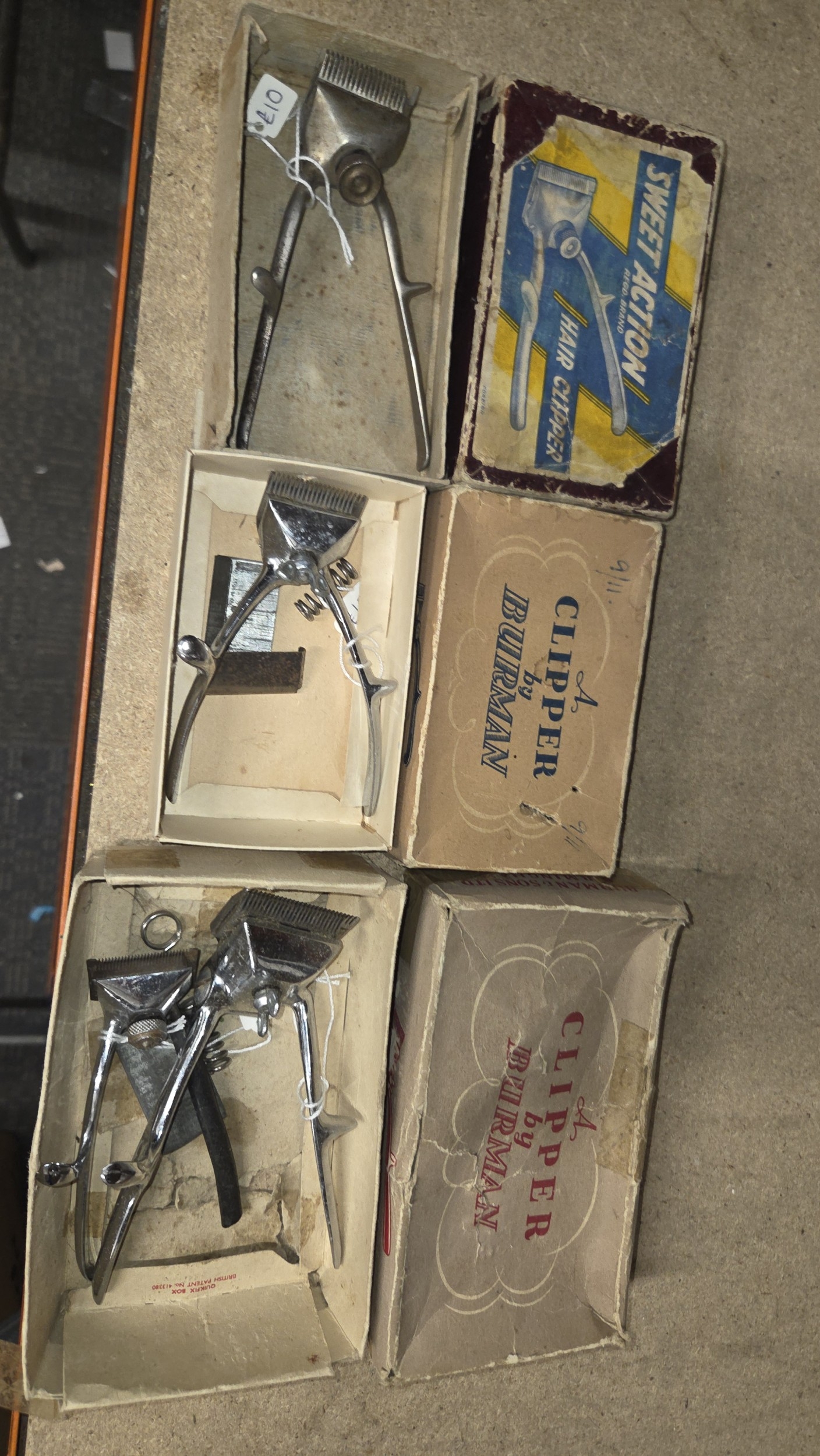 Selection of Vintage Burman and Sweet Action Manual Hair Clippers