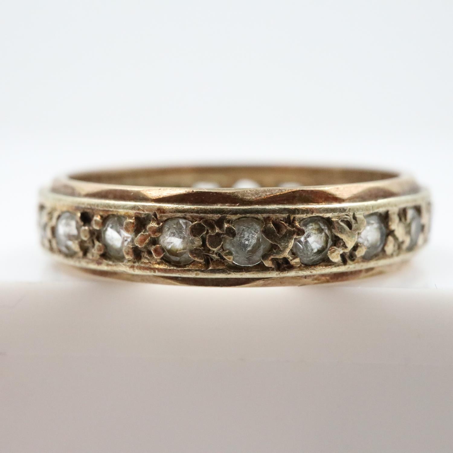 9ct gold white topaz set eternity ring, size P/Q, 3.1g. UK P&P Group 0 (£7+VAT for the first lot and £1+VAT for subsequent lots)