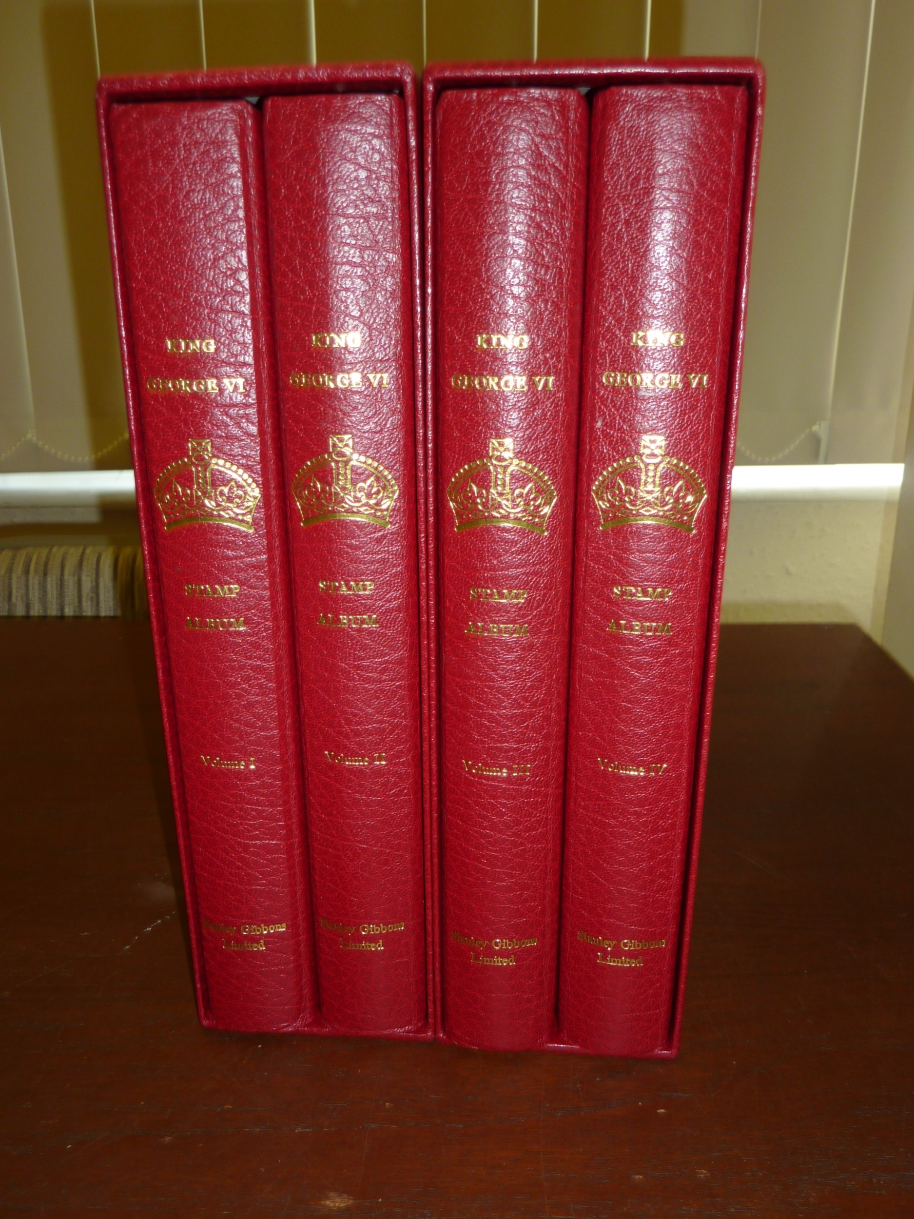 British Commonwealth - KGVI set of four Red Crown Albums in slipcases with a fine used assembly (remaindered) 100's all diff, many sets noting Bahamas to £1, India Gandhi set, many UPU sets, postage dues, others to £1 etc. Good foundation.