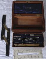 Victorian engineers chest of drawers containing various later precision tools, leather handle missing (H31 x L42 x W21cm)