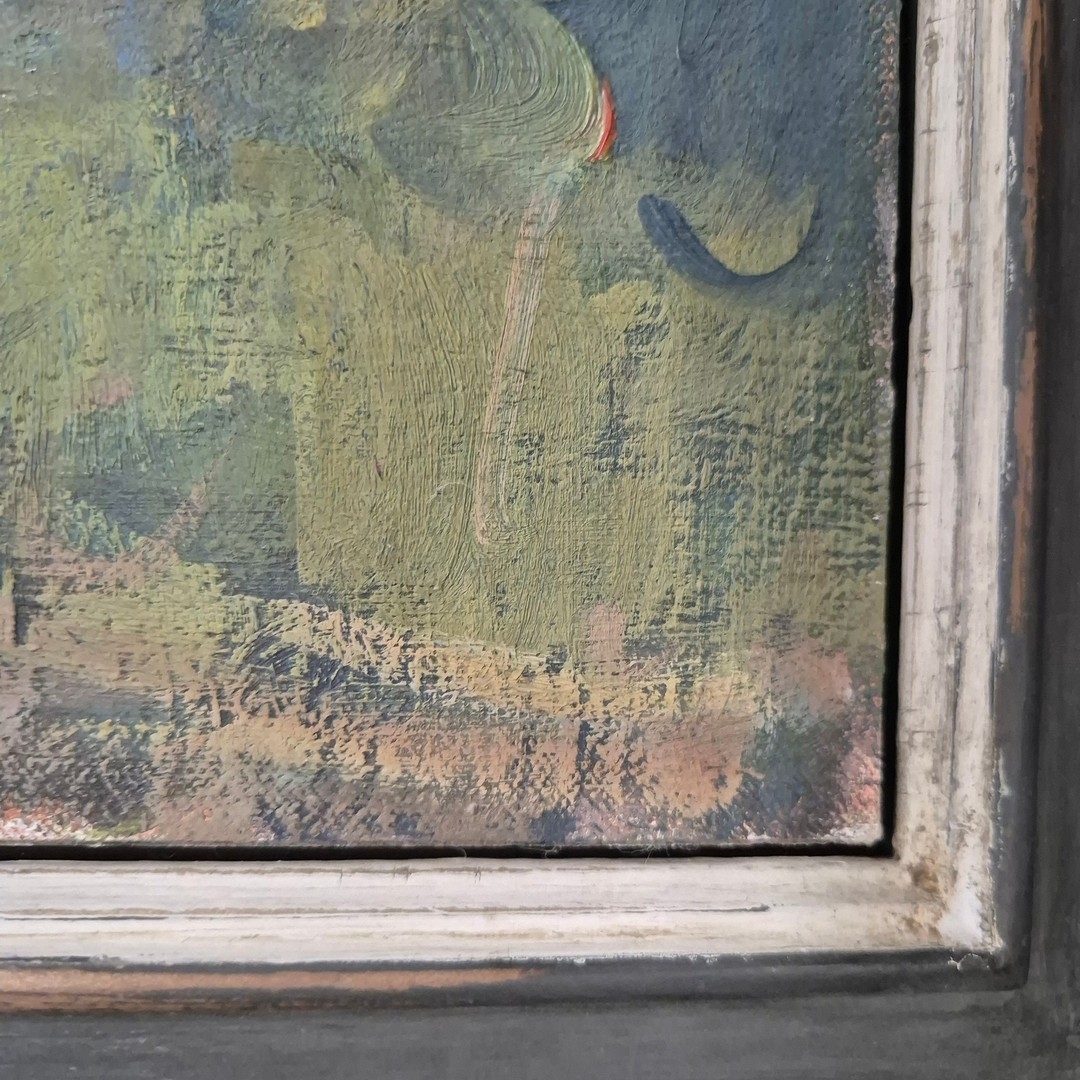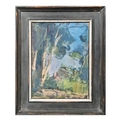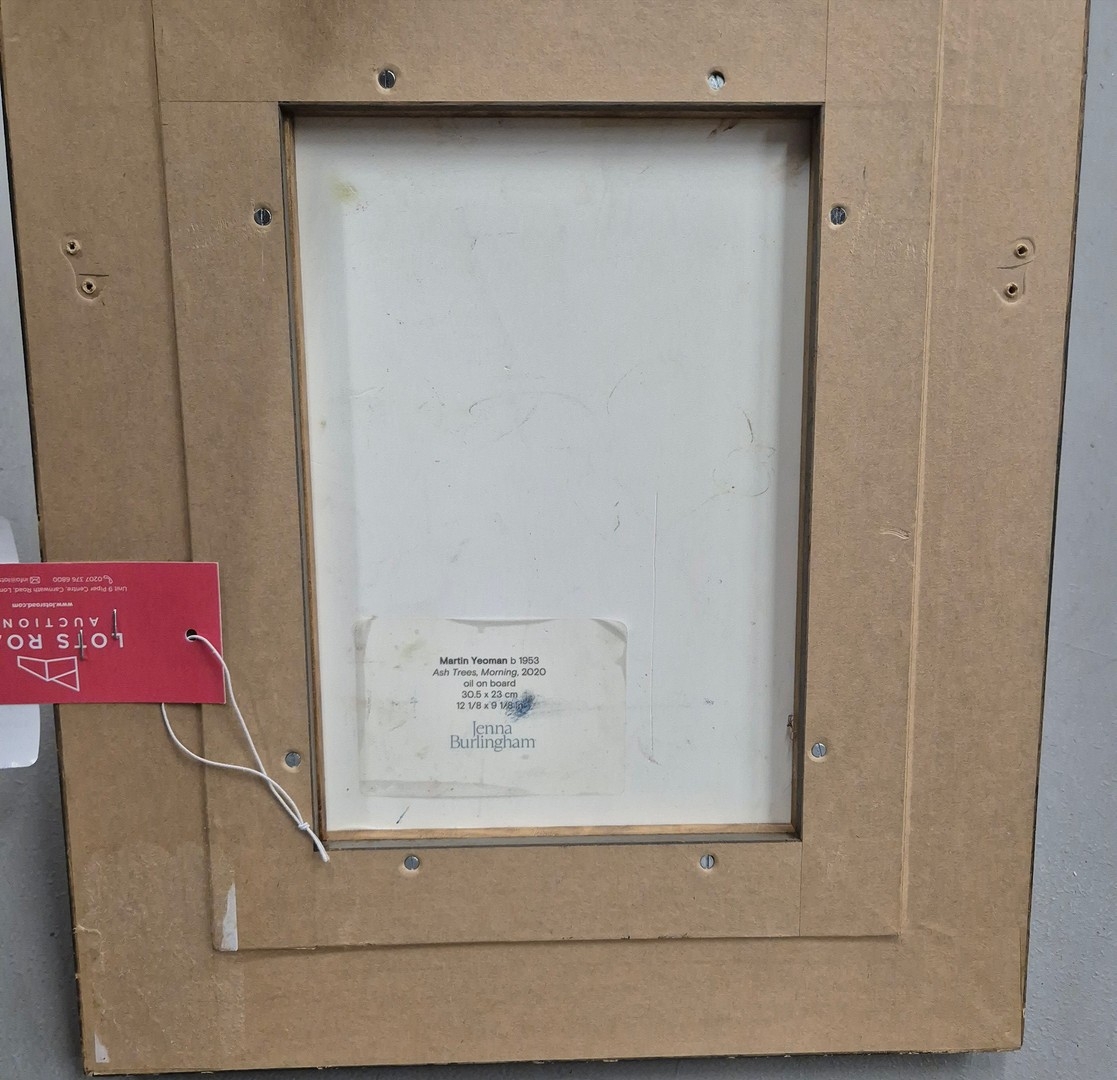 MARTIN YEOMAN (B. 1953). ASH TREES, MORNING, 2020. (d) oil on board, Jenna Burlingham label verso, 43cm x 35cm, framed. (Subject to ARR - see Buyers Conditions).