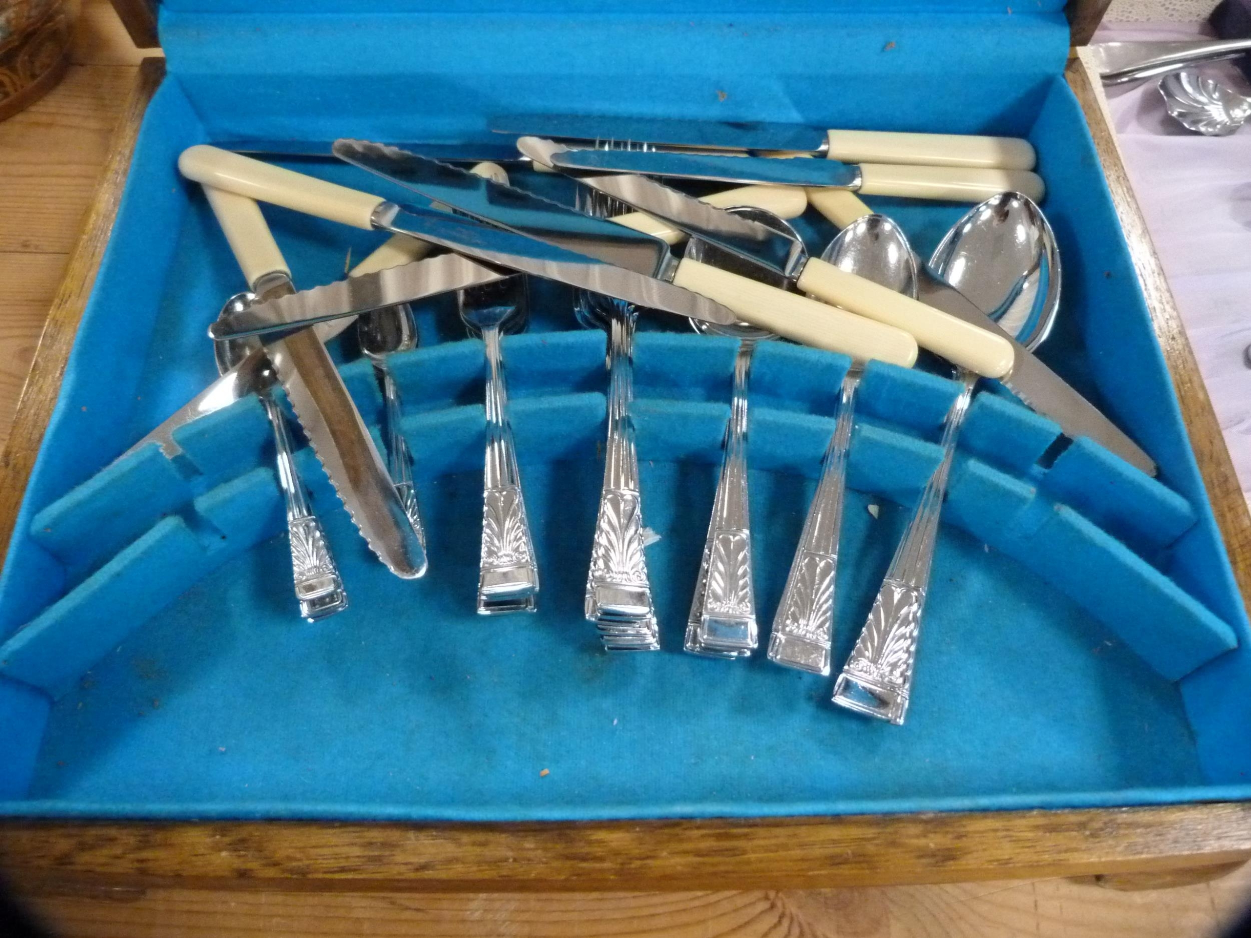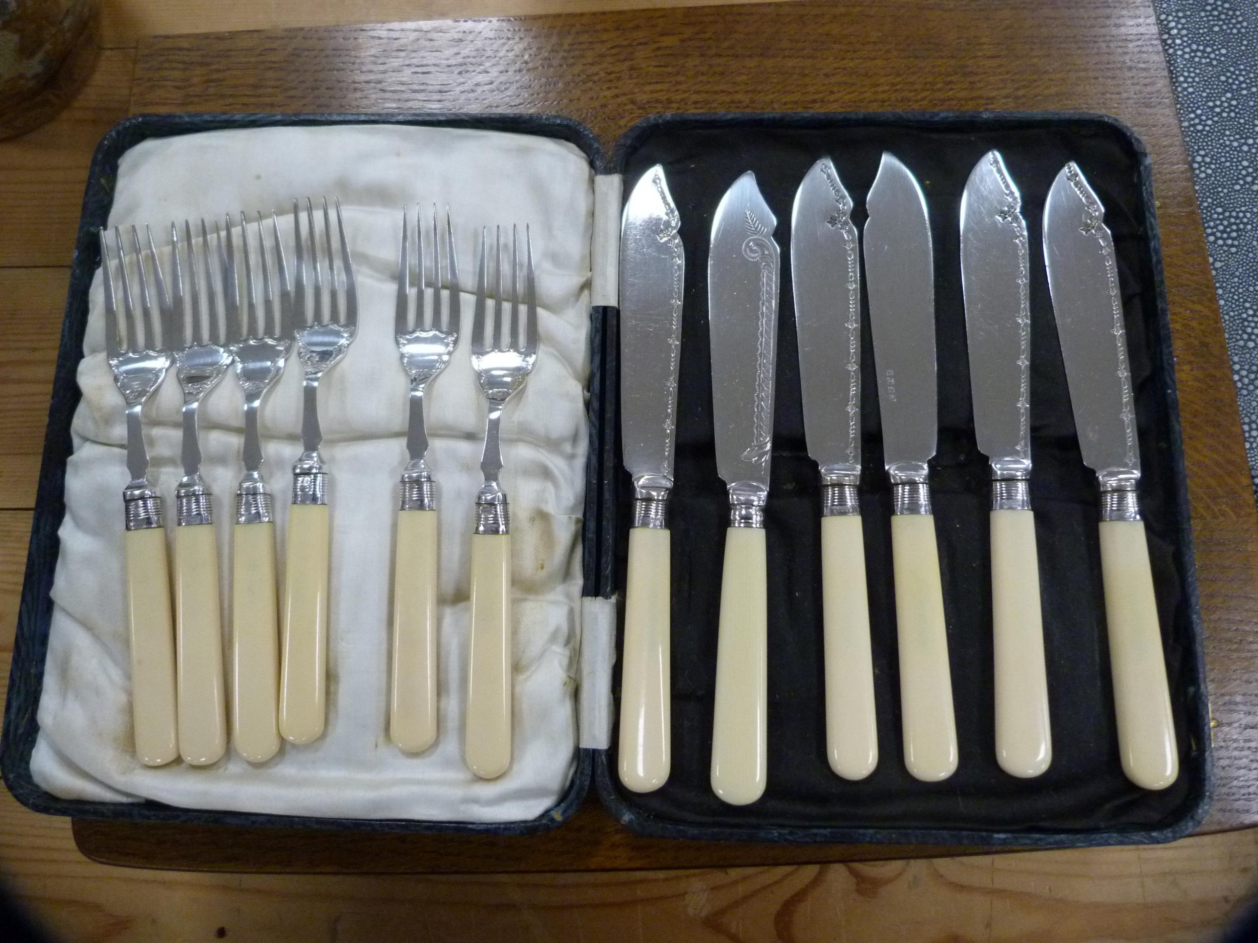 Two cased part canteens of cutlery and a cased set of six fish knives and forks.