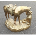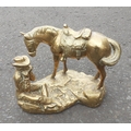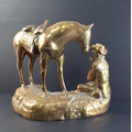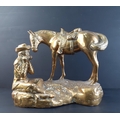 SUPER HEAVY! - A wonderful CAST BRASS study of a cowboy playing a harmonica with his saddled horse nearby. Stands 27cm tall approx and in good condition. - weight approx 12-13lbs approx